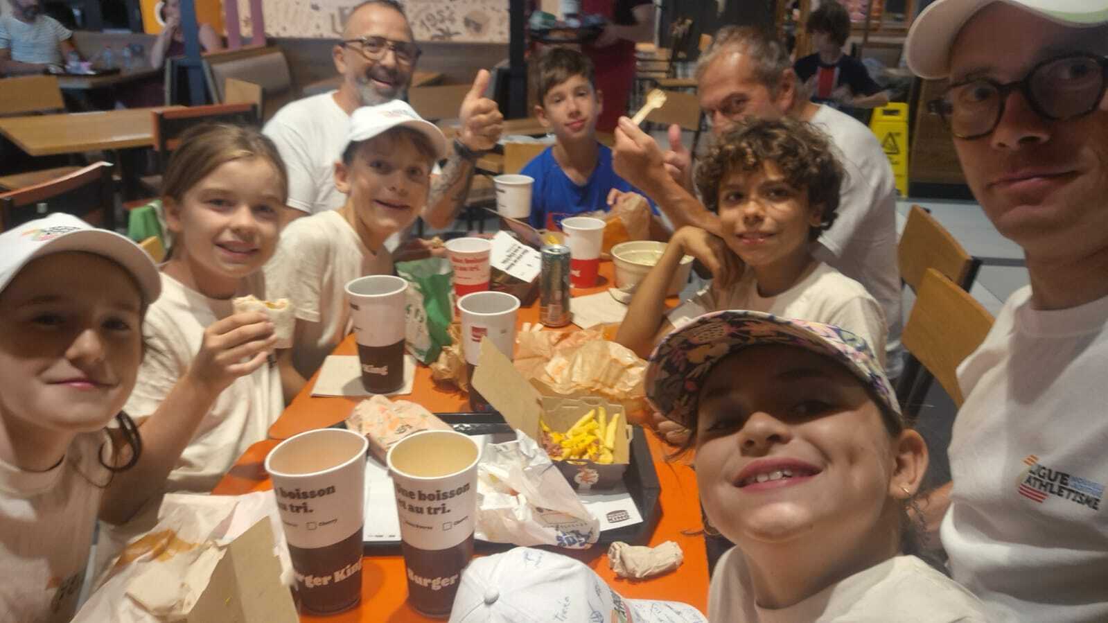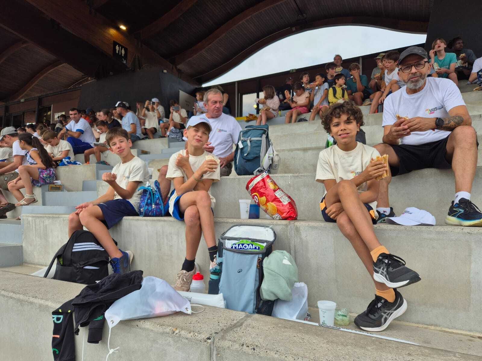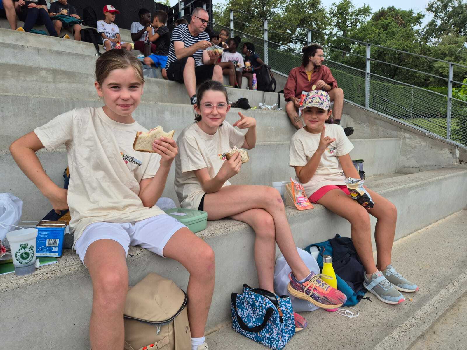 Le déjeuner à eu lieu dans les tribunes du stade officiel avant le début de la compétition durant laquelle nos jeunes athlètes ont pu admirer de superbes performances.