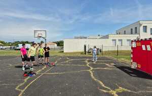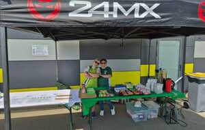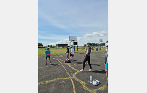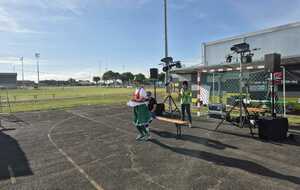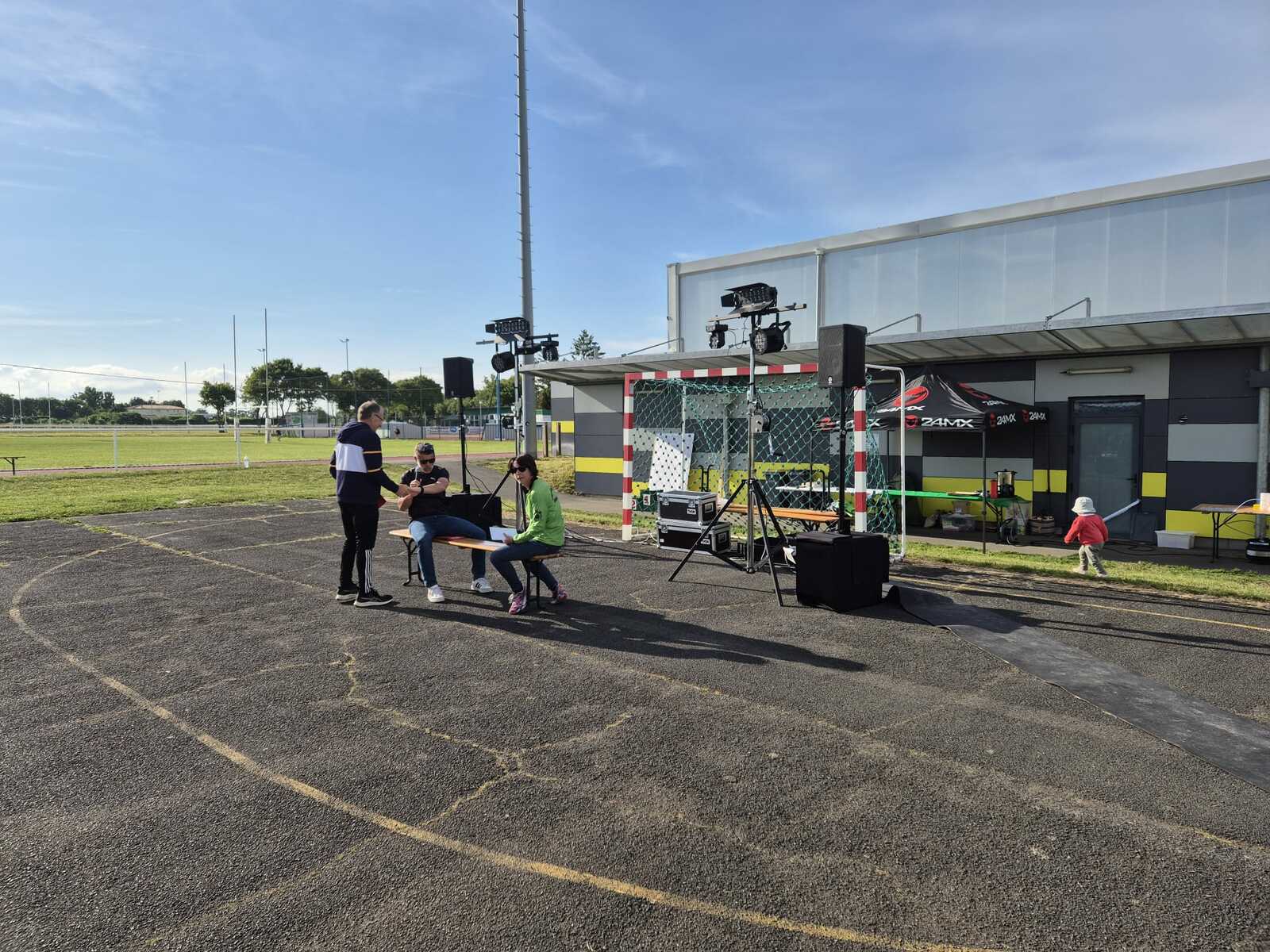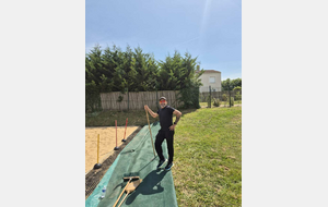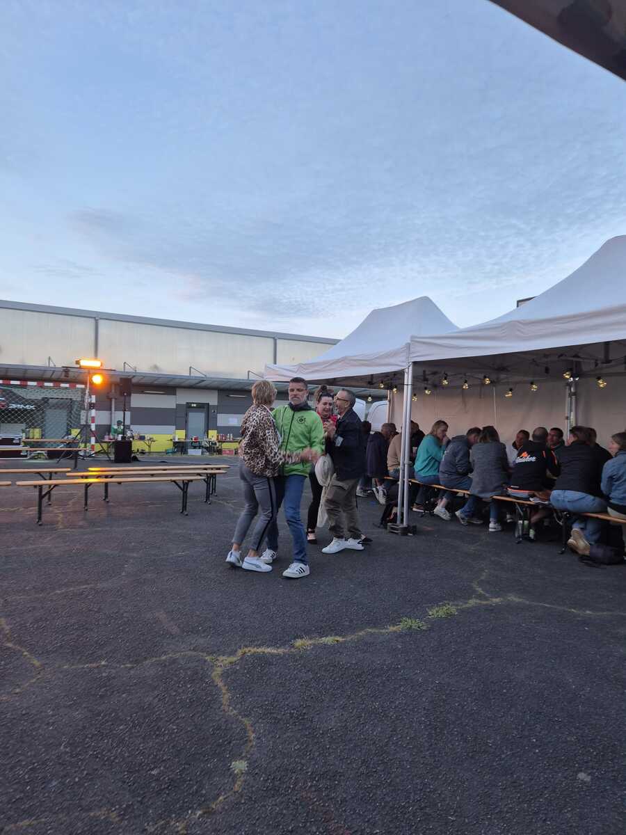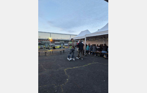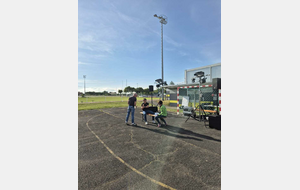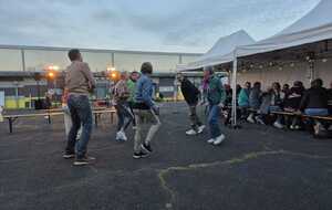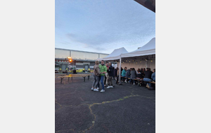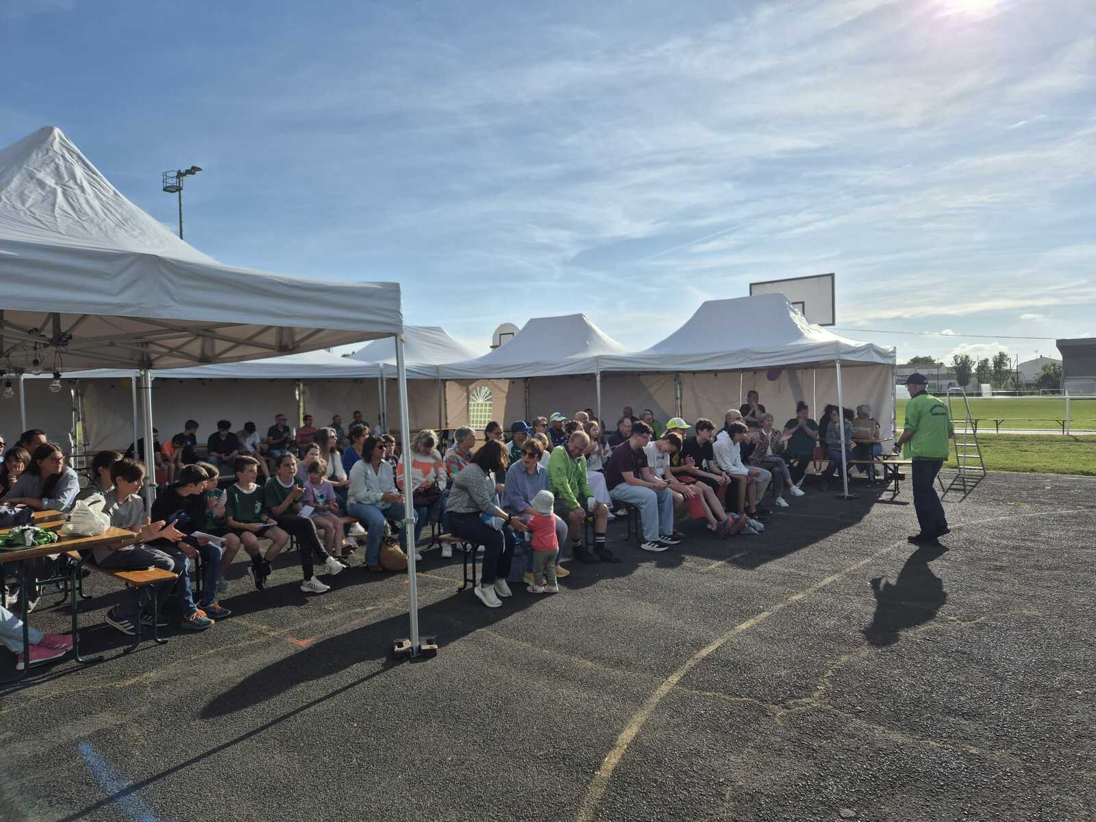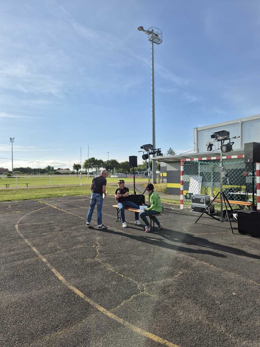Dès 9h00 et jusqu’à 13h30, nous avons improvisé une salle des fêtes en extérieur sur le plateau basket du stade pour la soirée à venir.