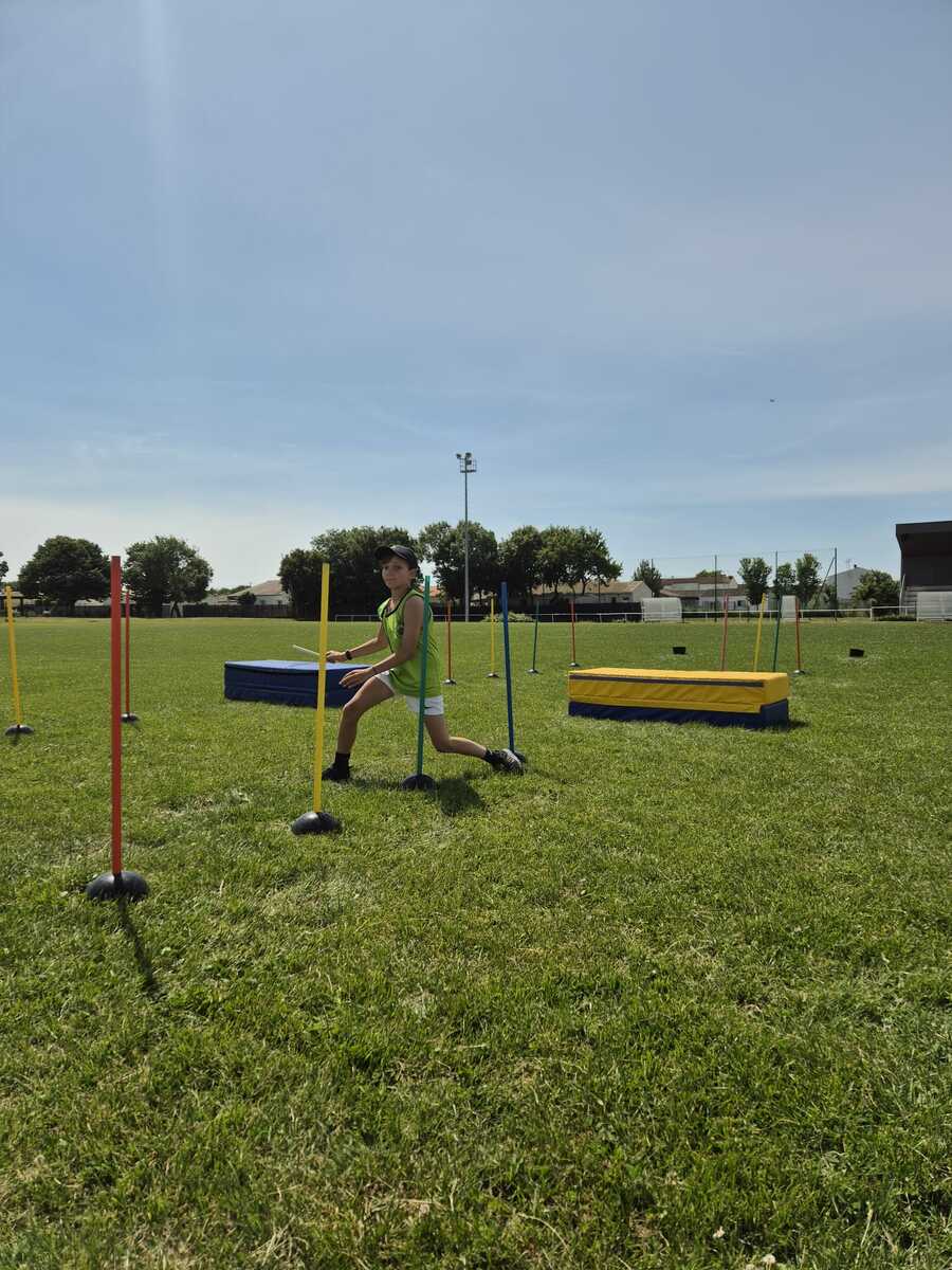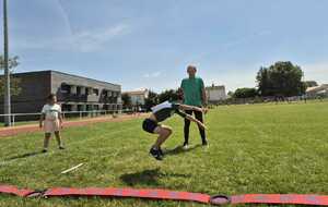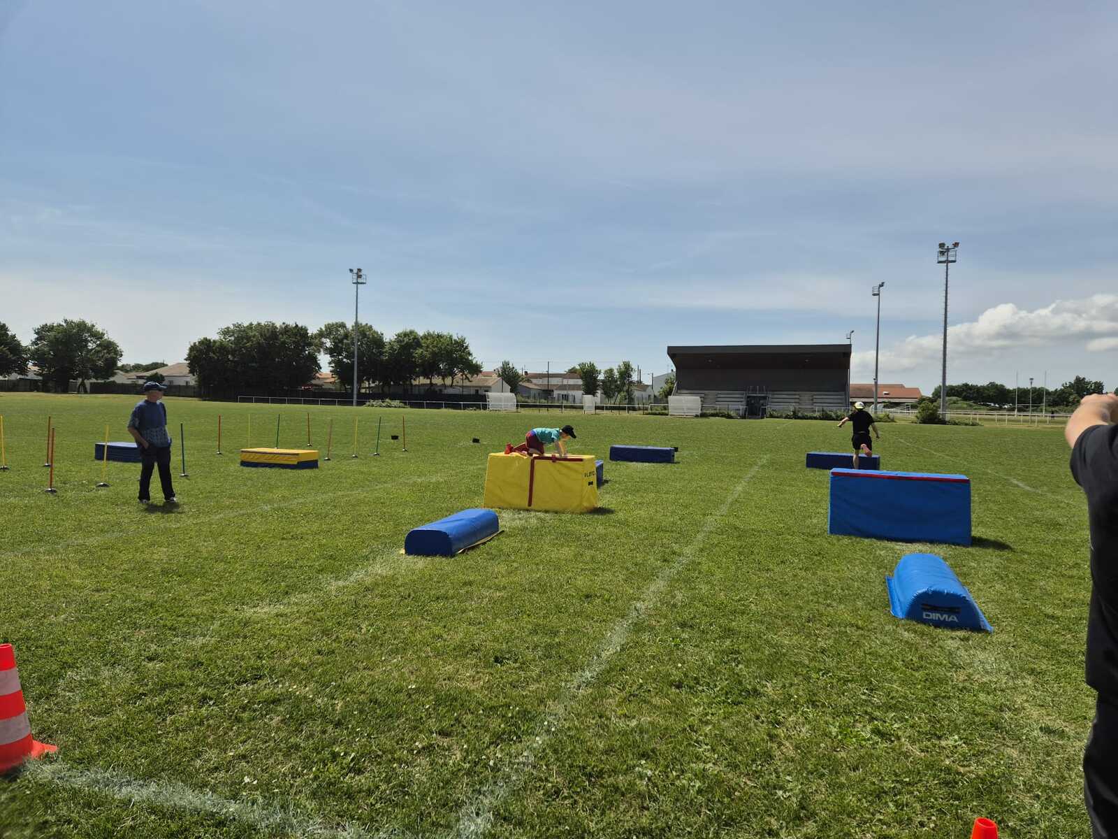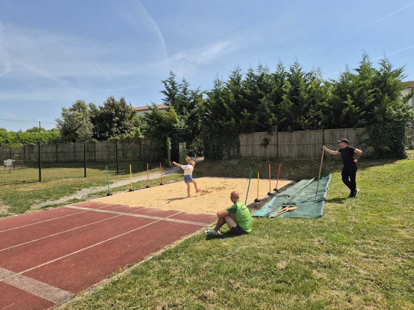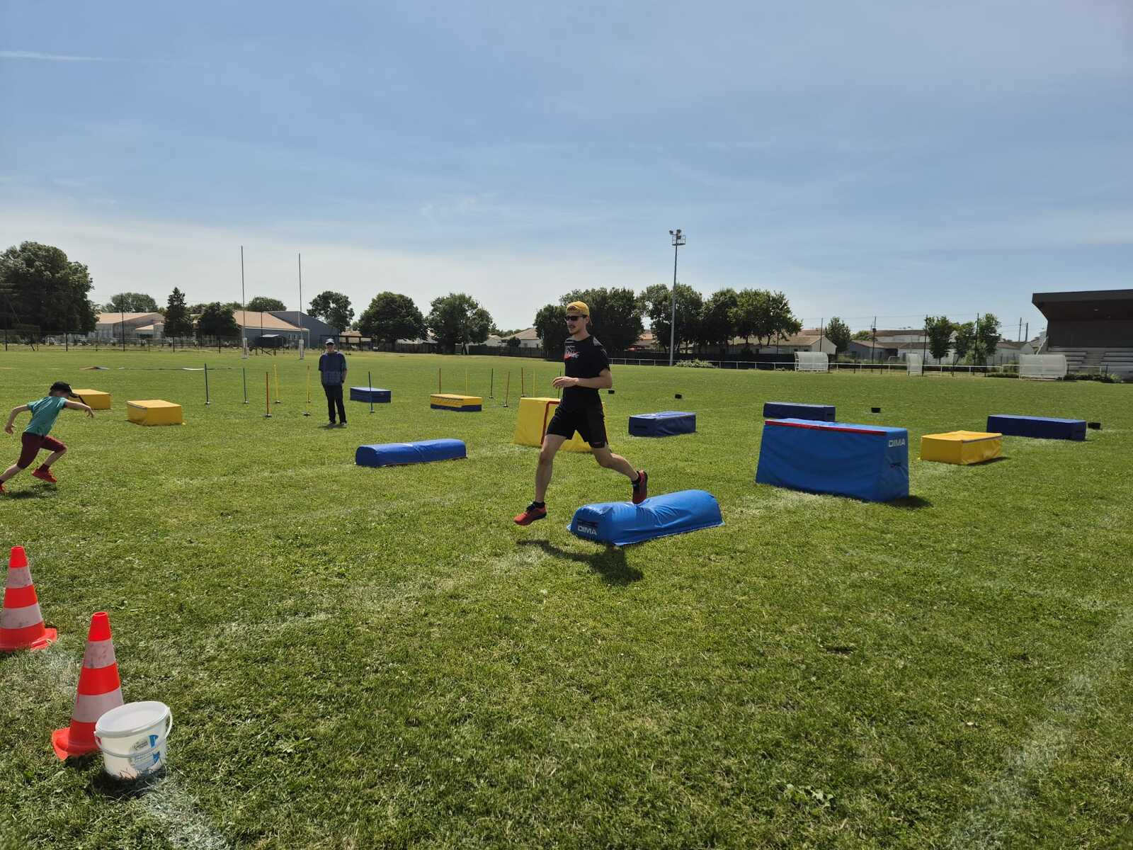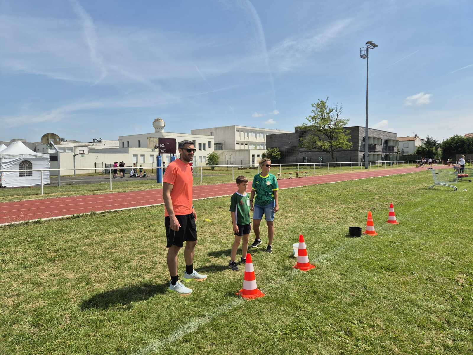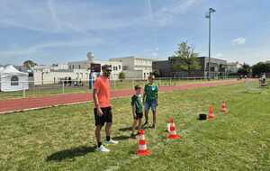 17 équipes composées de jeunes athlètes de notre club, accompagnés de leur famille (parents et fratries) ou encore quelques équipes constituées de copains d’entrainement. Tous ont concouru sur des ateliers façonnés par Jacky Bant, assisté par nos bénévoles. Encore merci à eux pour leur générosité et leur dévouement. Les épreuves étaient ludiques et parfois même enfantines mais pas forcément à la portée de tous, même pour les plus talentueux des stades. Les sauts étaient à l’honneur ainsi que les lancers et les courses à obstacles.
