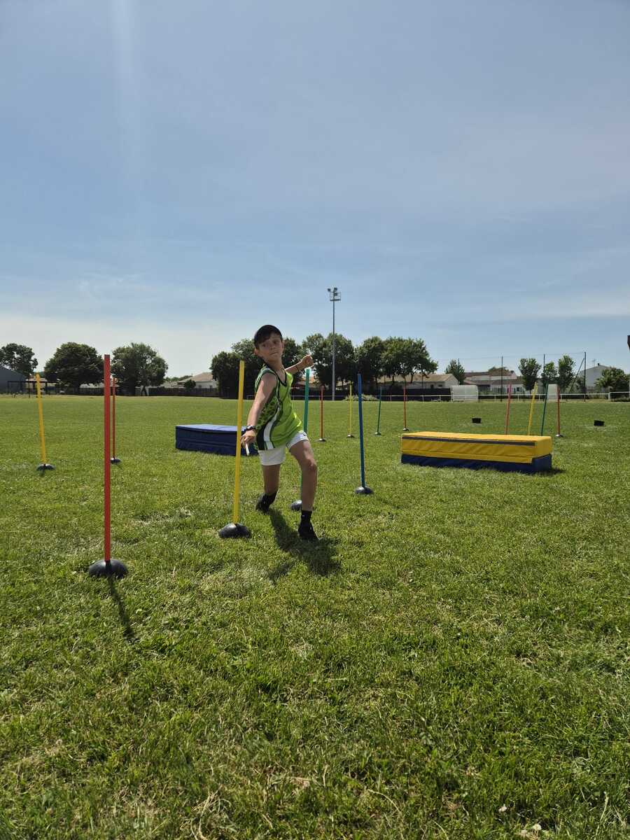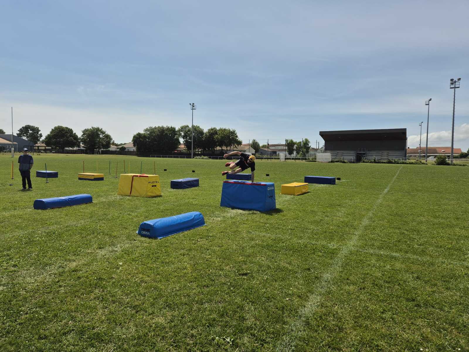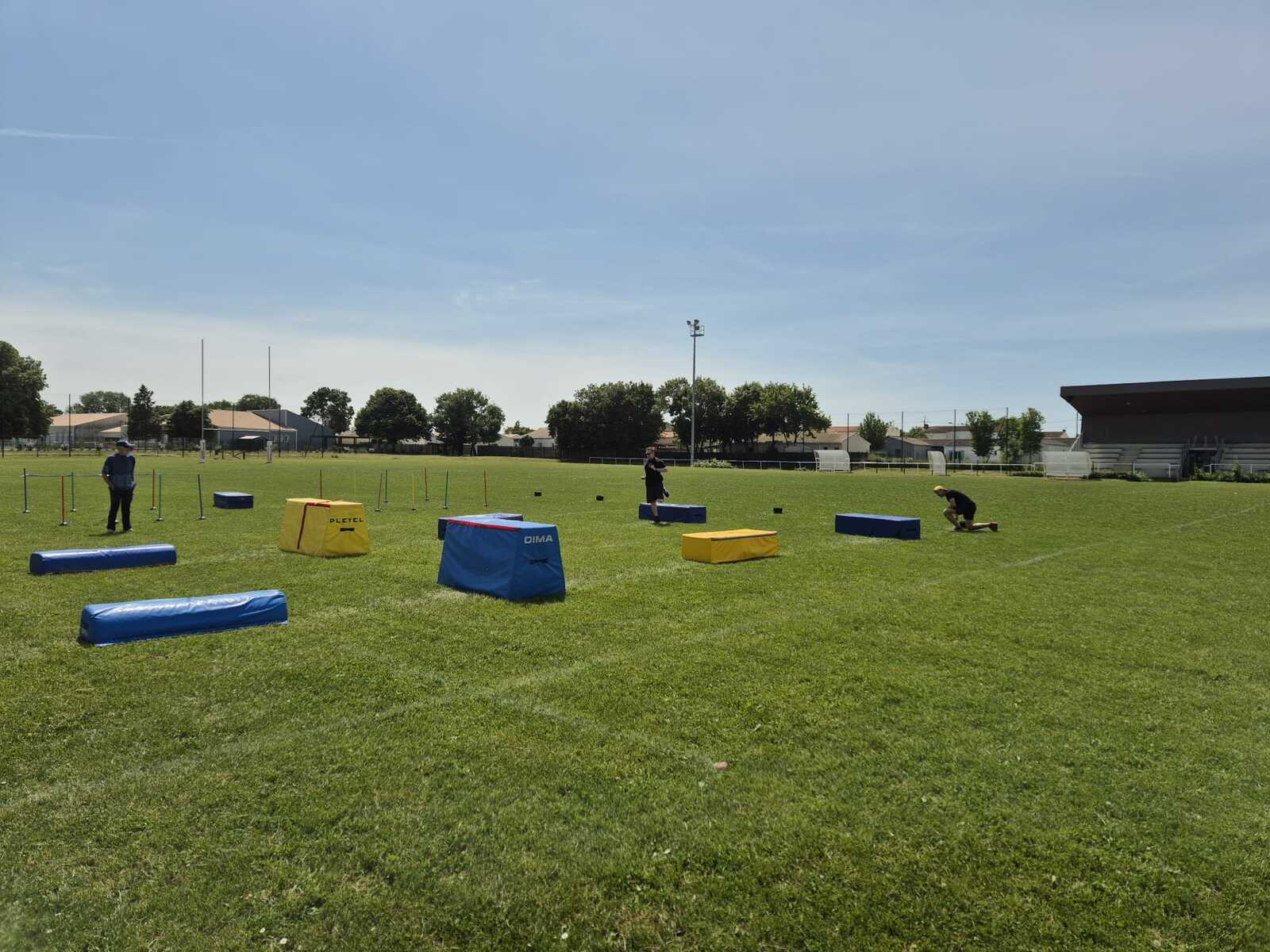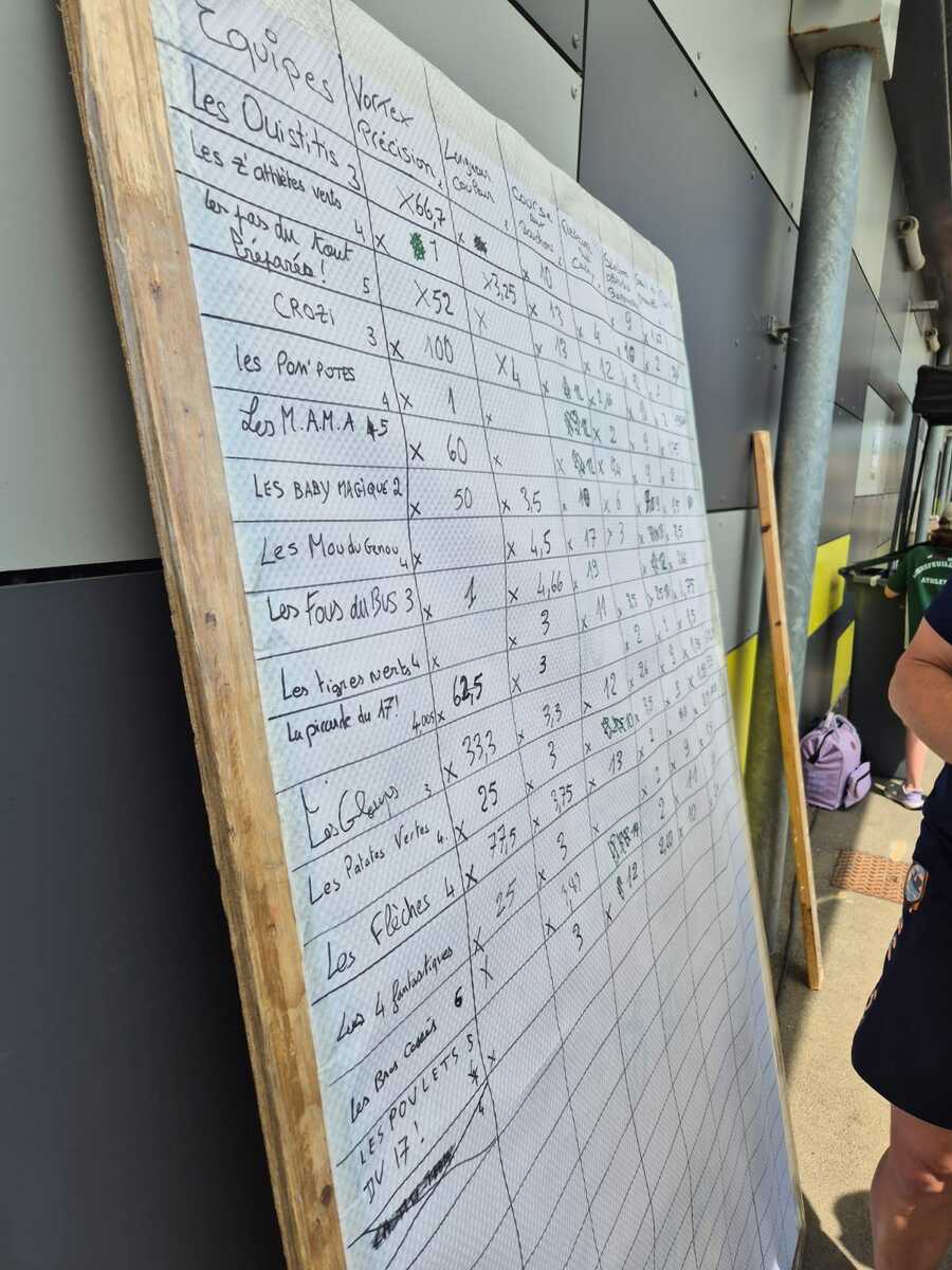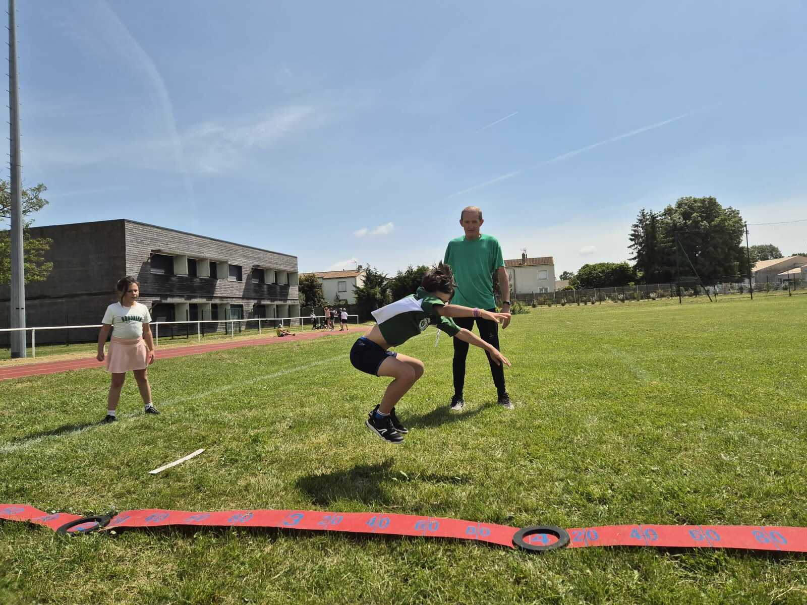 17 équipes composées de jeunes athlètes de notre club, accompagnés de leur famille (parents et fratries) ou encore quelques équipes constituées de copains d’entrainement. Tous ont concouru sur des ateliers façonnés par Jacky Bant, assisté par nos bénévoles. Encore merci à eux pour leur générosité et leur dévouement. Les épreuves étaient ludiques et parfois même enfantines mais pas forcément à la portée de tous, même pour les plus talentueux des stades. Les sauts étaient à l’honneur ainsi que les lancers et les courses à obstacles.