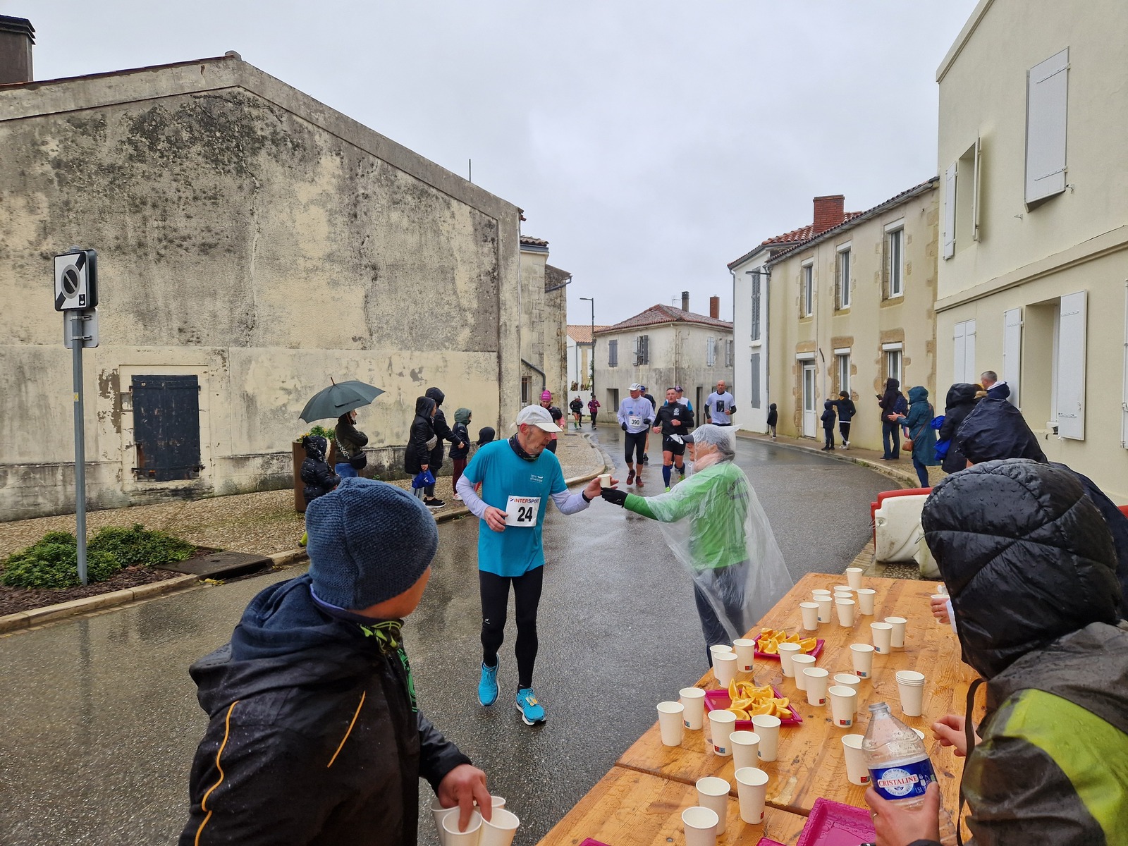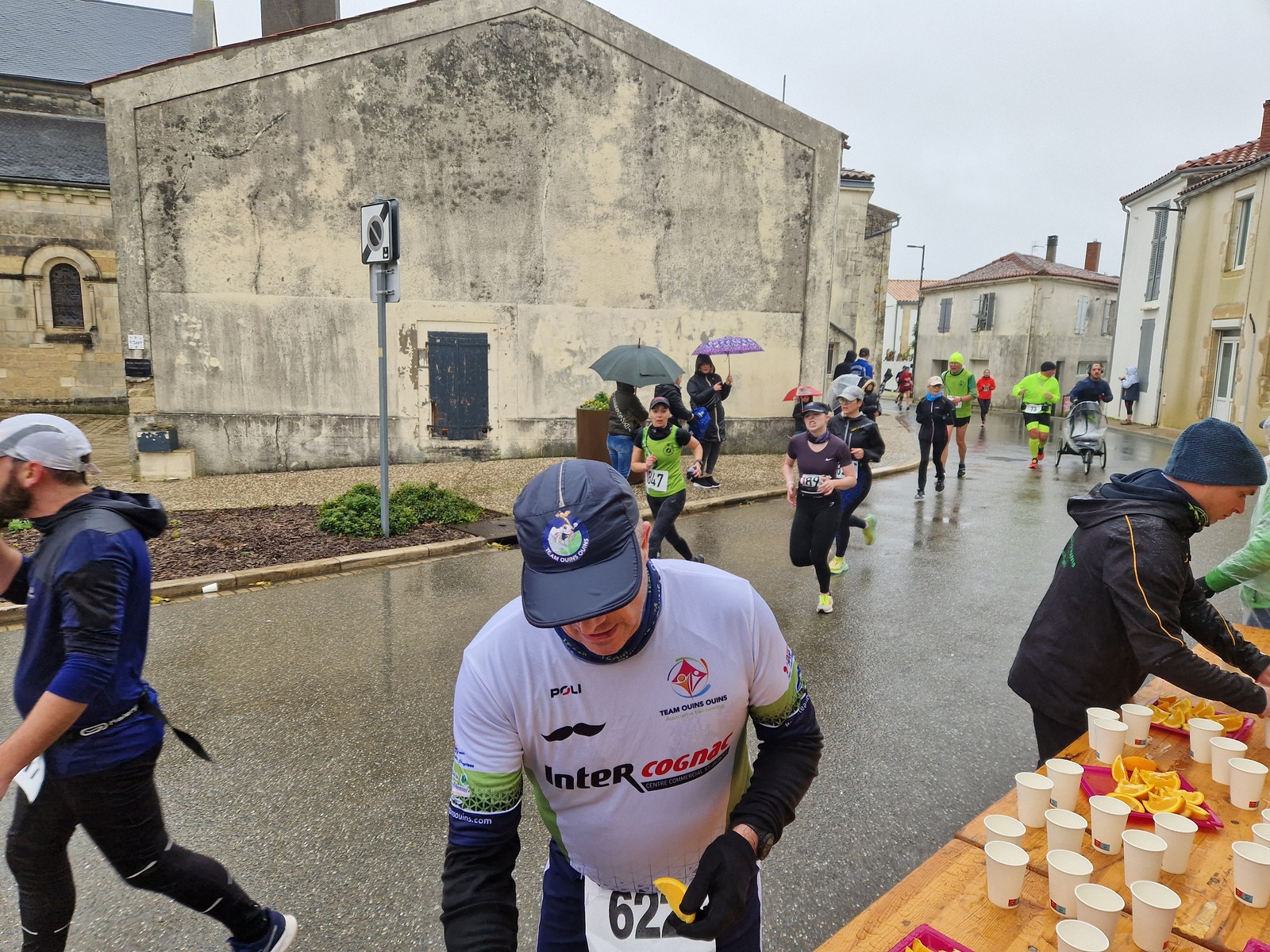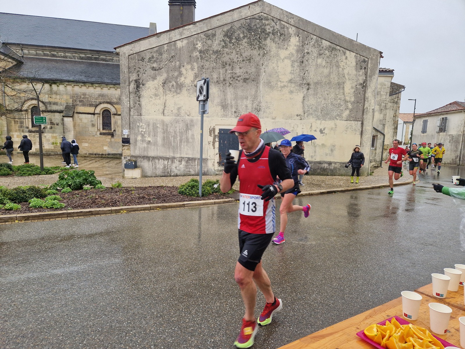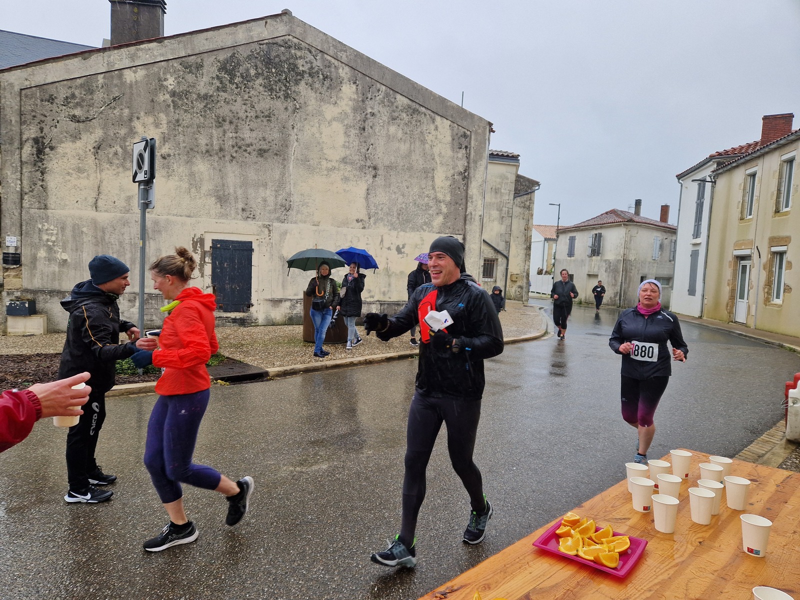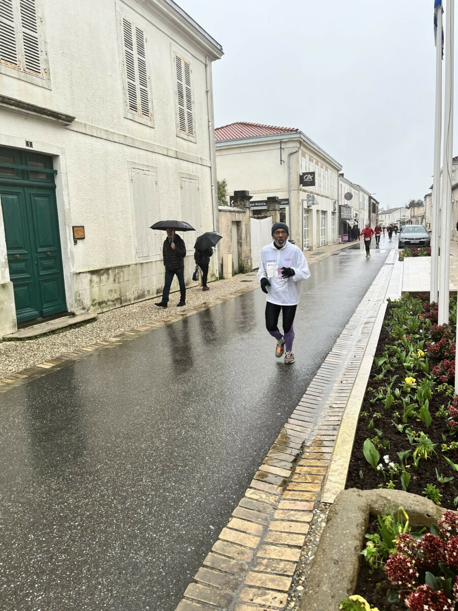 "Merci pour cette belle course. La météo n’était pas au rdv mais vos sourires et votre sympathie nous ont réchauffé les cannes. J’ai été impressionné par le nombre de supporters malgré cette pluie."
