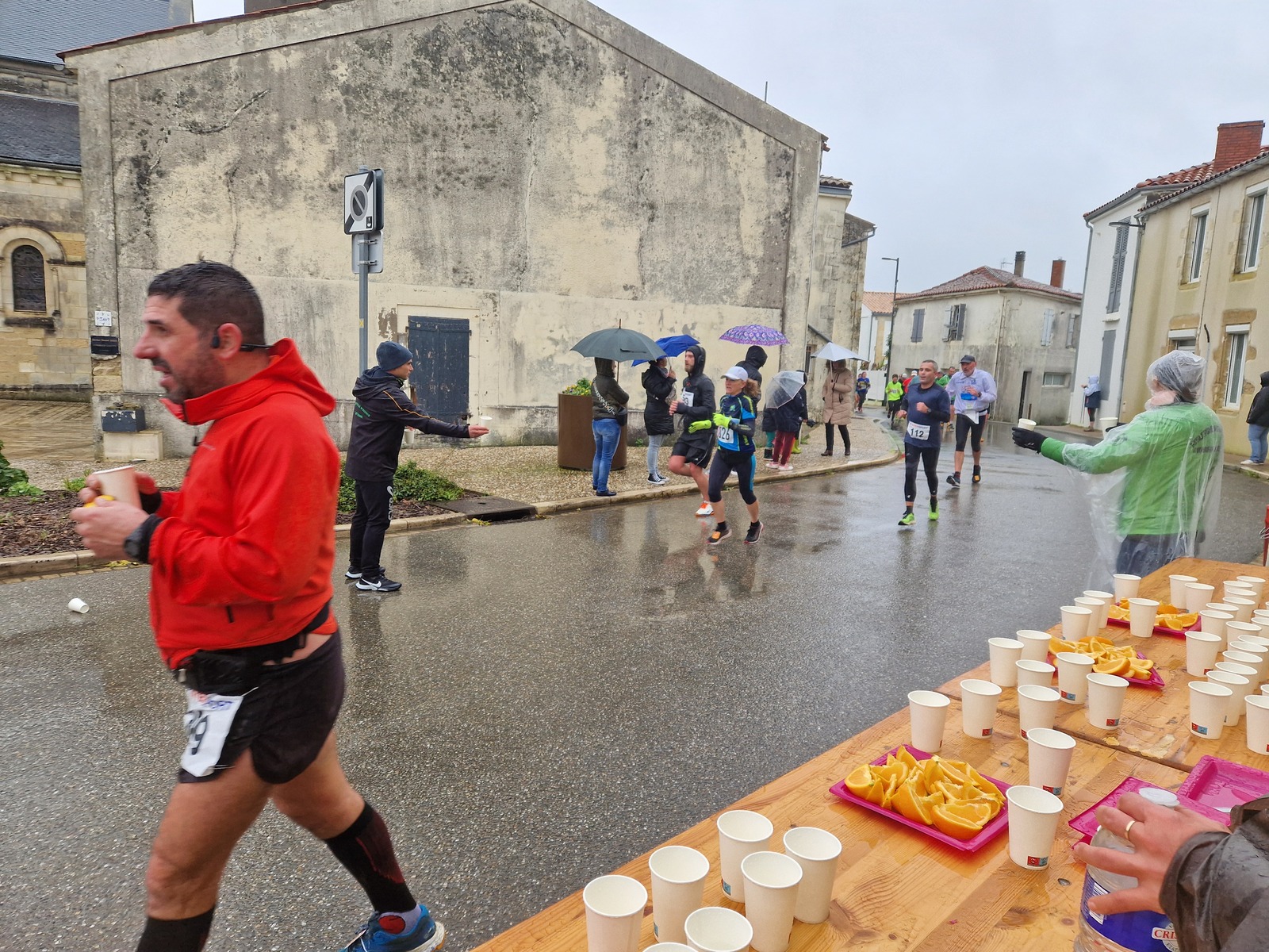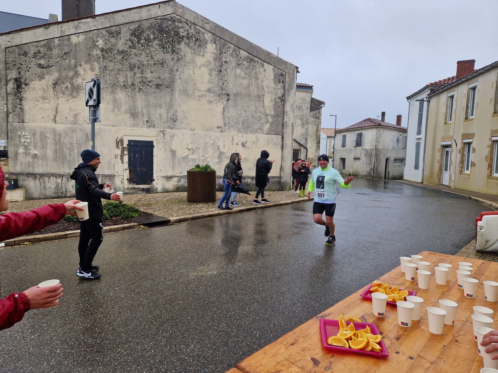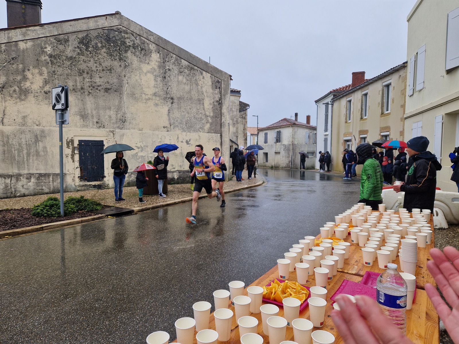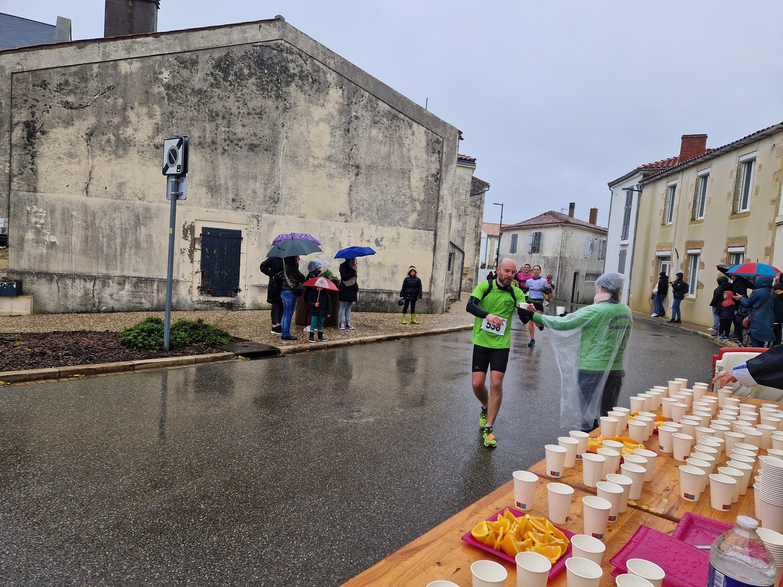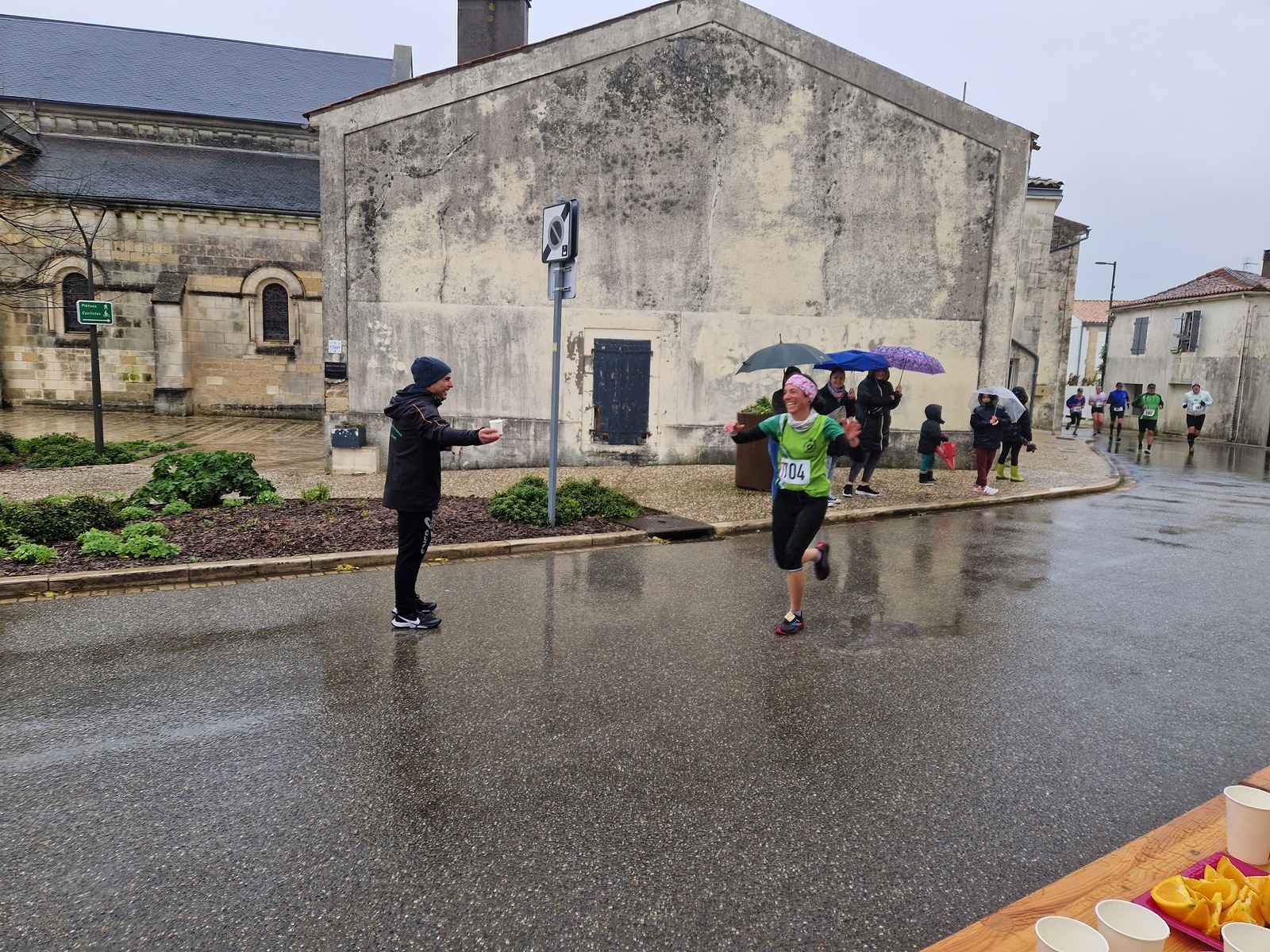 "Merci pour cette belle course. La météo n’était pas au rdv mais vos sourires et votre sympathie nous ont réchauffé les cannes. J’ai été impressionné par le nombre de supporters malgré cette pluie."
