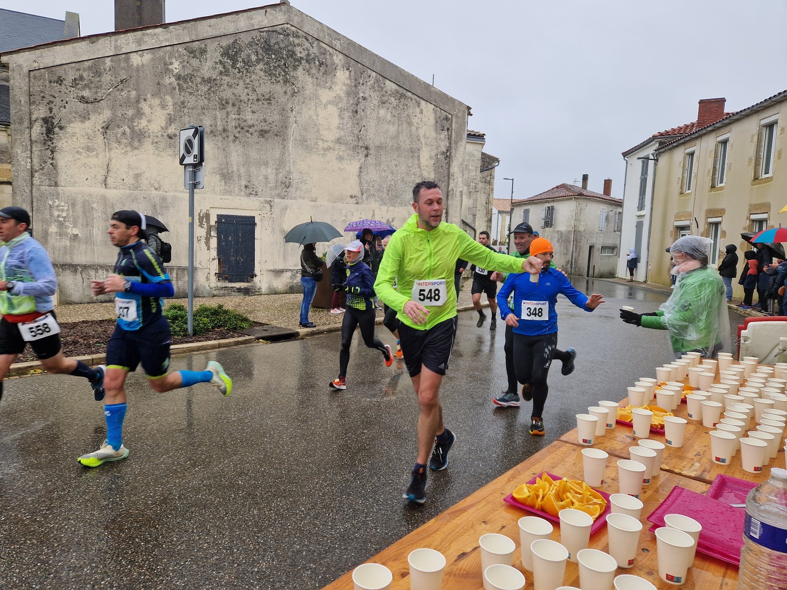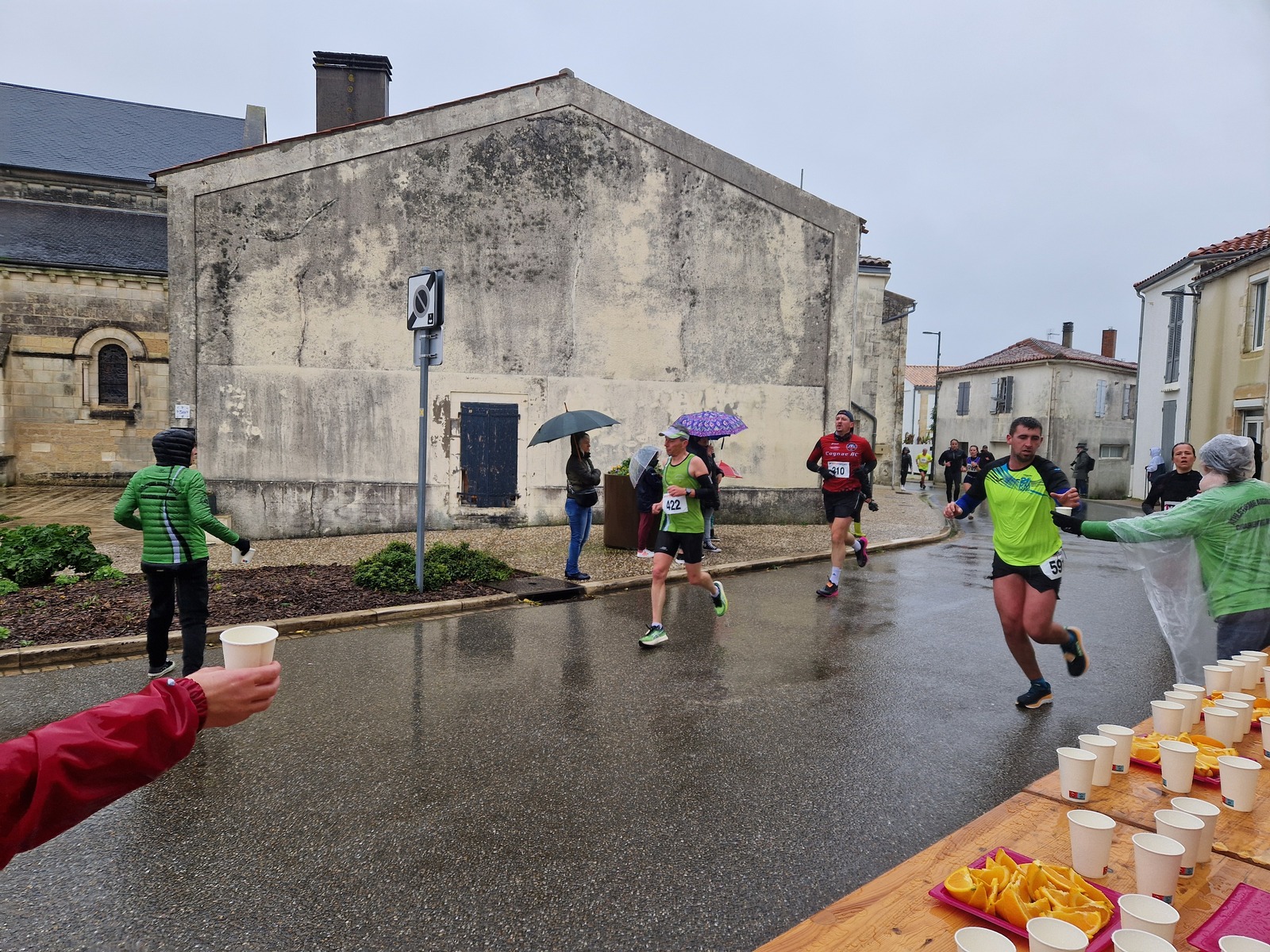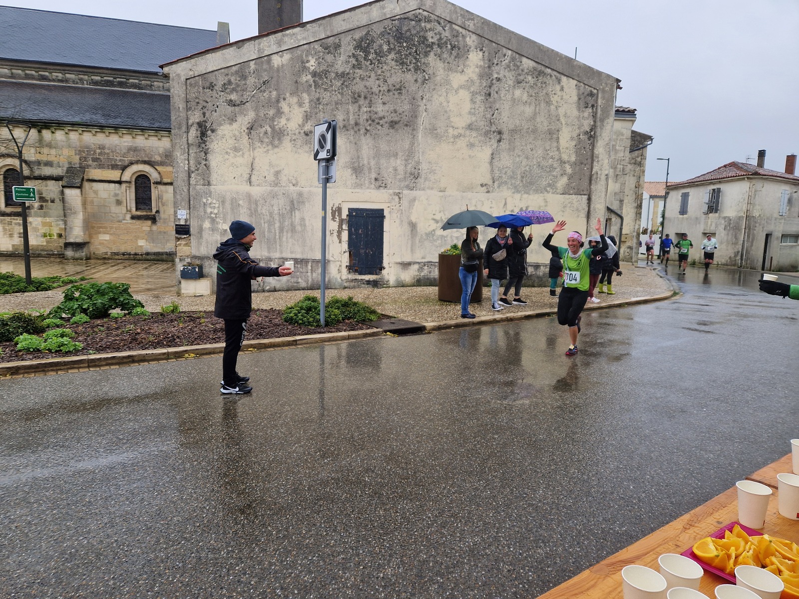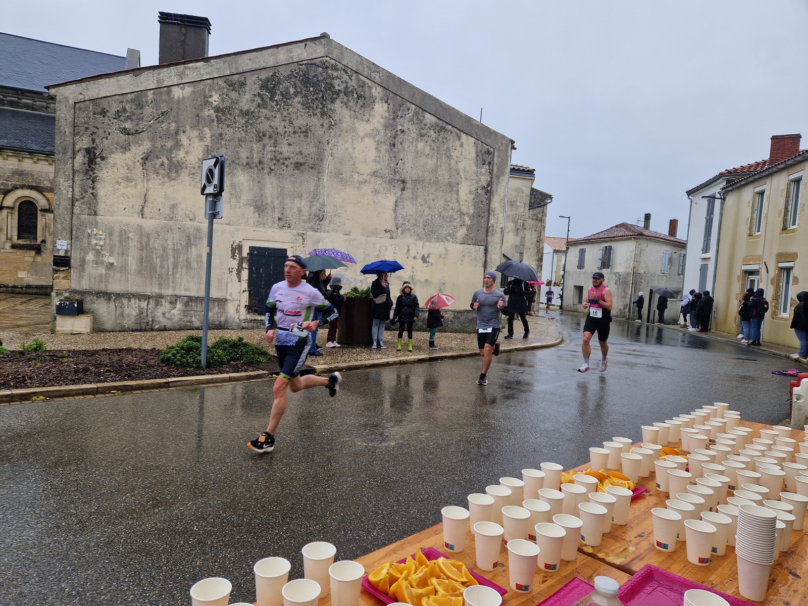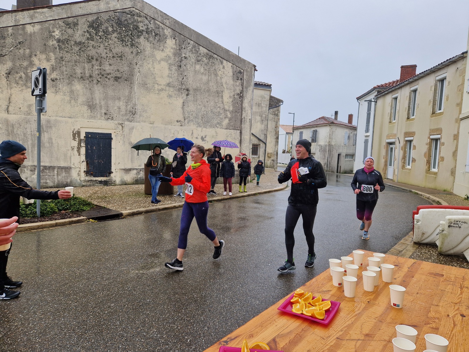 "Merci pour cette belle course. La météo n’était pas au rdv mais vos sourires et votre sympathie nous ont réchauffé les cannes. J’ai été impressionné par le nombre de supporters malgré cette pluie."