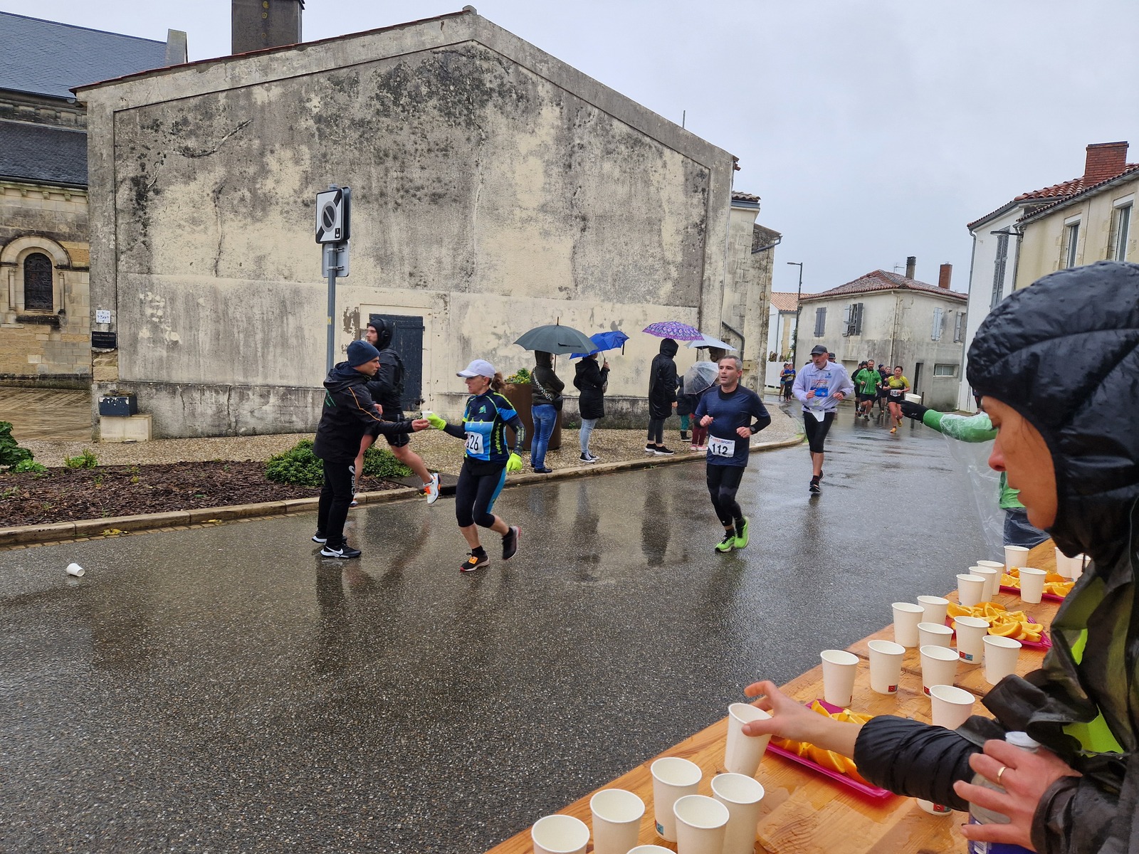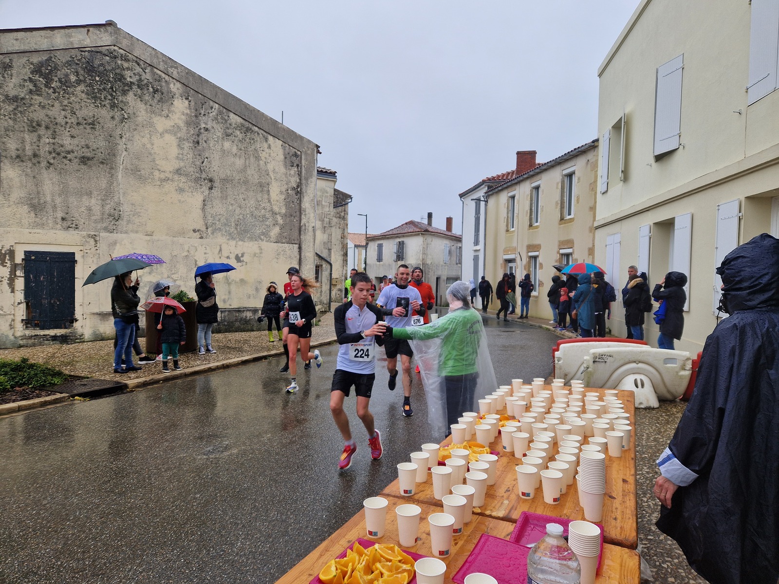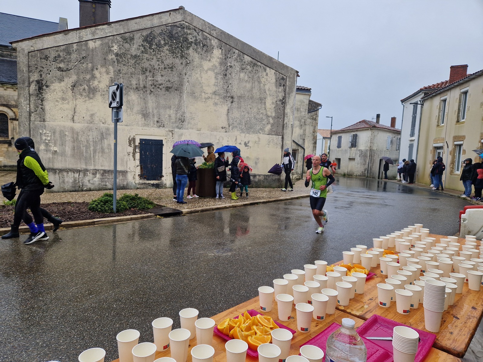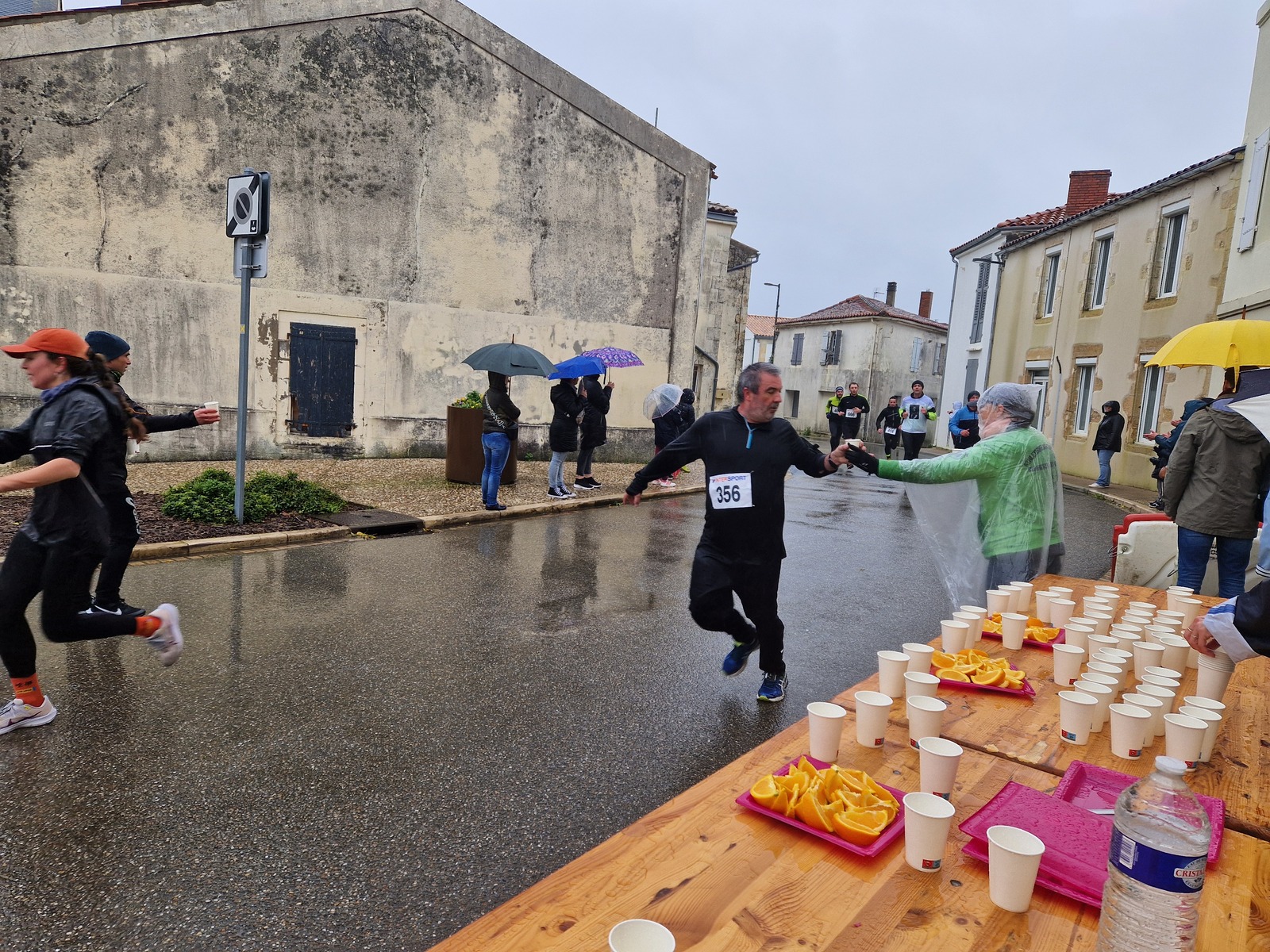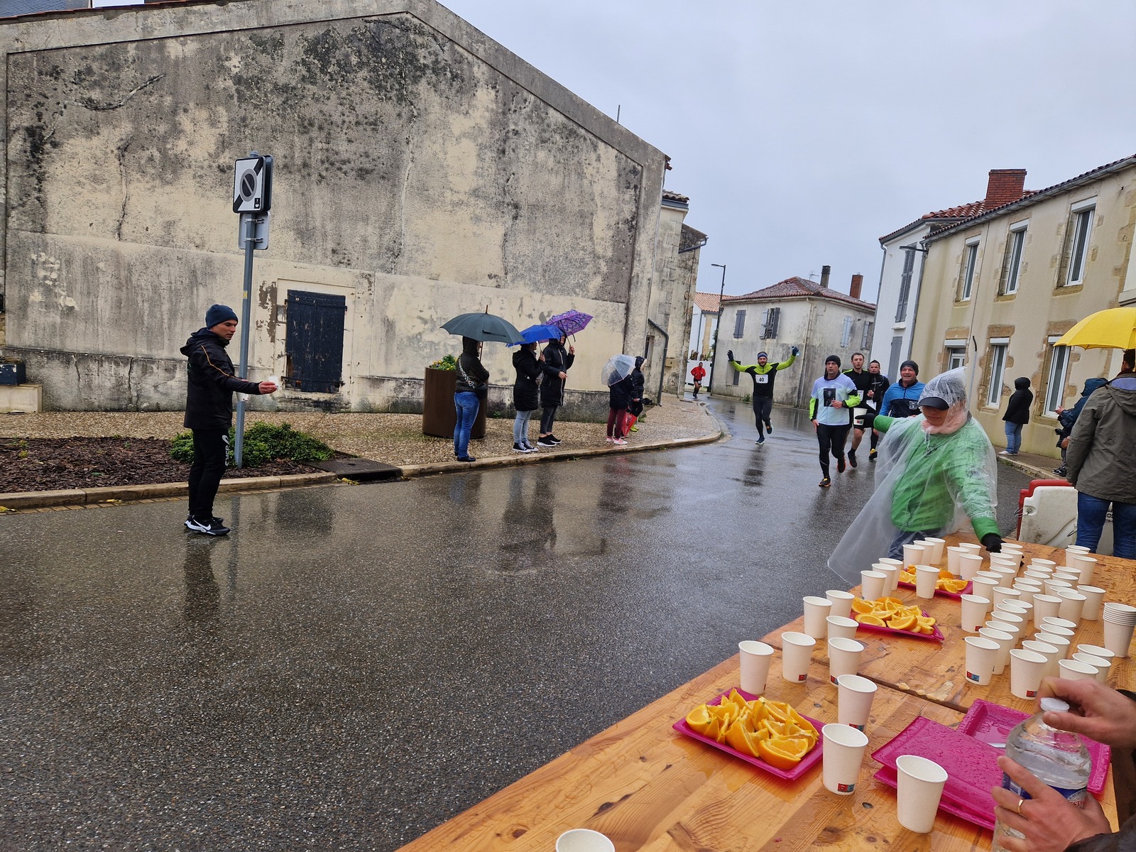 "Merci pour cette belle course. La météo n’était pas au rdv mais vos sourires et votre sympathie nous ont réchauffé les cannes. J’ai été impressionné par le nombre de supporters malgré cette pluie."