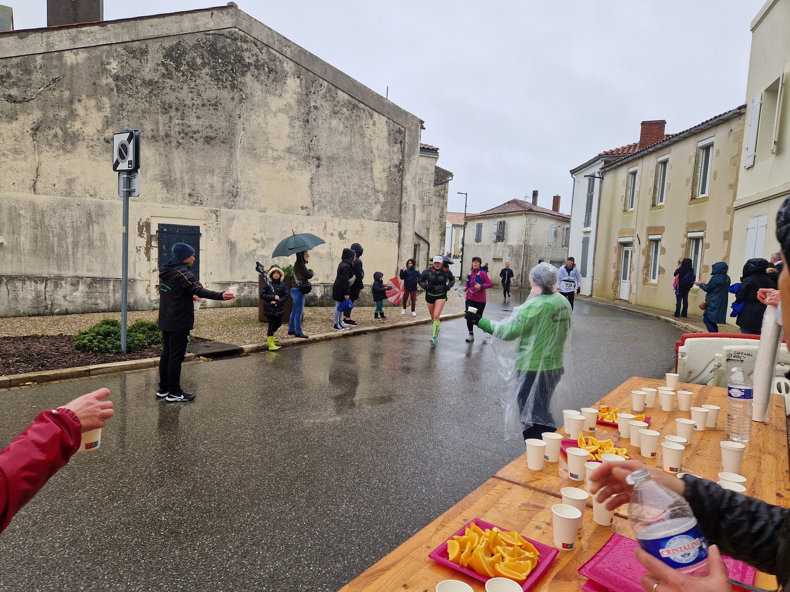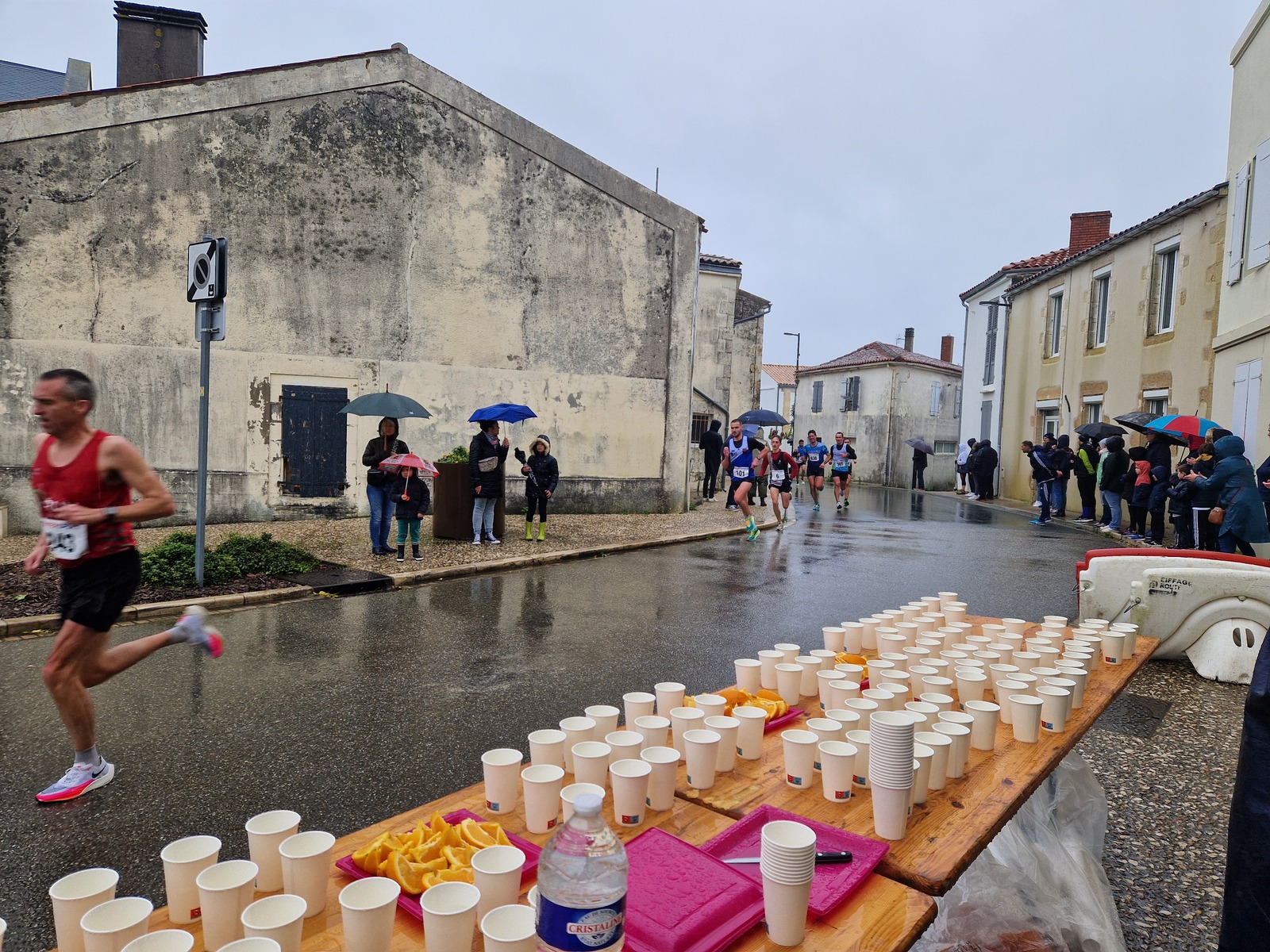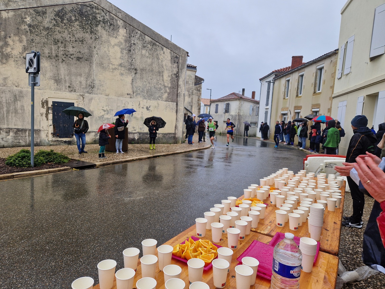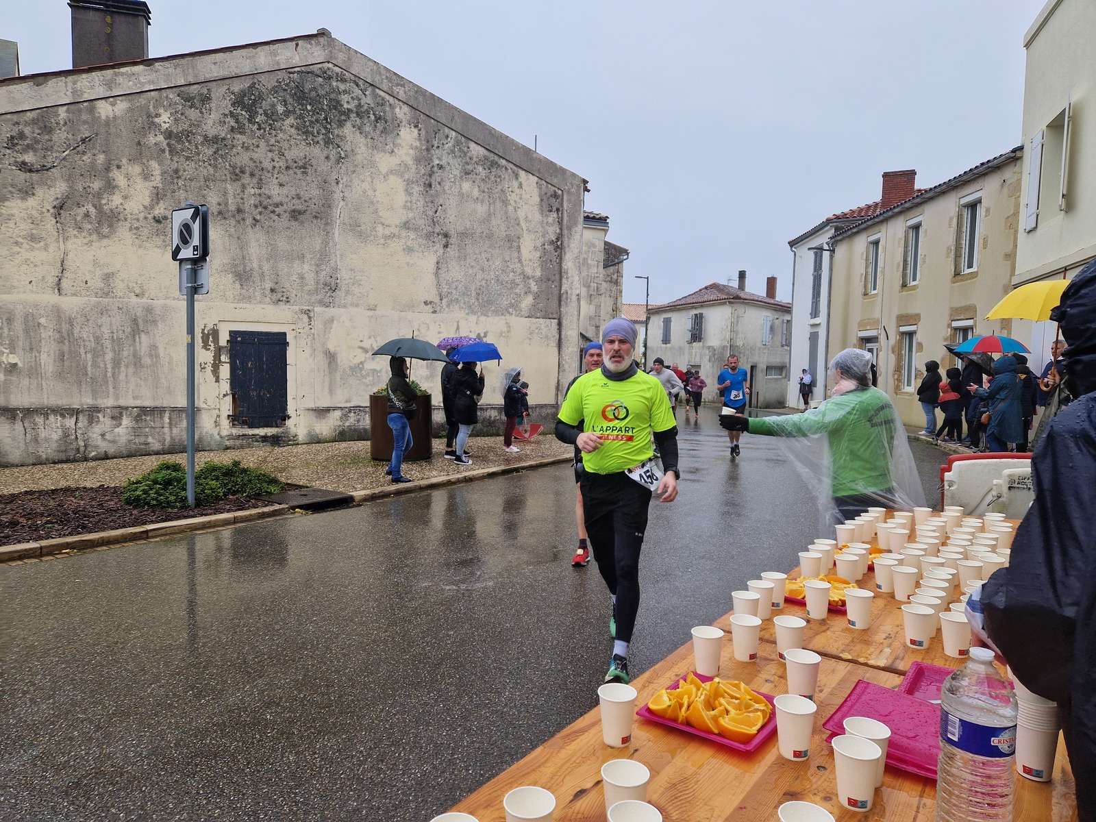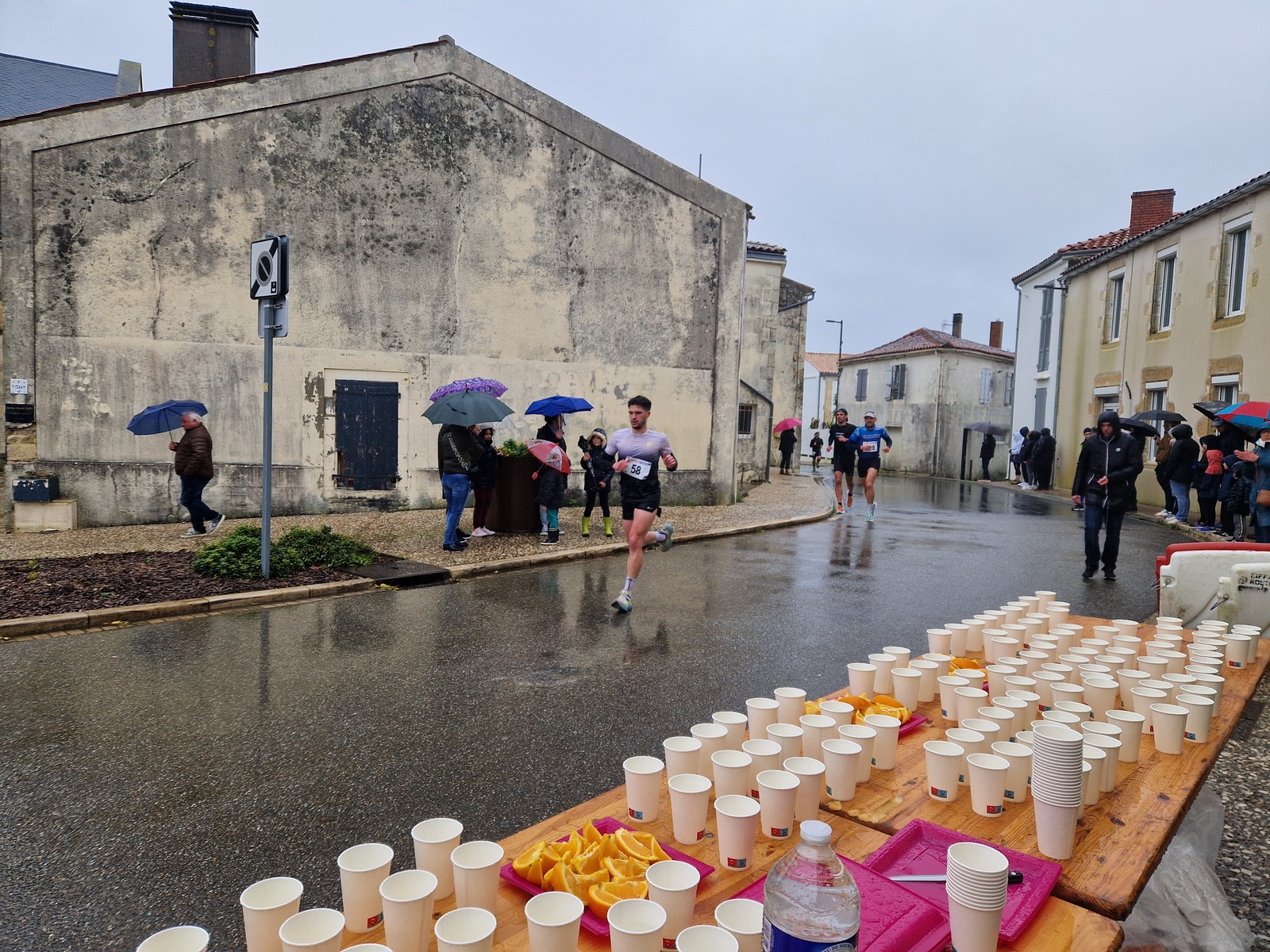 "Merci pour cette belle course. La météo n’était pas au rdv mais vos sourires et votre sympathie nous ont réchauffé les cannes. J’ai été impressionné par le nombre de supporters malgré cette pluie."