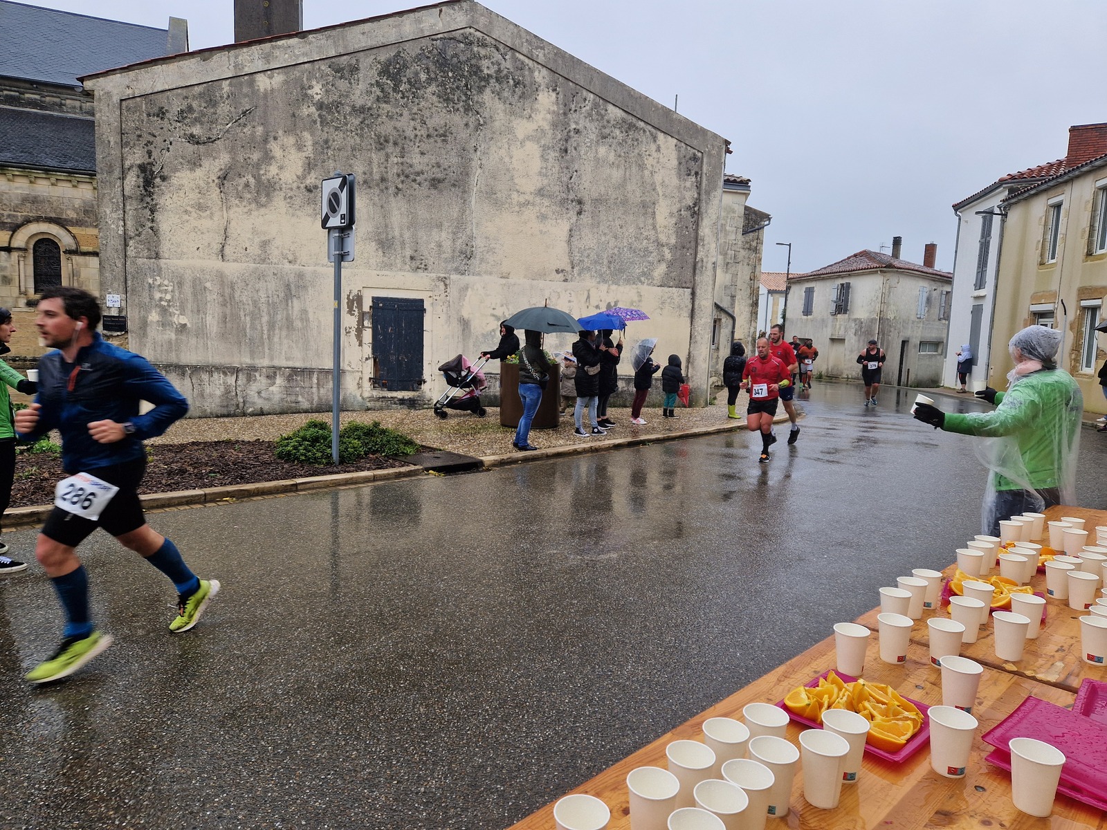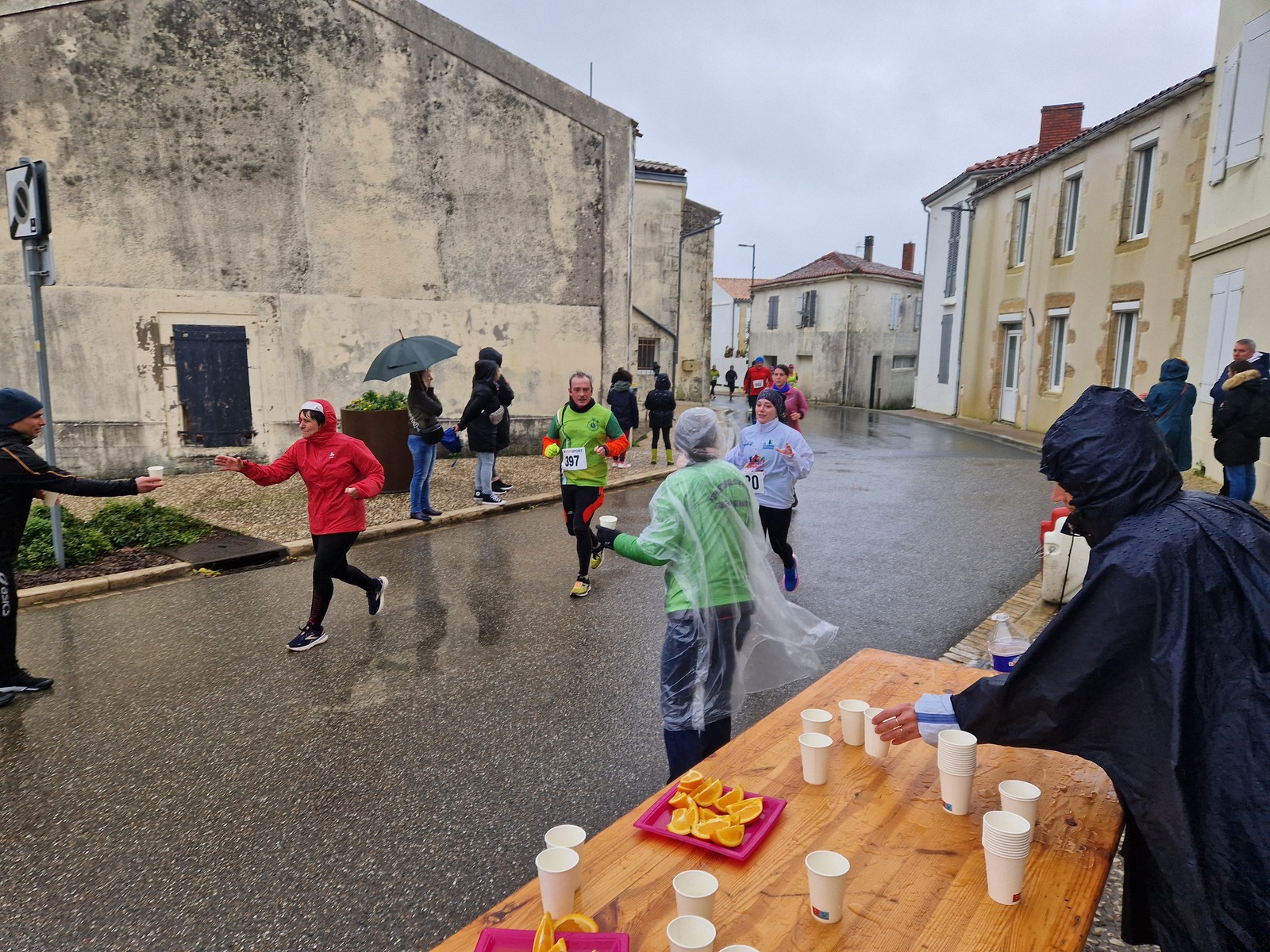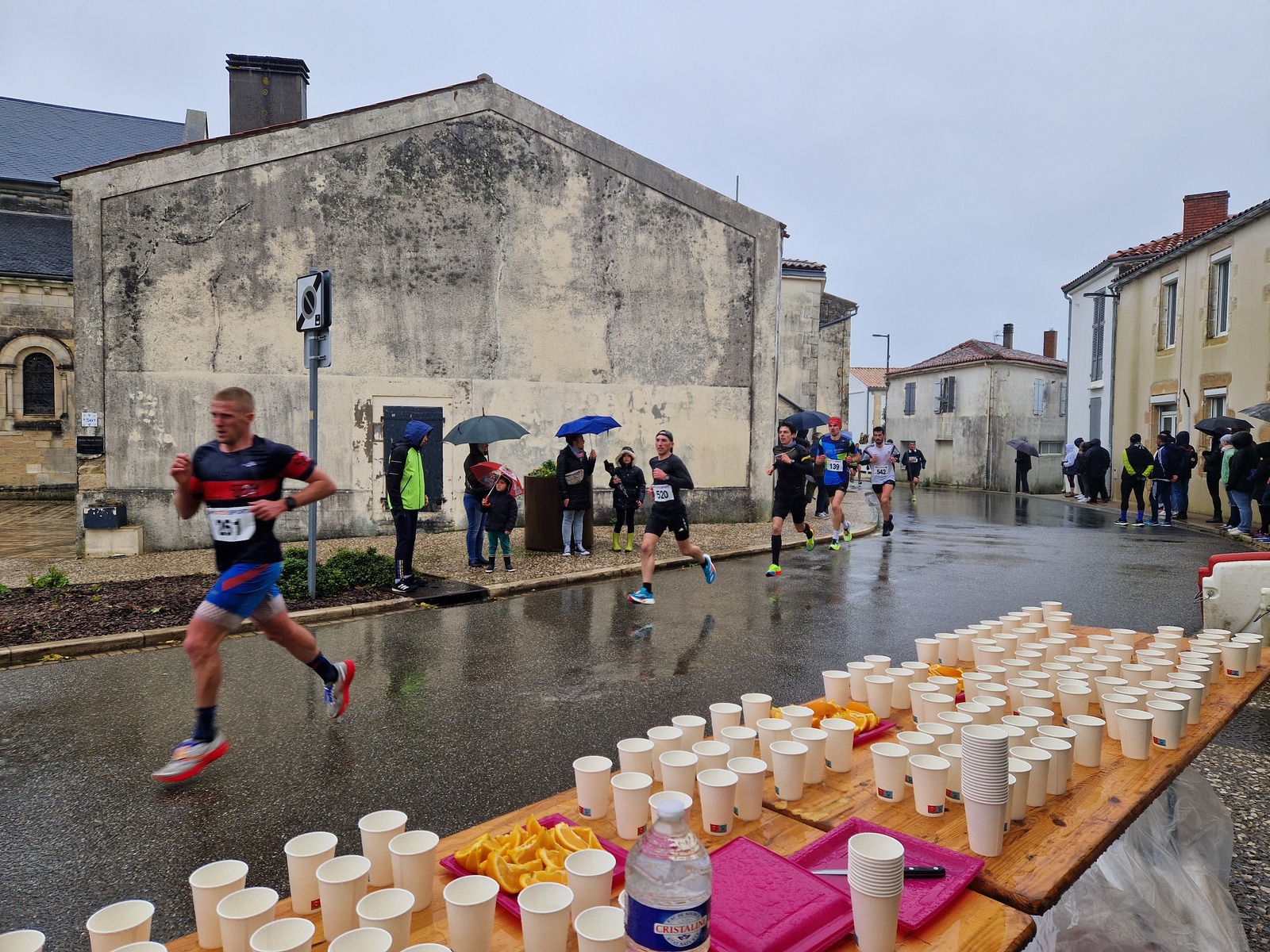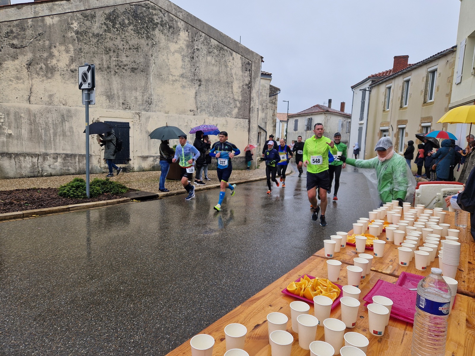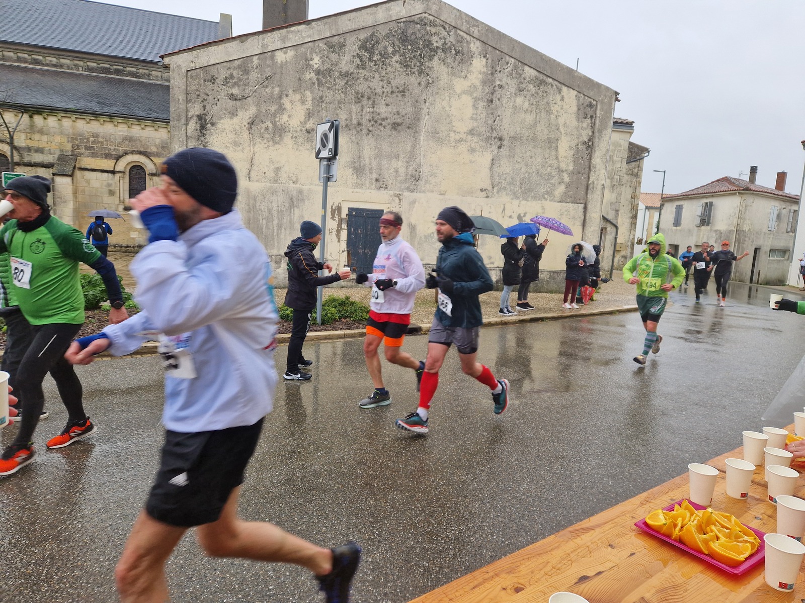 "Merci pour cette belle course. La météo n’était pas au rdv mais vos sourires et votre sympathie nous ont réchauffé les cannes. J’ai été impressionné par le nombre de supporters malgré cette pluie."
