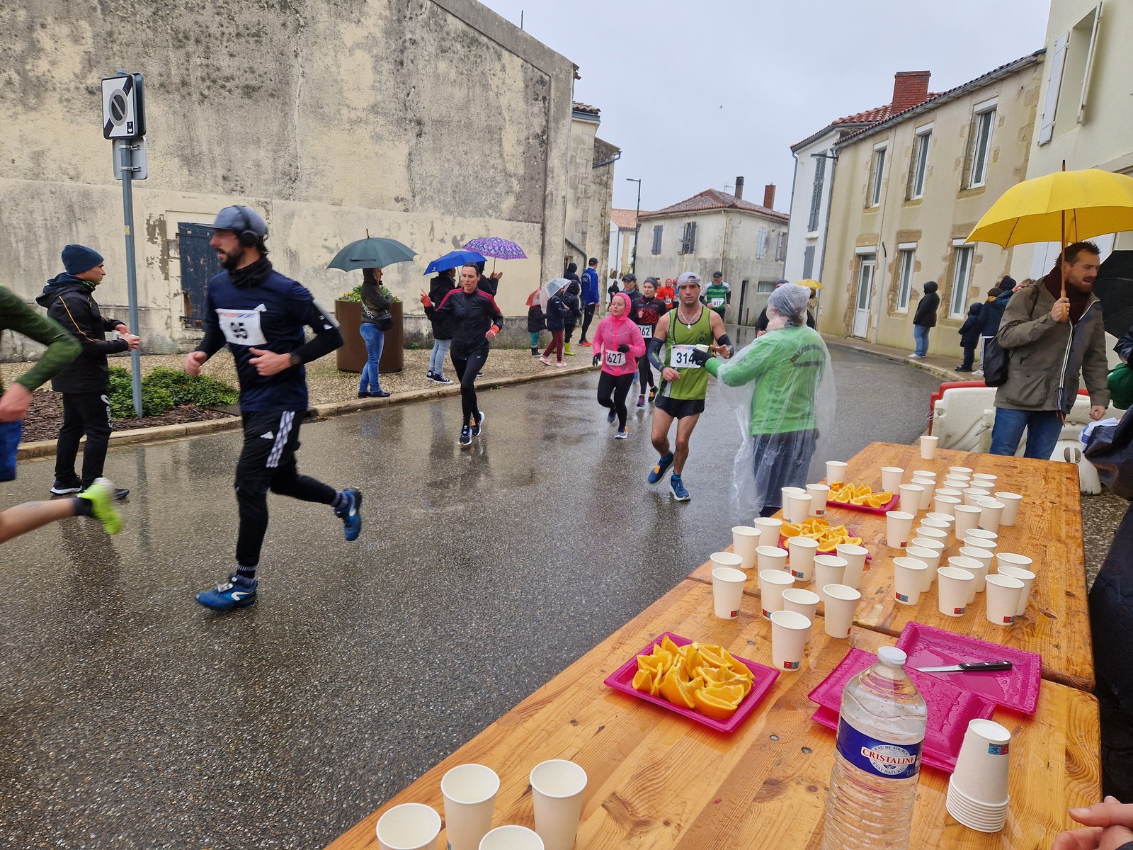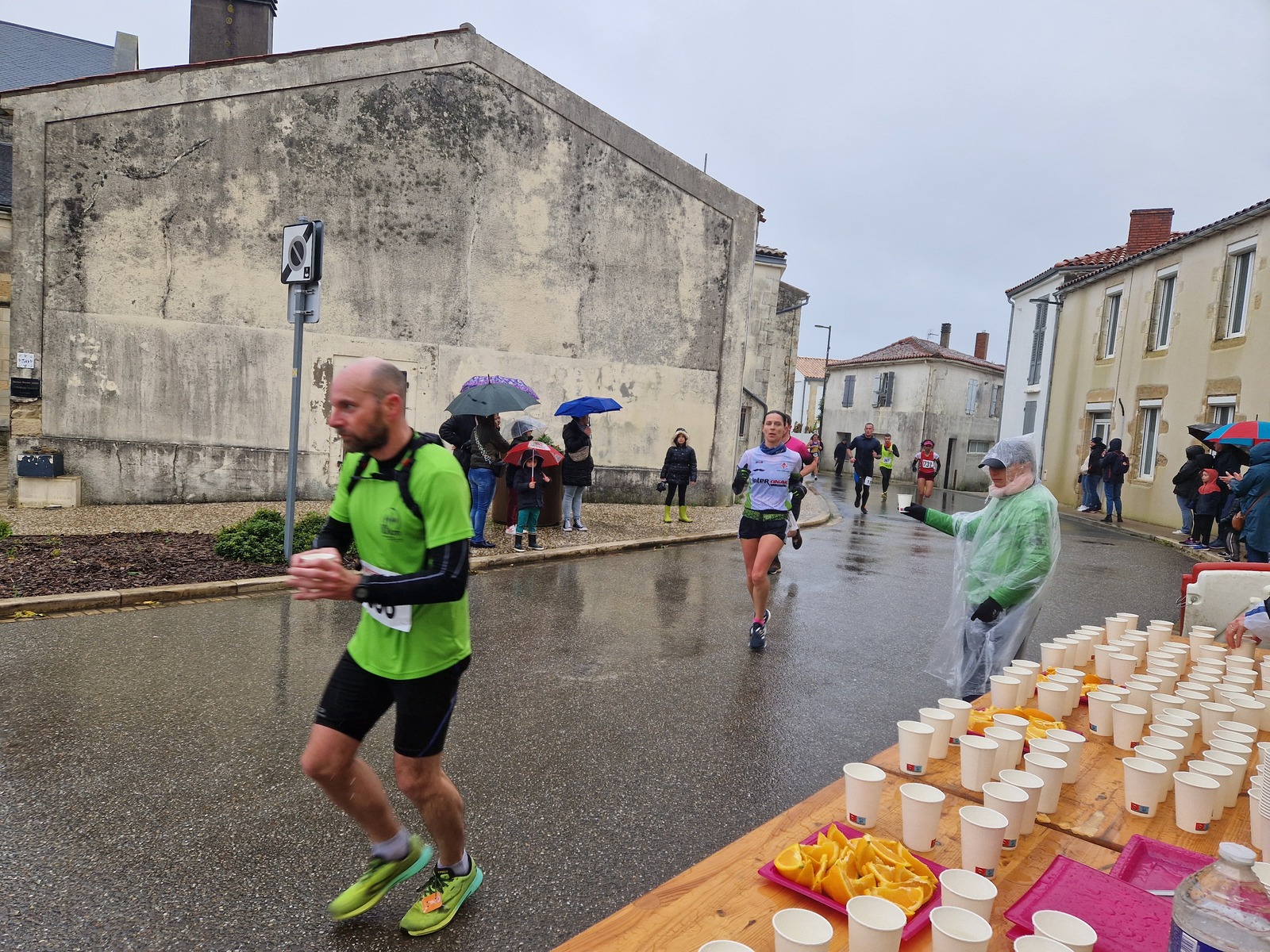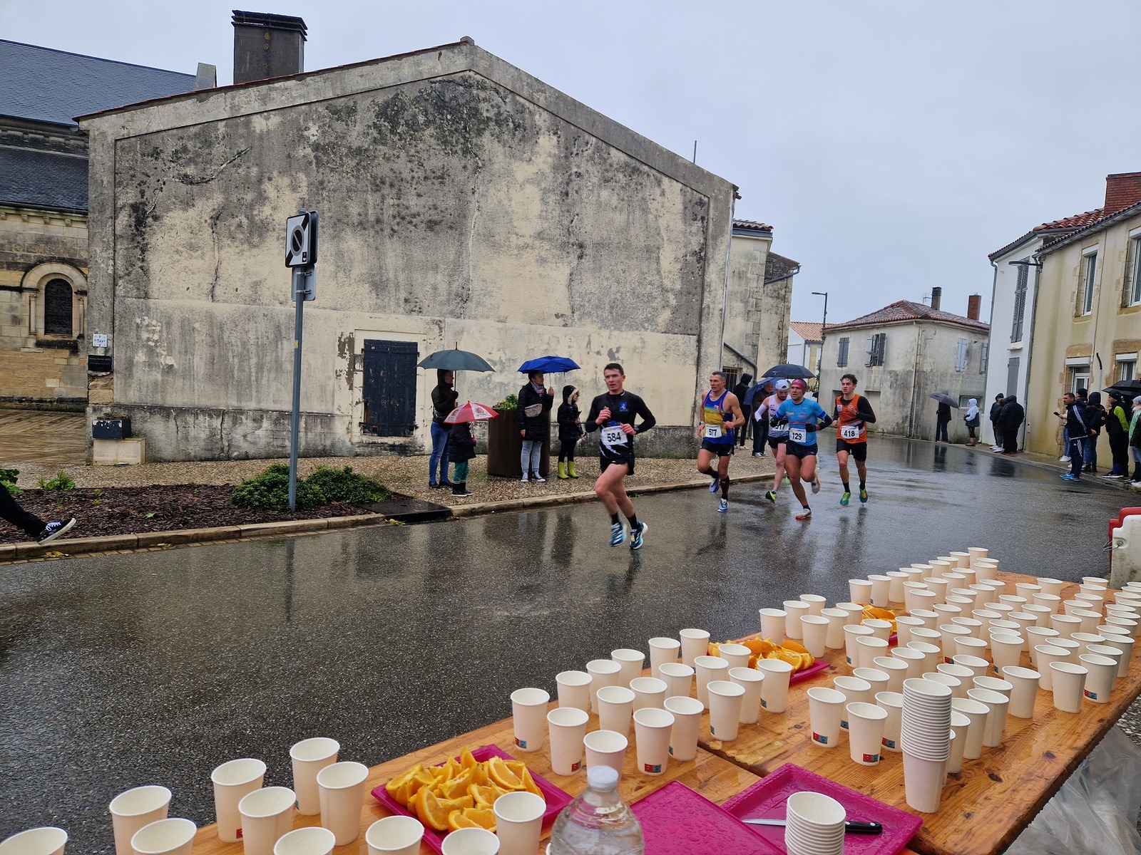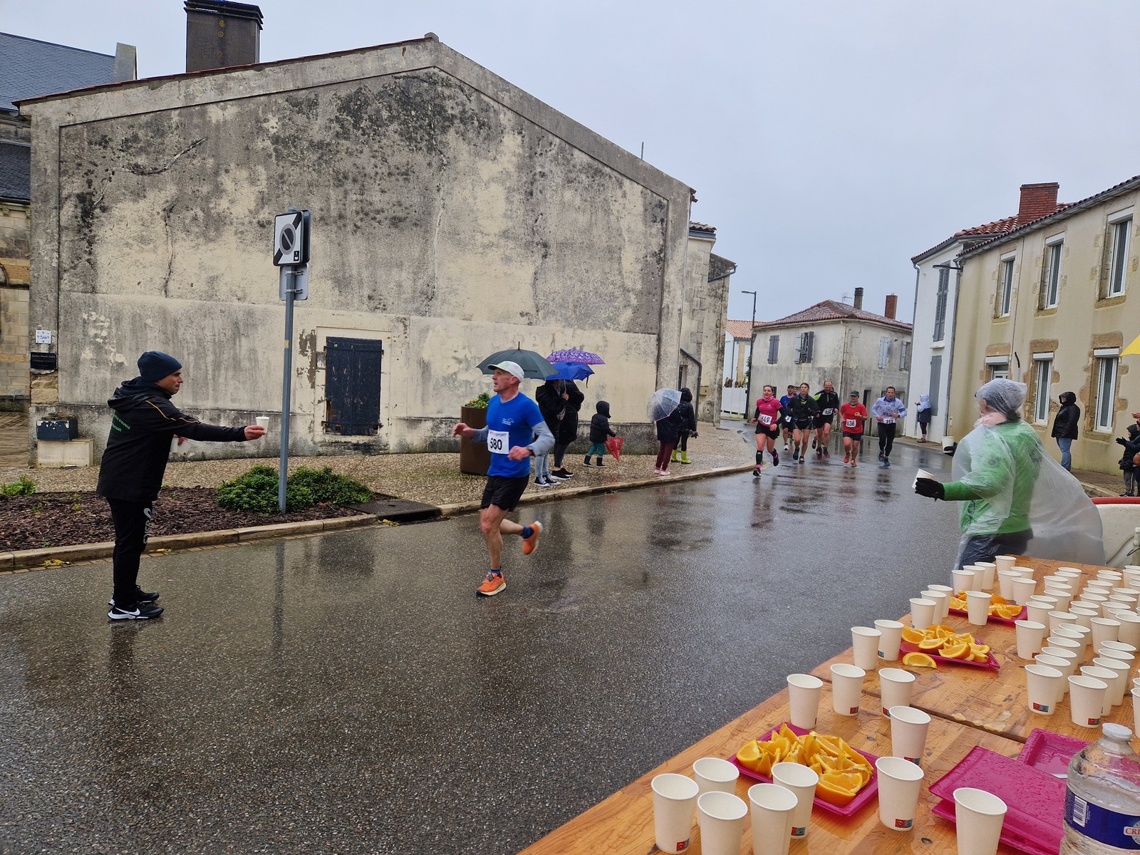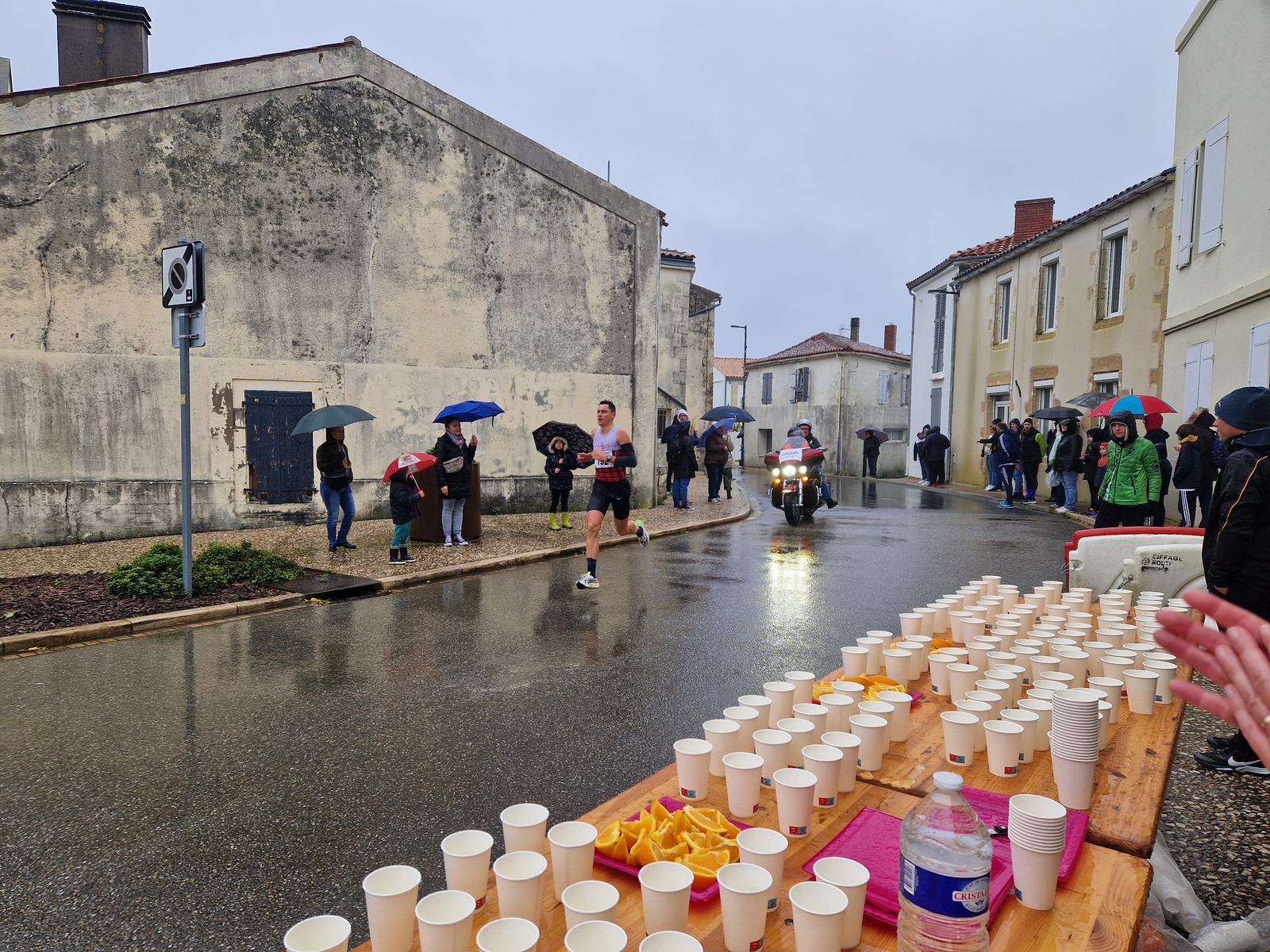 "Merci pour cette belle course. La météo n’était pas au rdv mais vos sourires et votre sympathie nous ont réchauffé les cannes. J’ai été impressionné par le nombre de supporters malgré cette pluie."