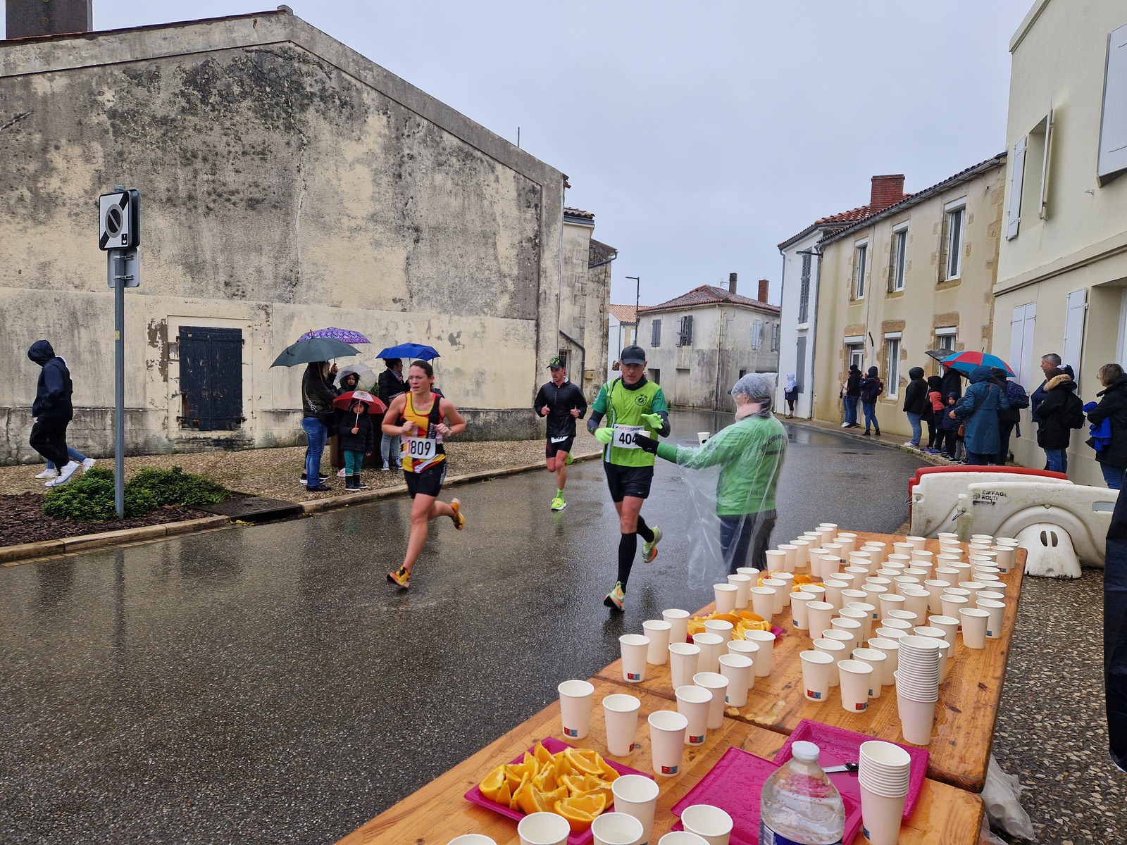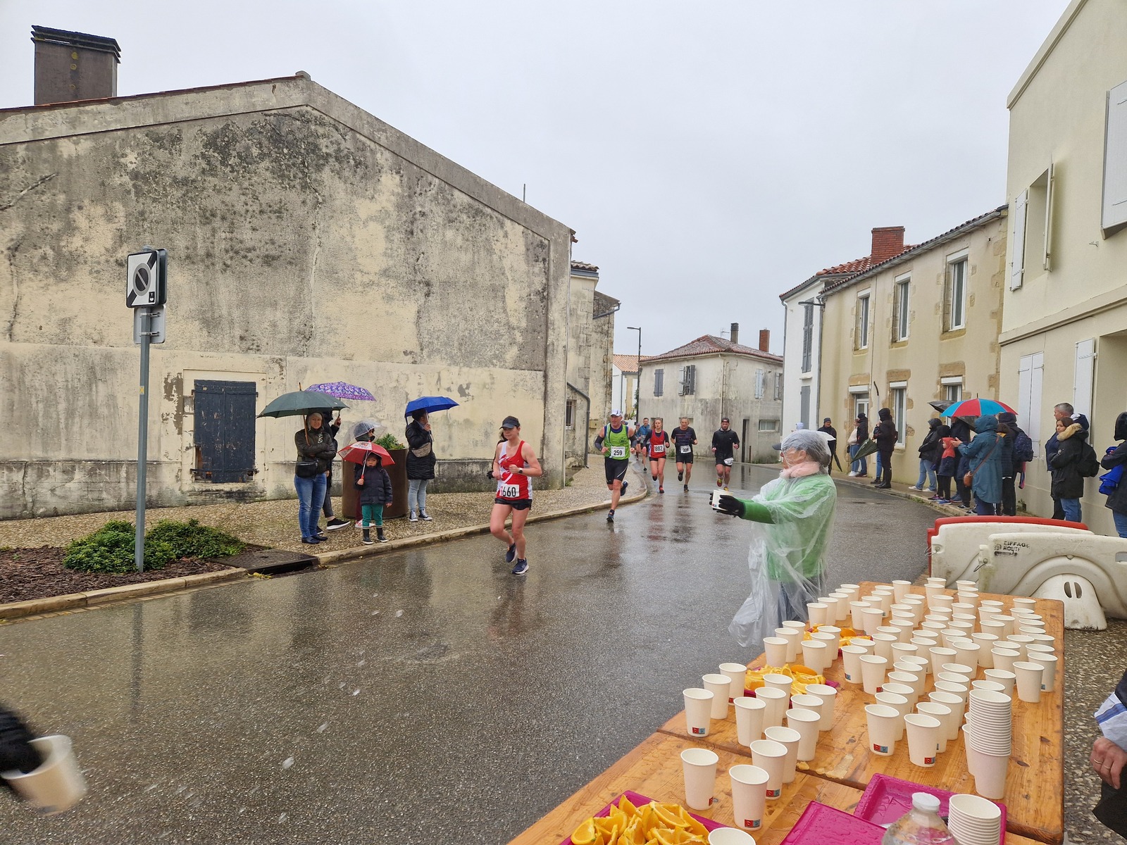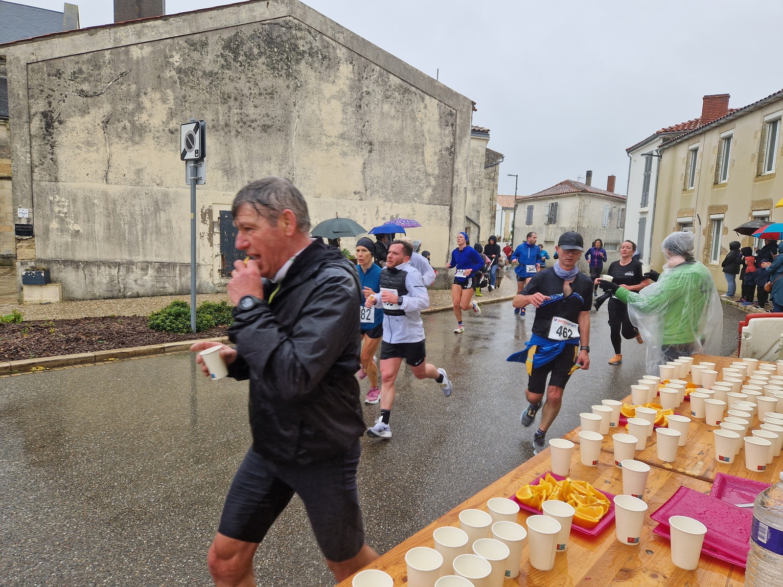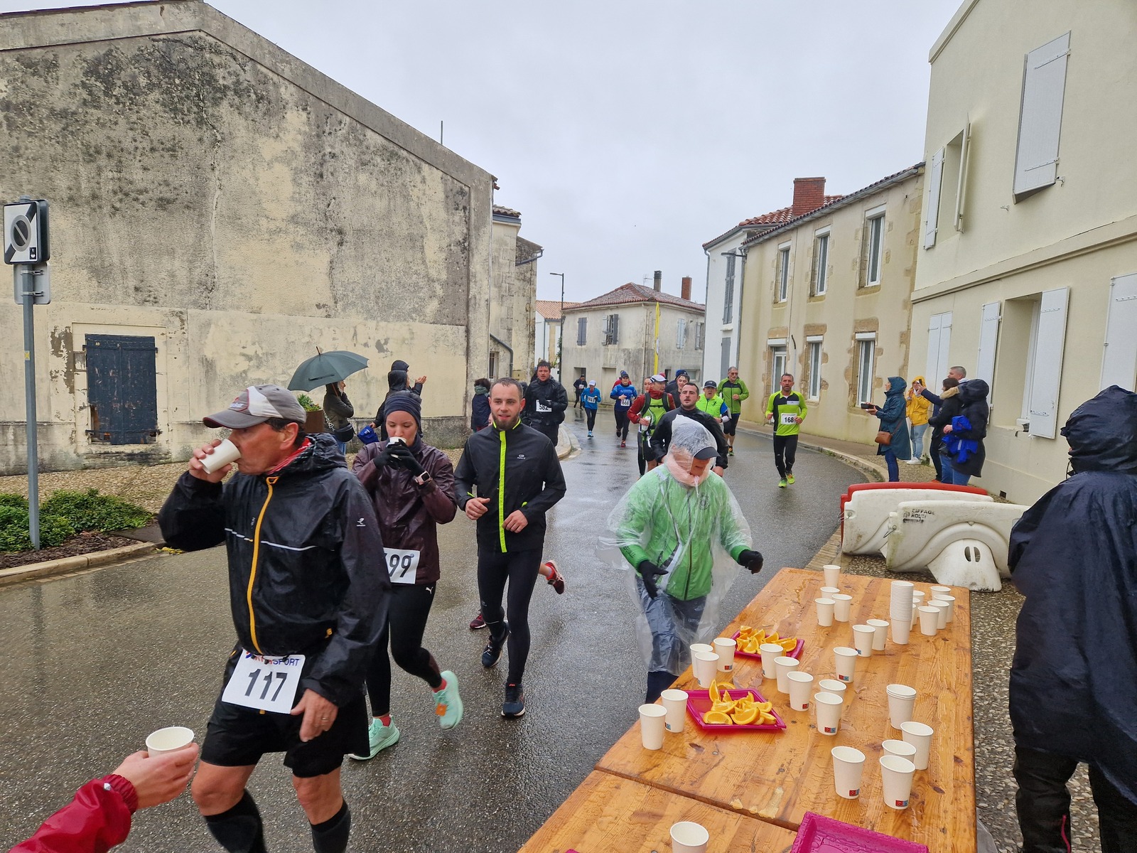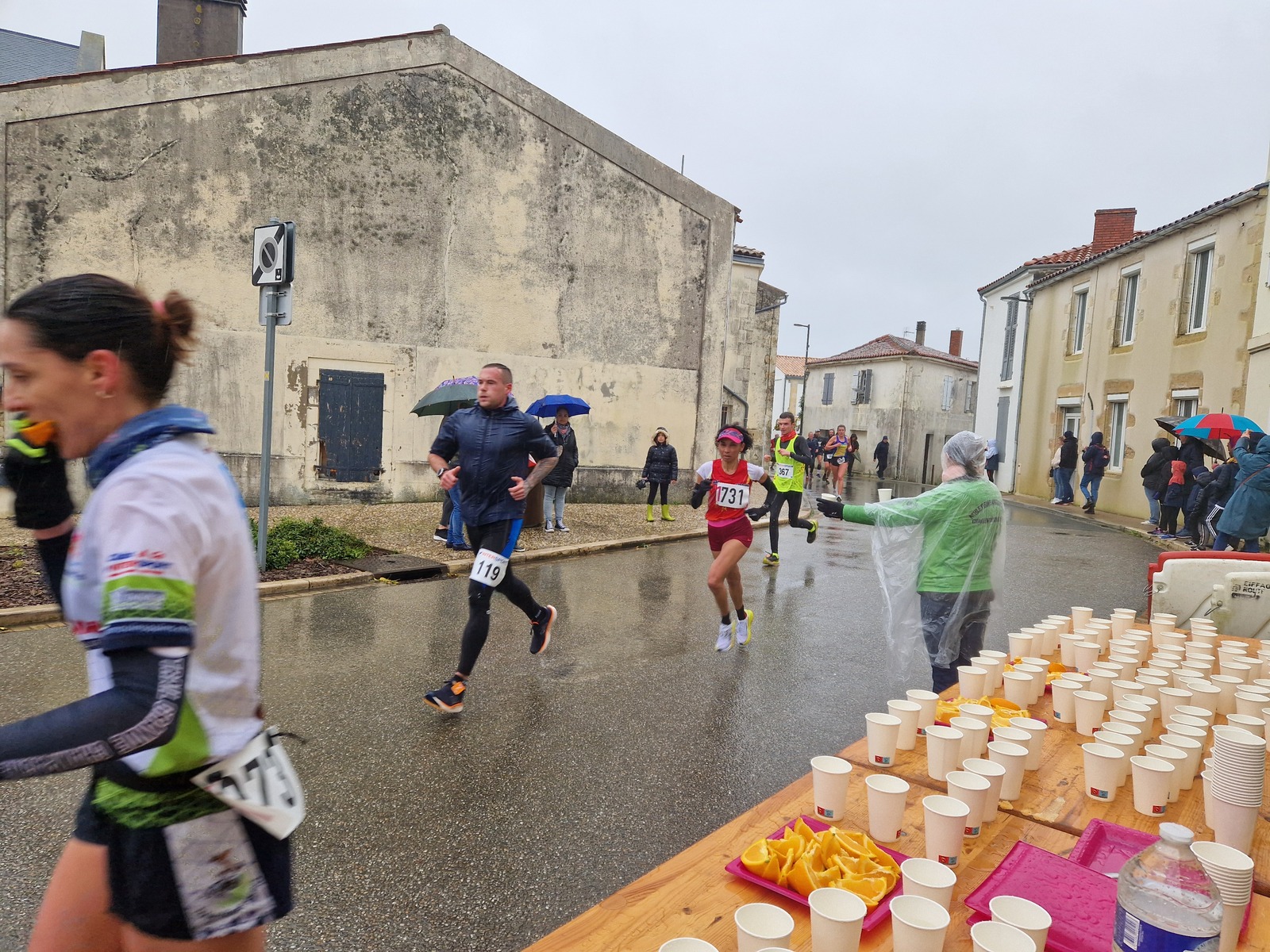 "Merci pour cette belle course. La météo n’était pas au rdv mais vos sourires et votre sympathie nous ont réchauffé les cannes. J’ai été impressionné par le nombre de supporters malgré cette pluie."