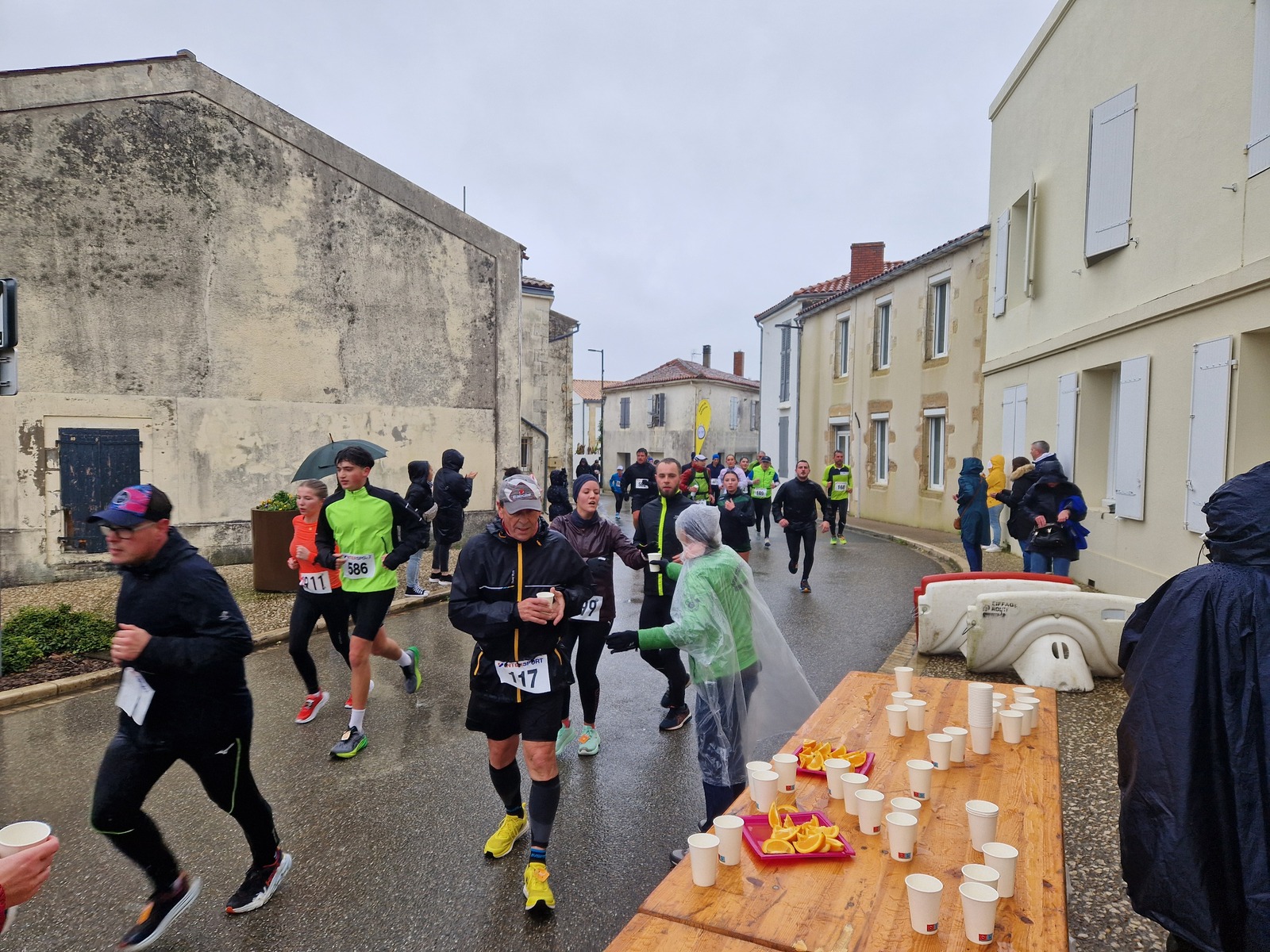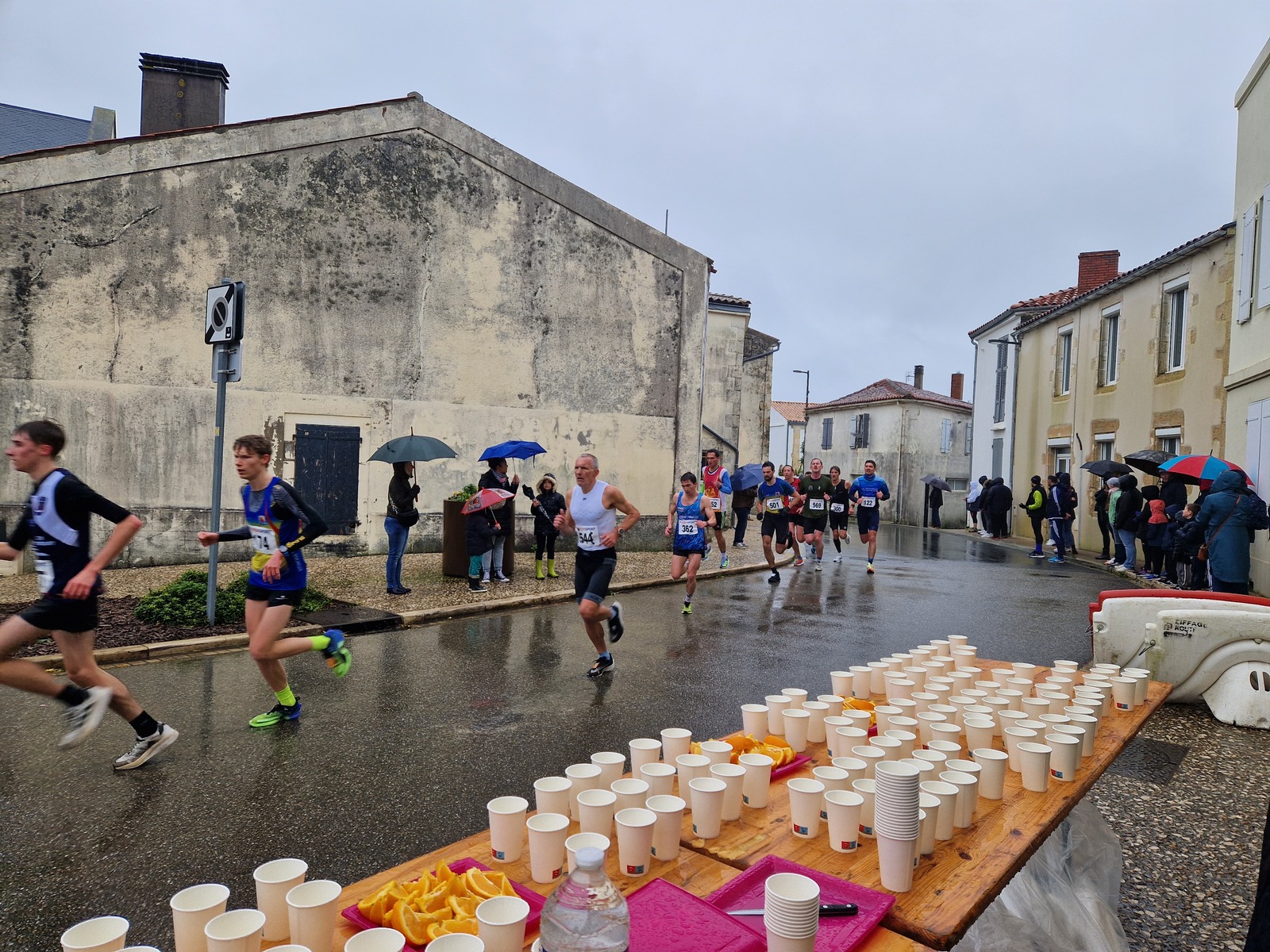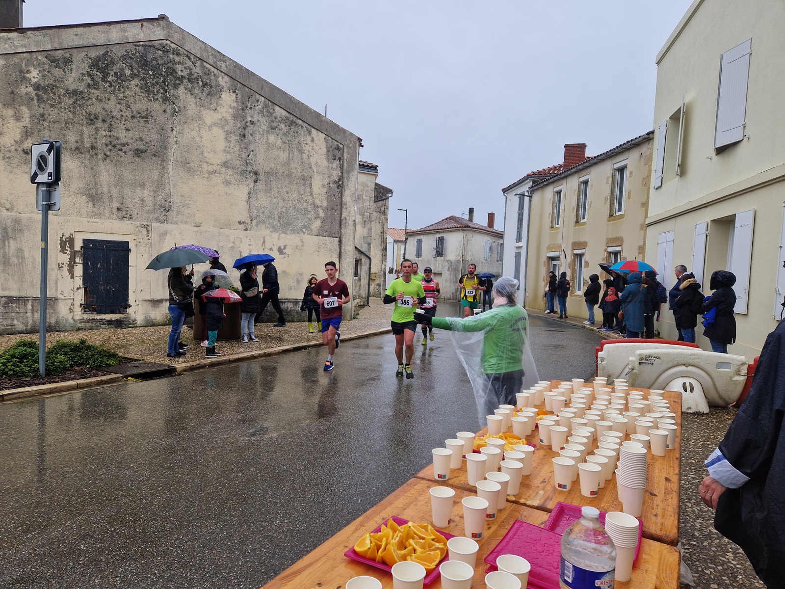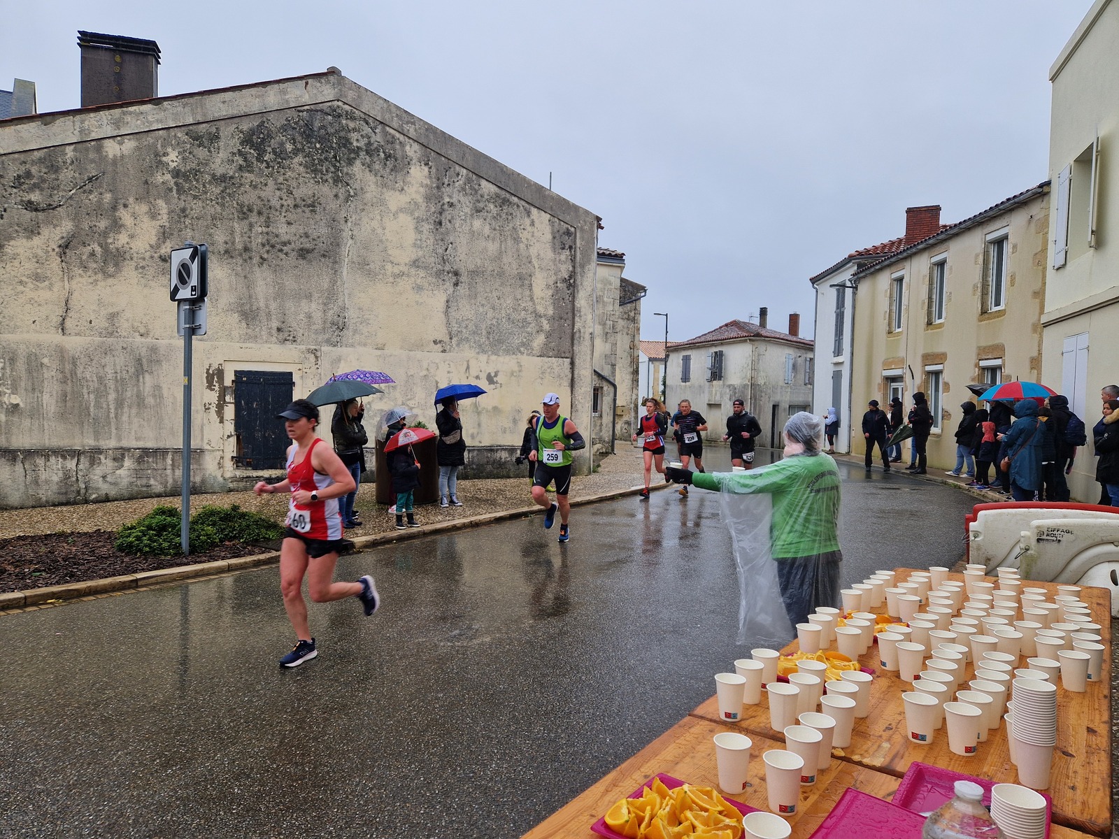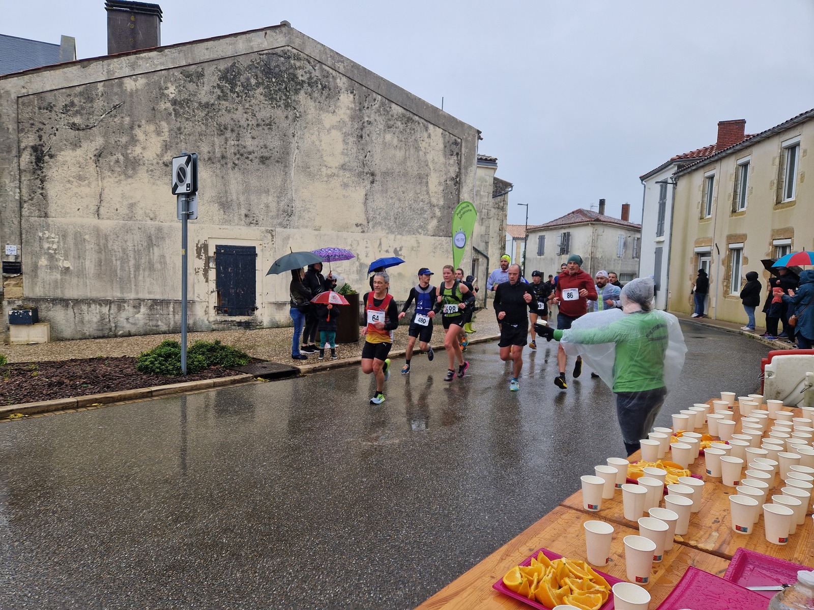 "Merci pour cette belle course. La météo n’était pas au rdv mais vos sourires et votre sympathie nous ont réchauffé les cannes. J’ai été impressionné par le nombre de supporters malgré cette pluie."