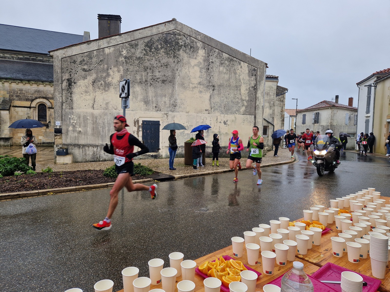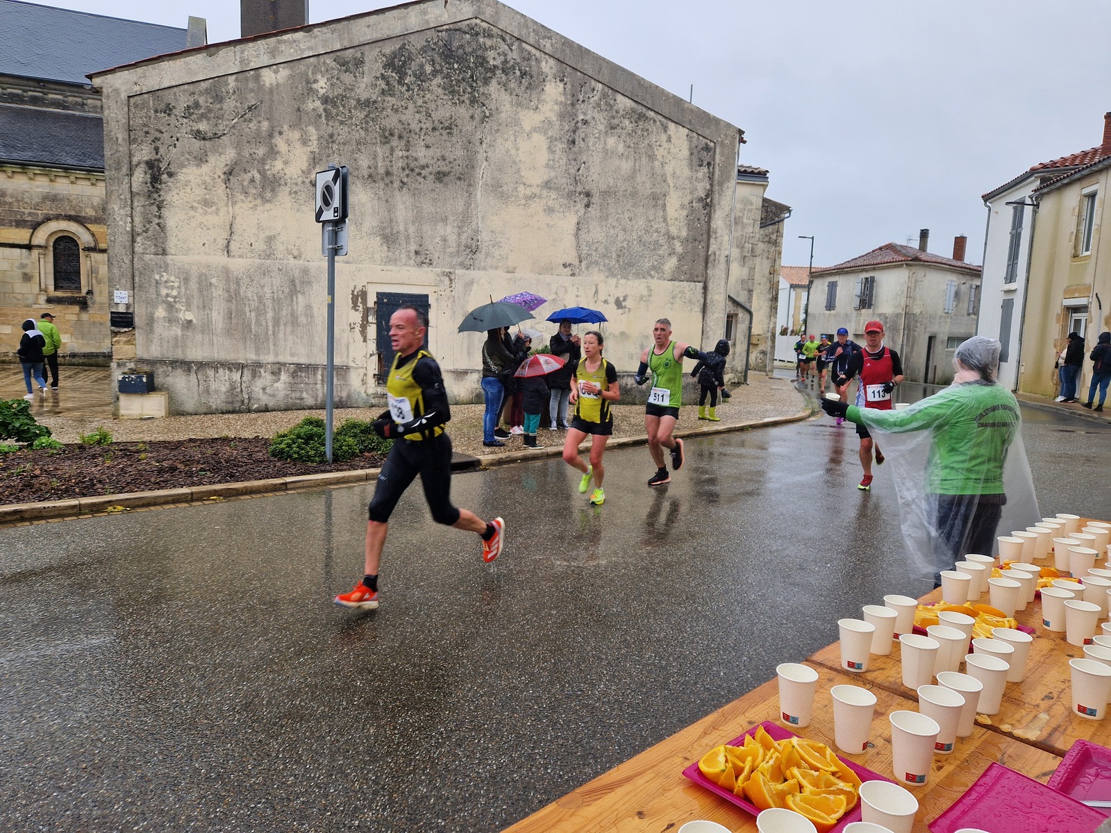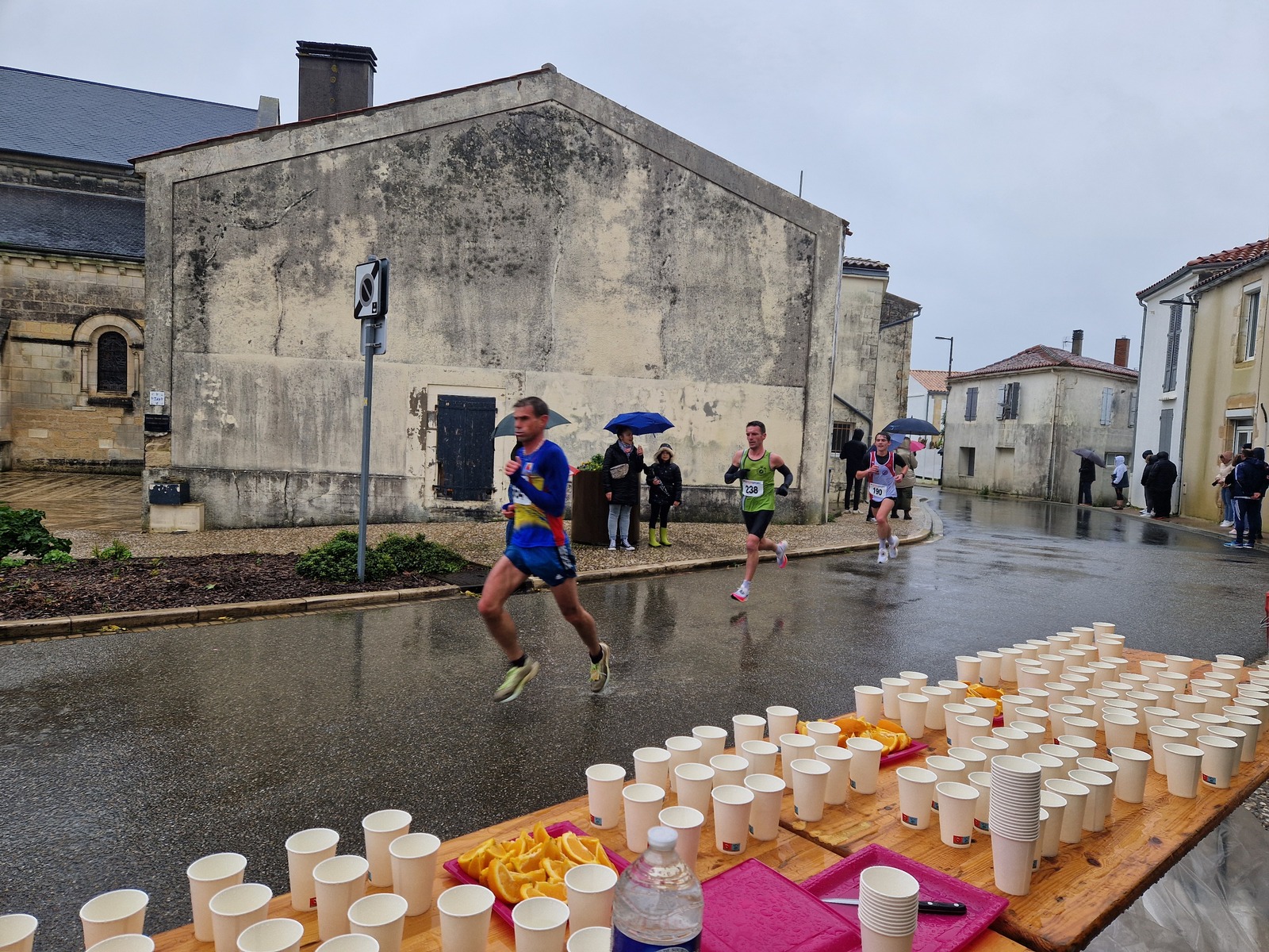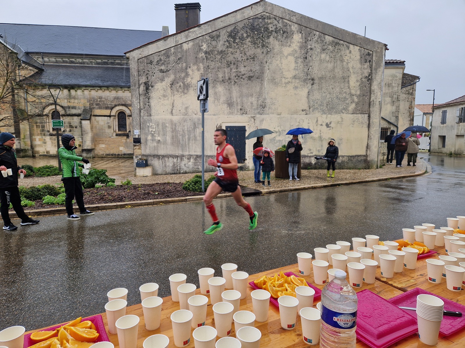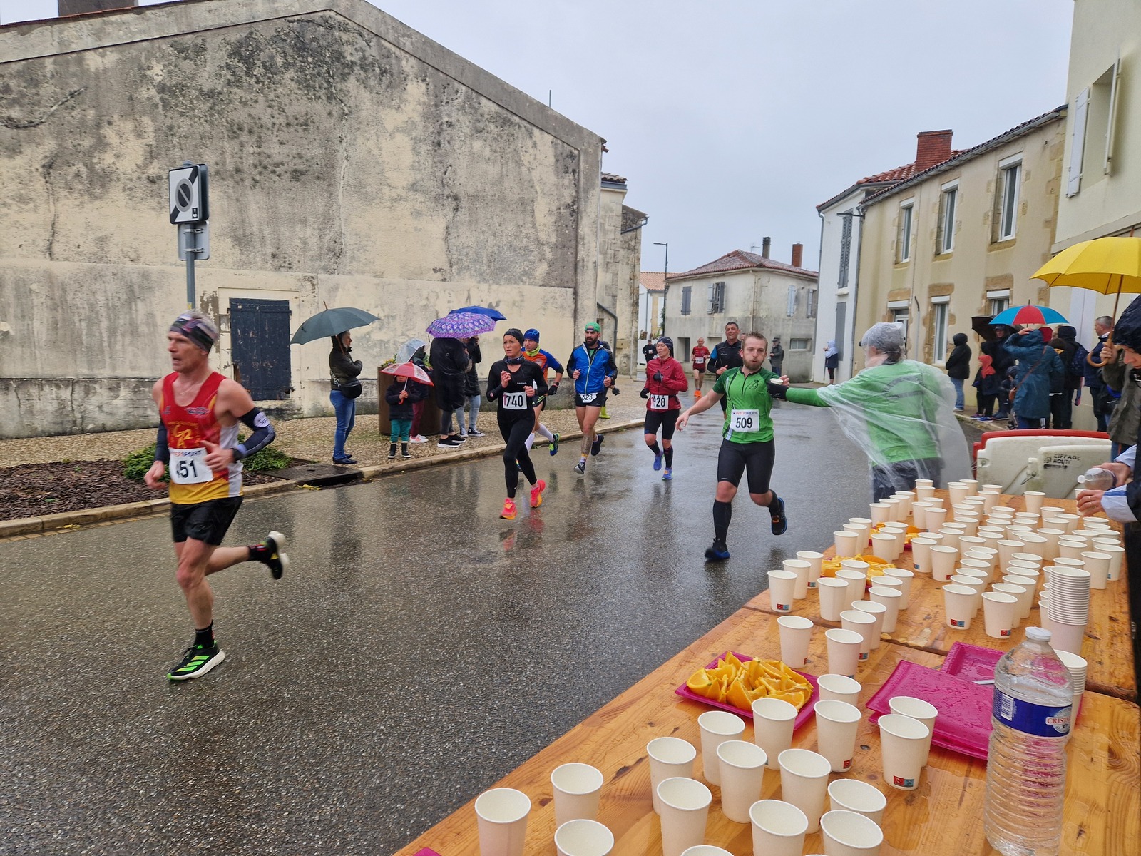 "Merci pour cette belle course. La météo n’était pas au rdv mais vos sourires et votre sympathie nous ont réchauffé les cannes. J’ai été impressionné par le nombre de supporters malgré cette pluie."