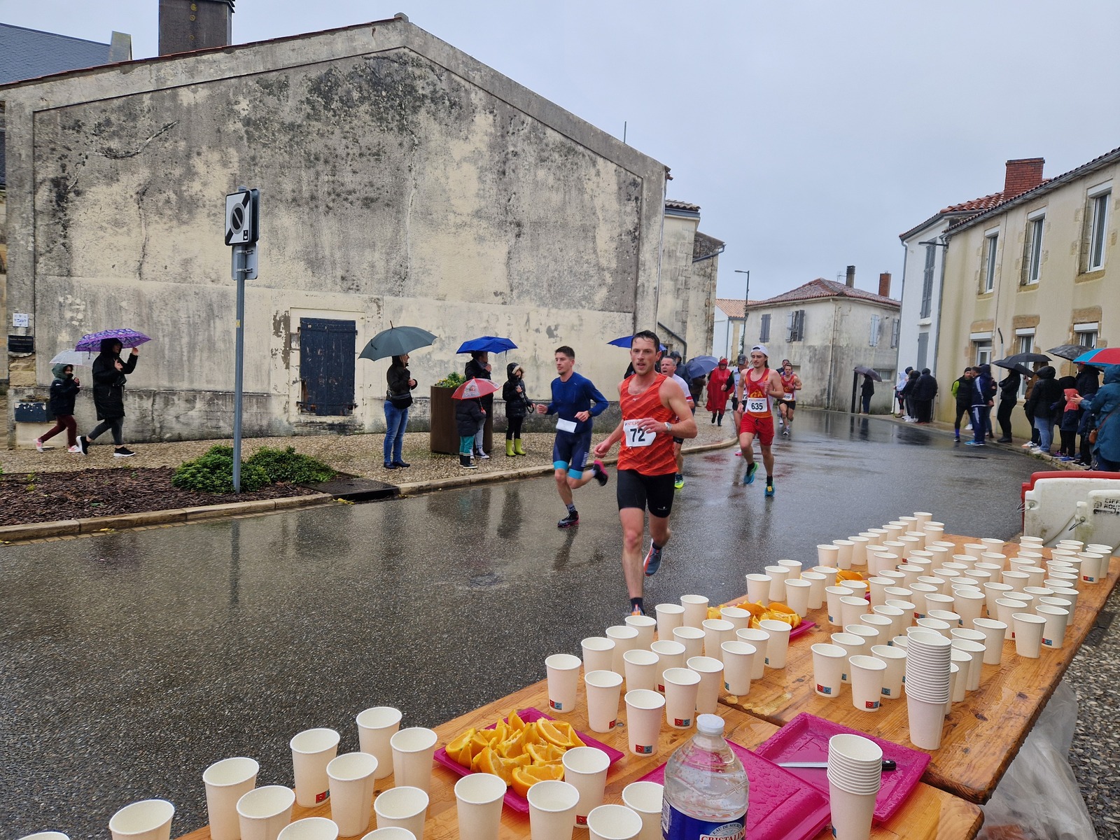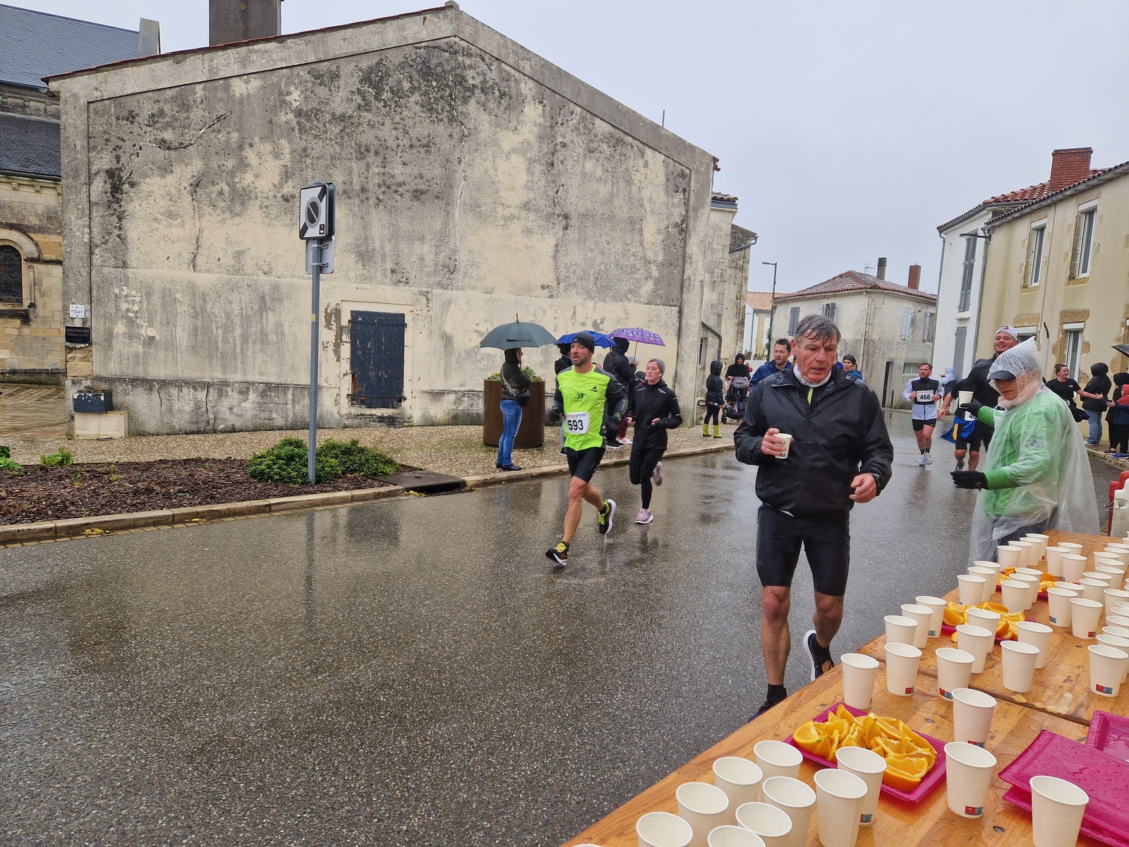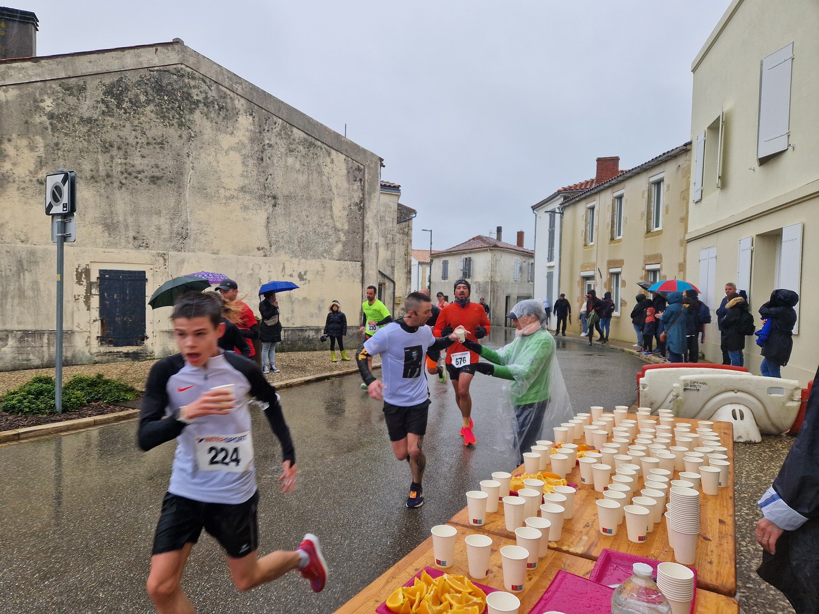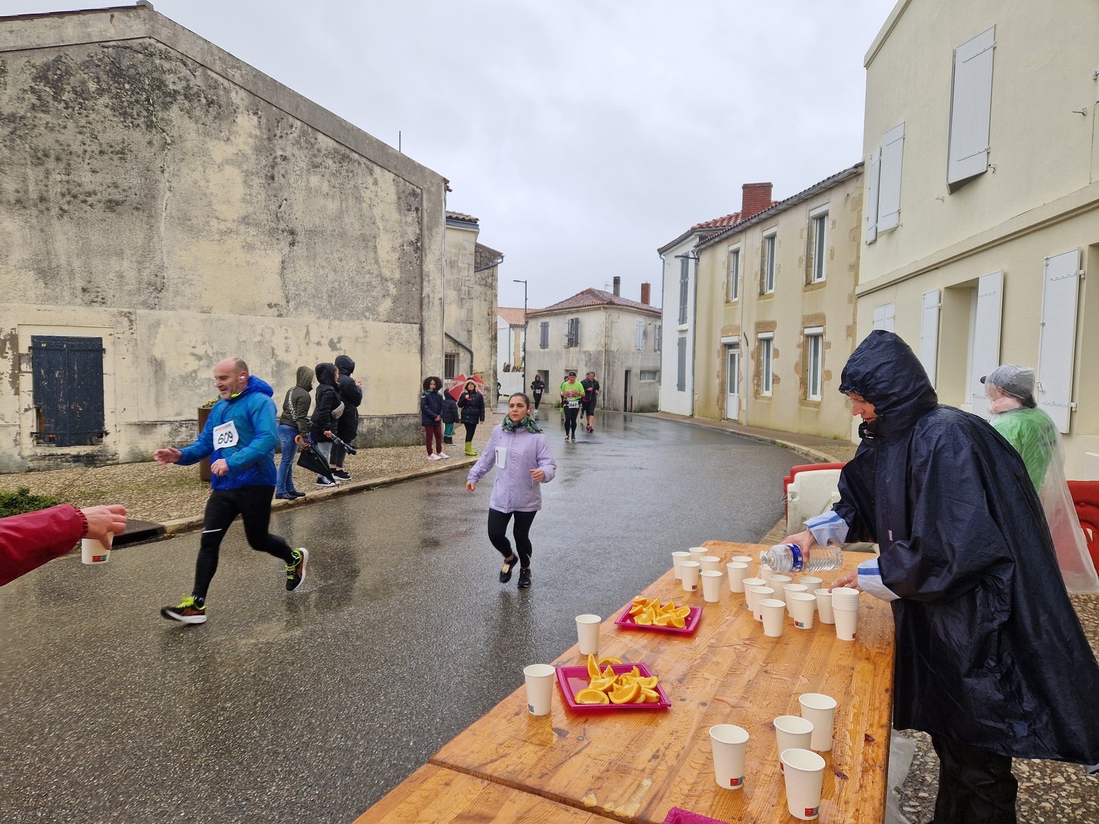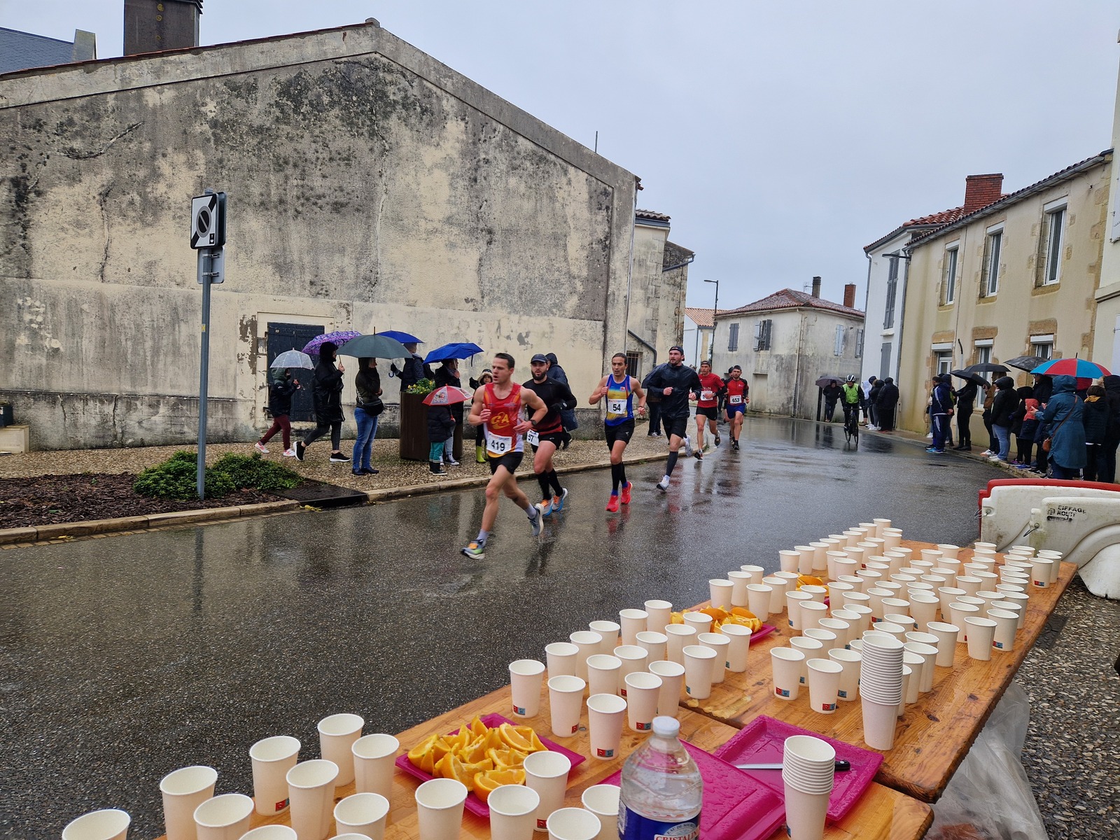"Merci pour cette belle course. La météo n’était pas au rdv mais vos sourires et votre sympathie nous ont réchauffé les cannes. J’ai été impressionné par le nombre de supporters malgré cette pluie."