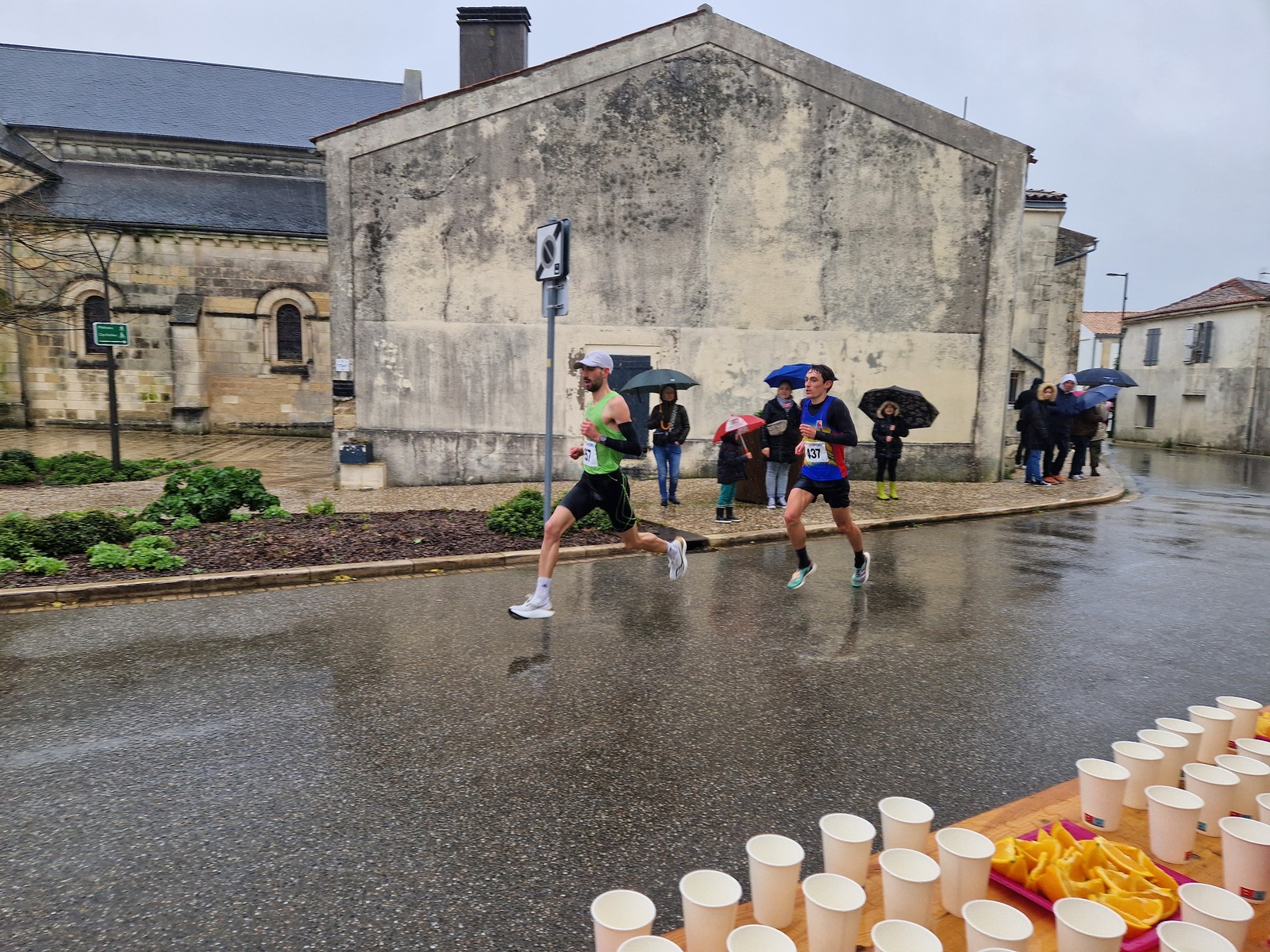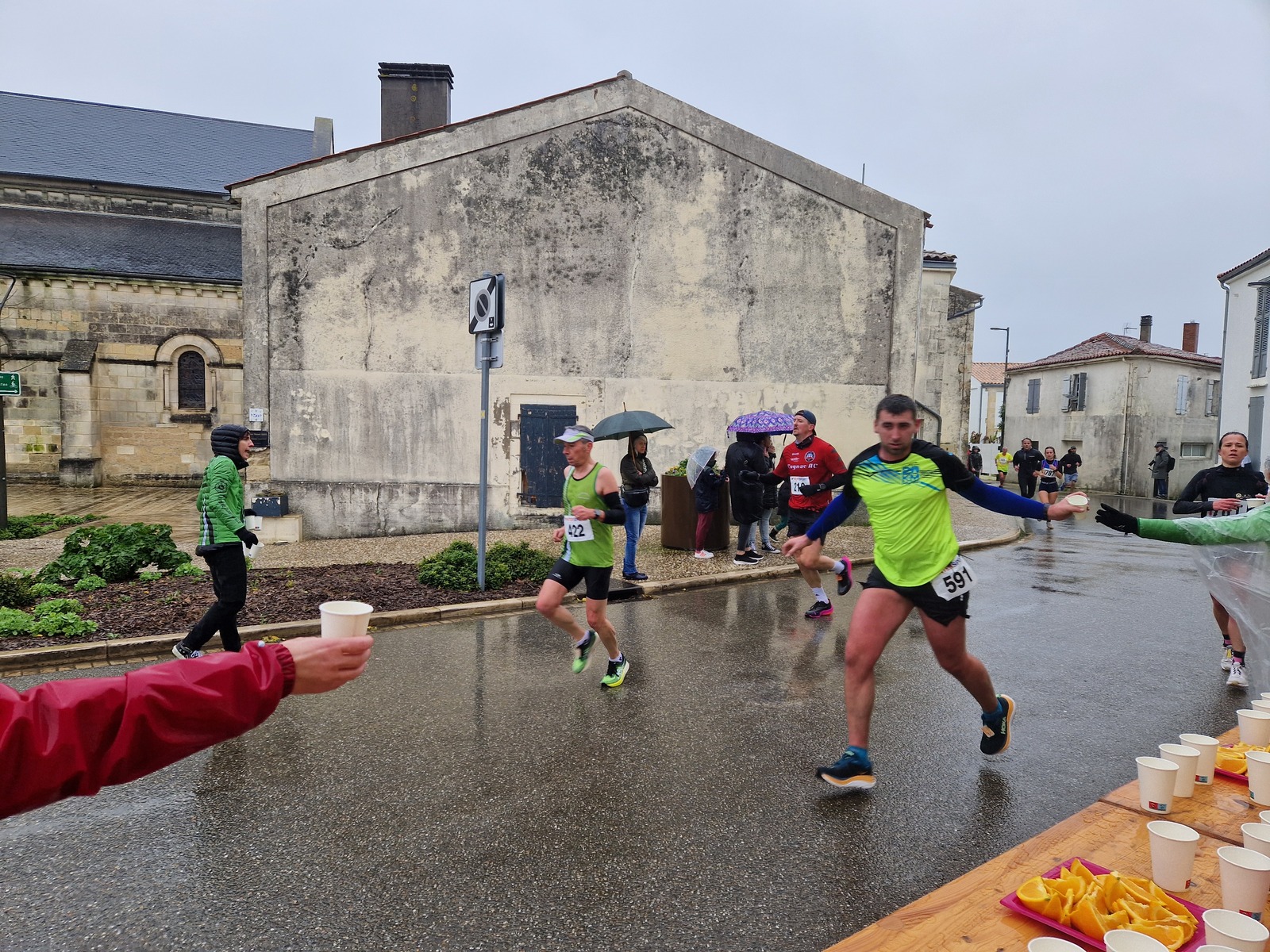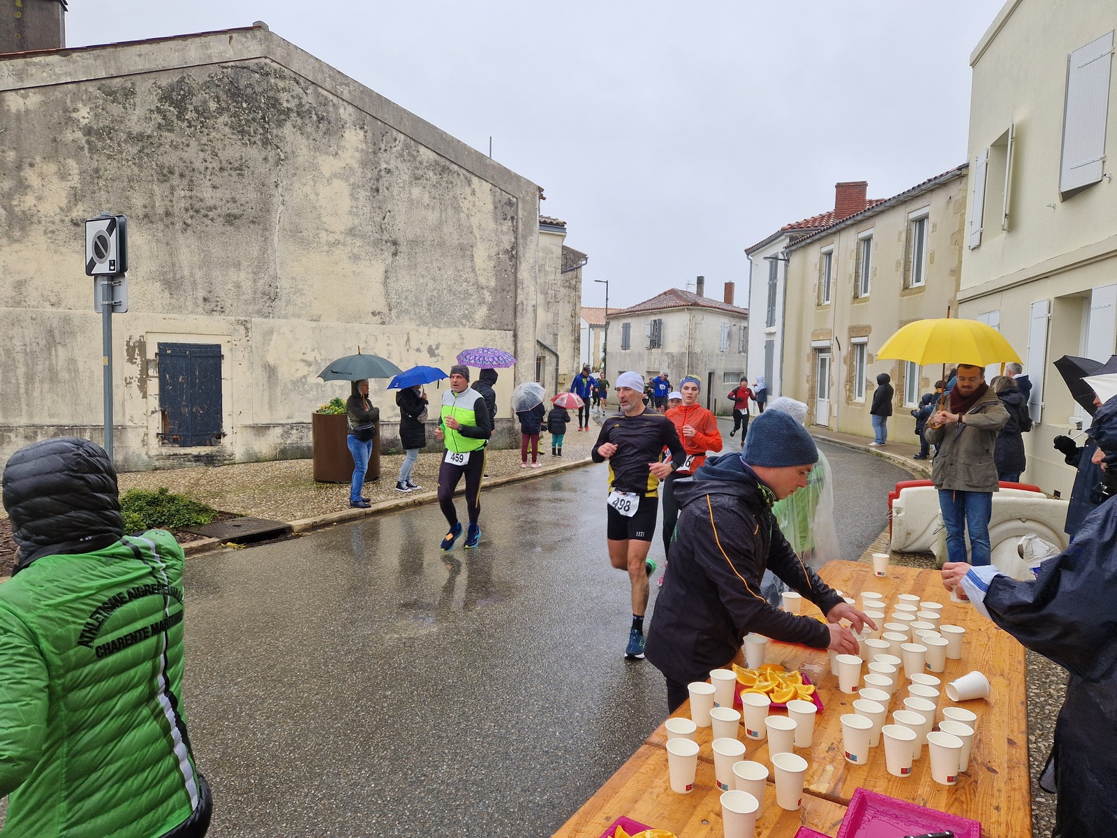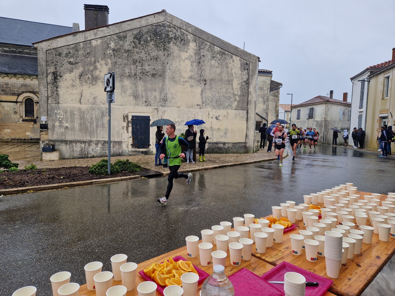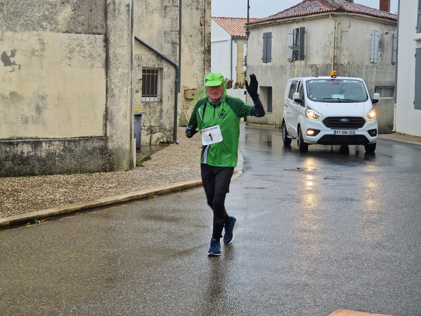 "Merci pour cette belle course. La météo n’était pas au rdv mais vos sourires et votre sympathie nous ont réchauffé les cannes. J’ai été impressionné par le nombre de supporters malgré cette pluie."