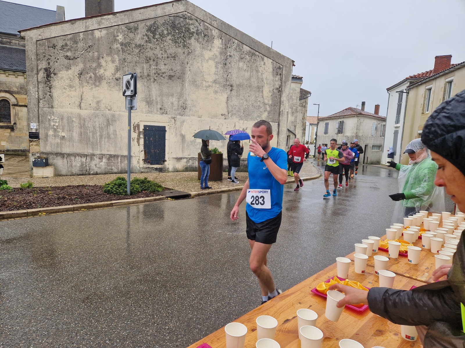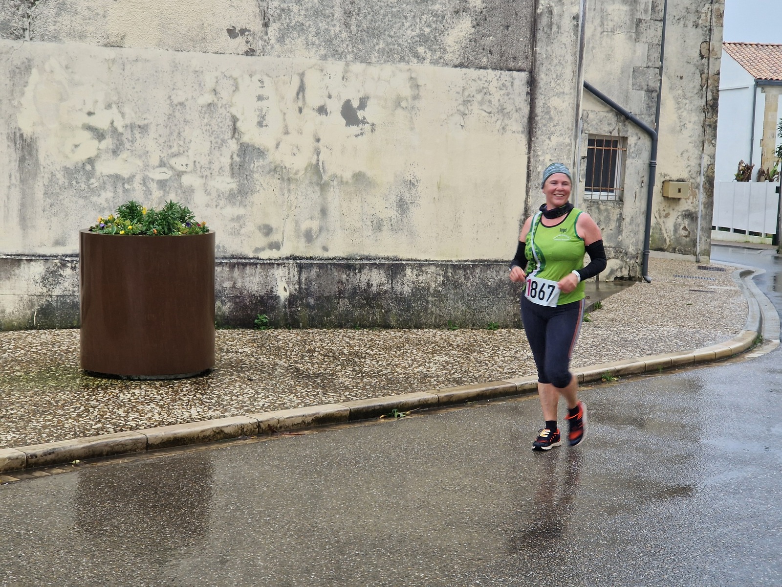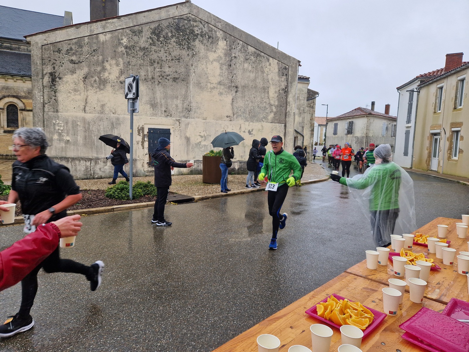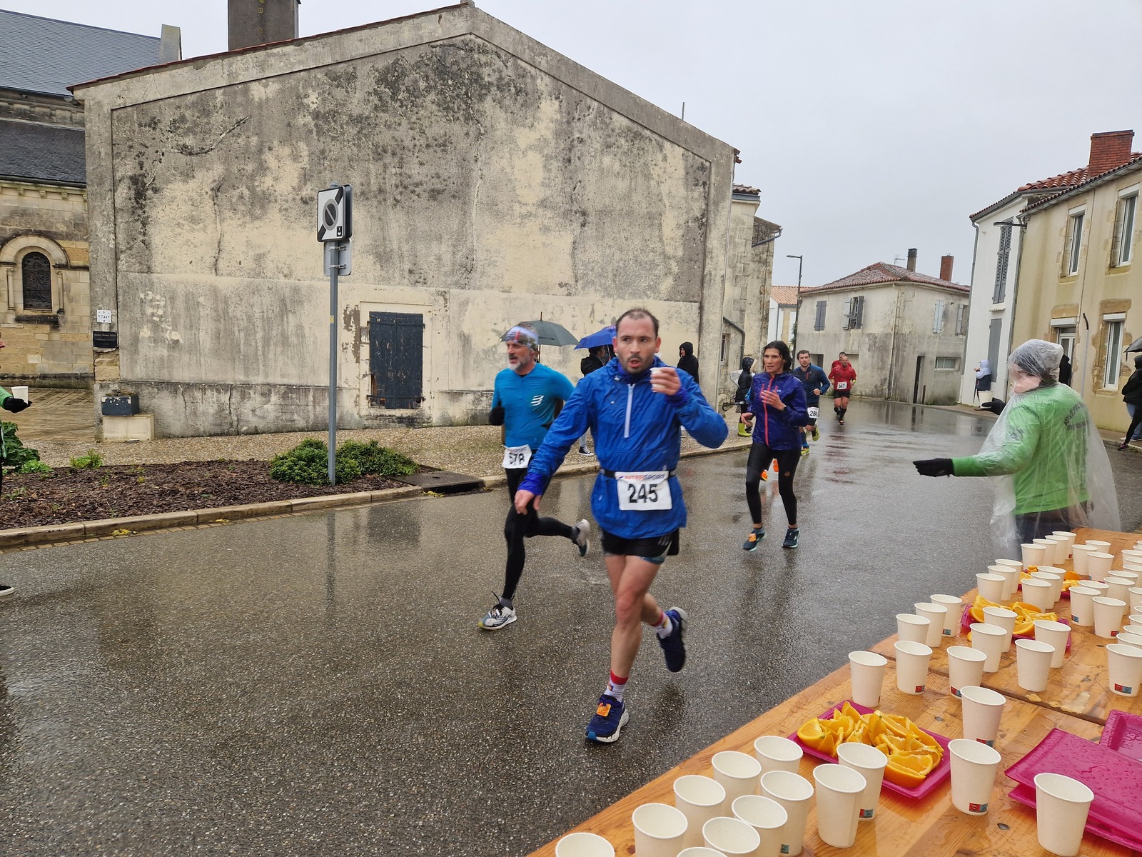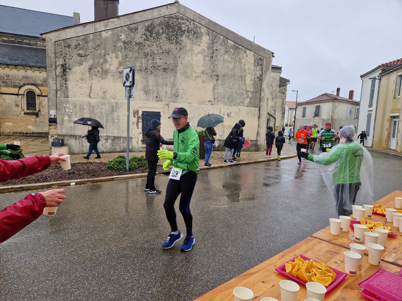 "Merci pour cette belle course. La météo n’était pas au rdv mais vos sourires et votre sympathie nous ont réchauffé les cannes. J’ai été impressionné par le nombre de supporters malgré cette pluie."