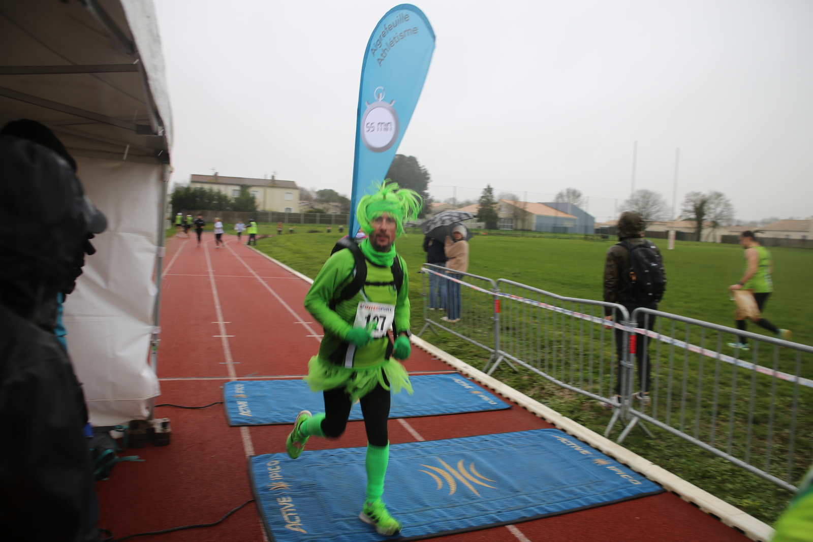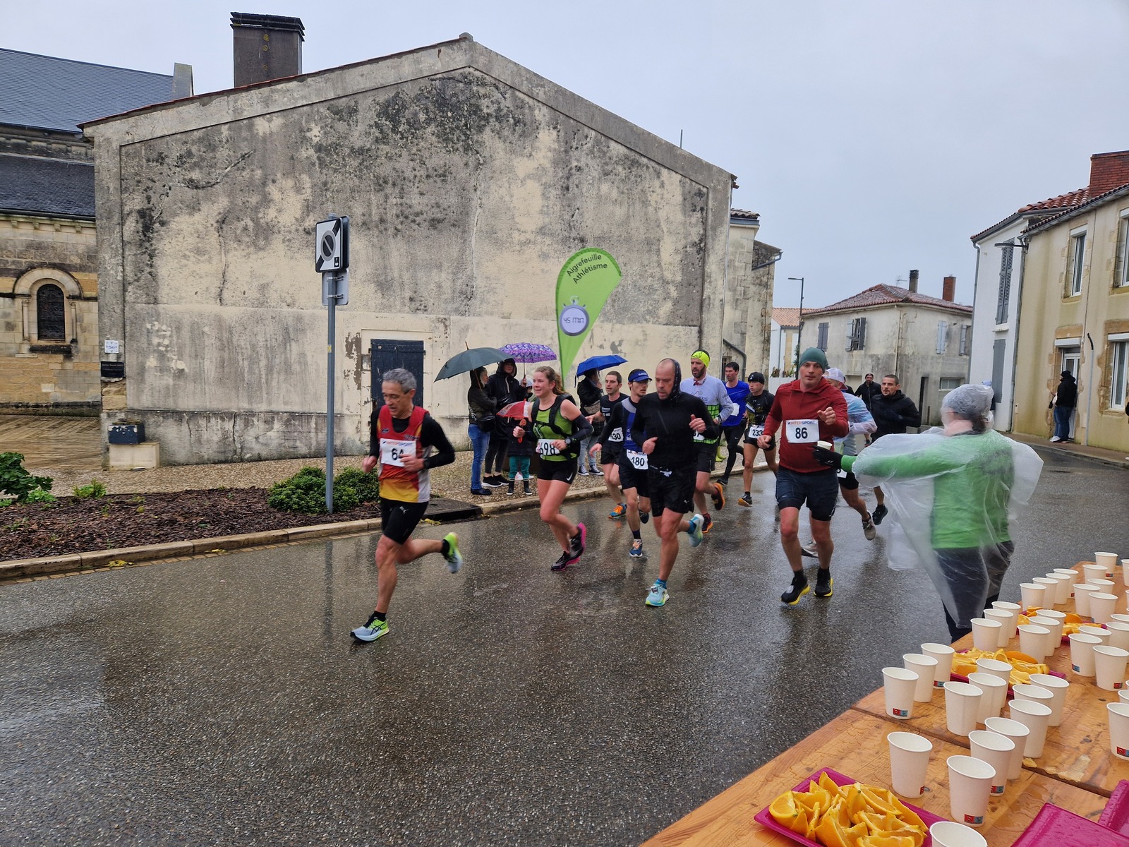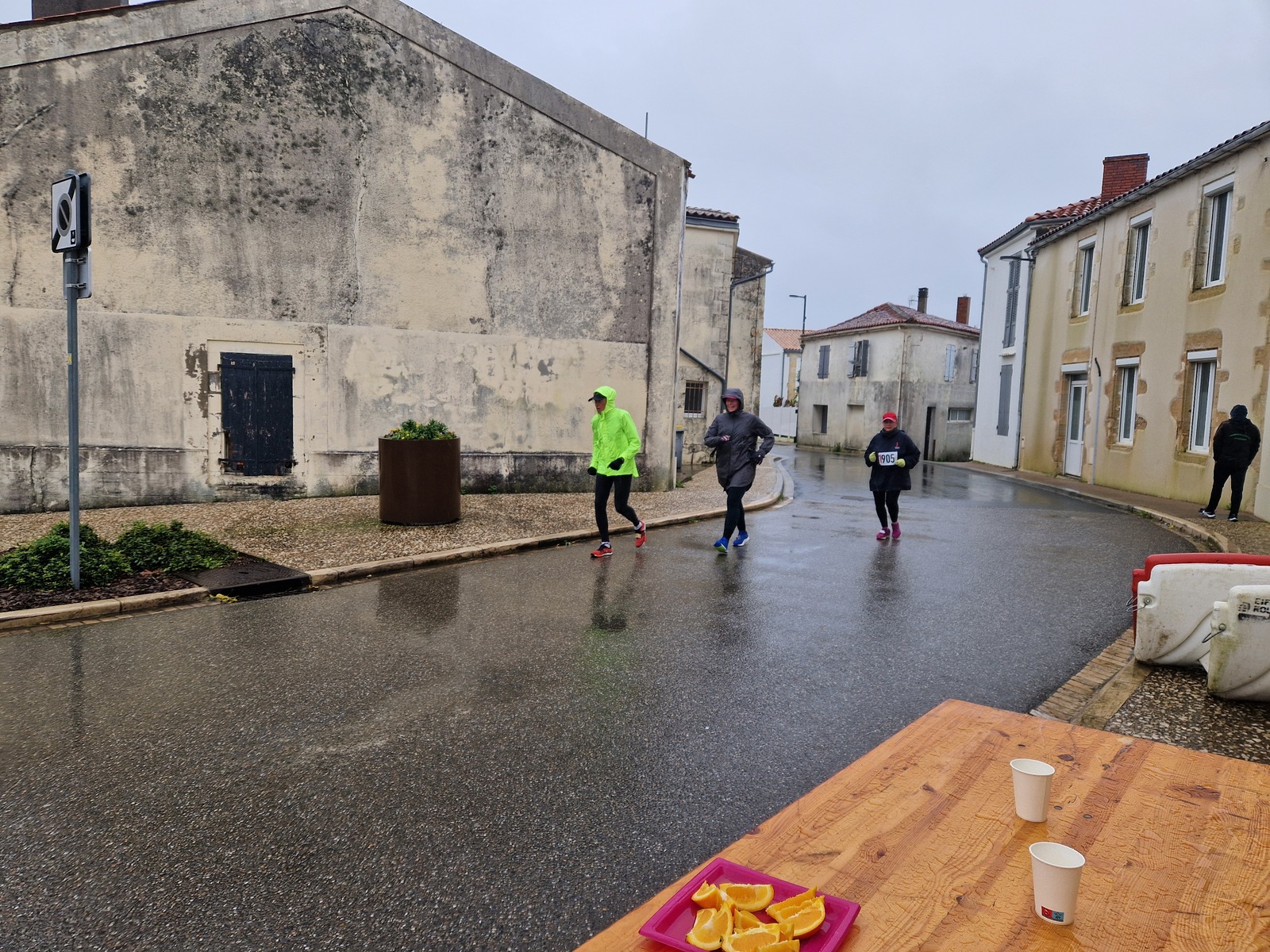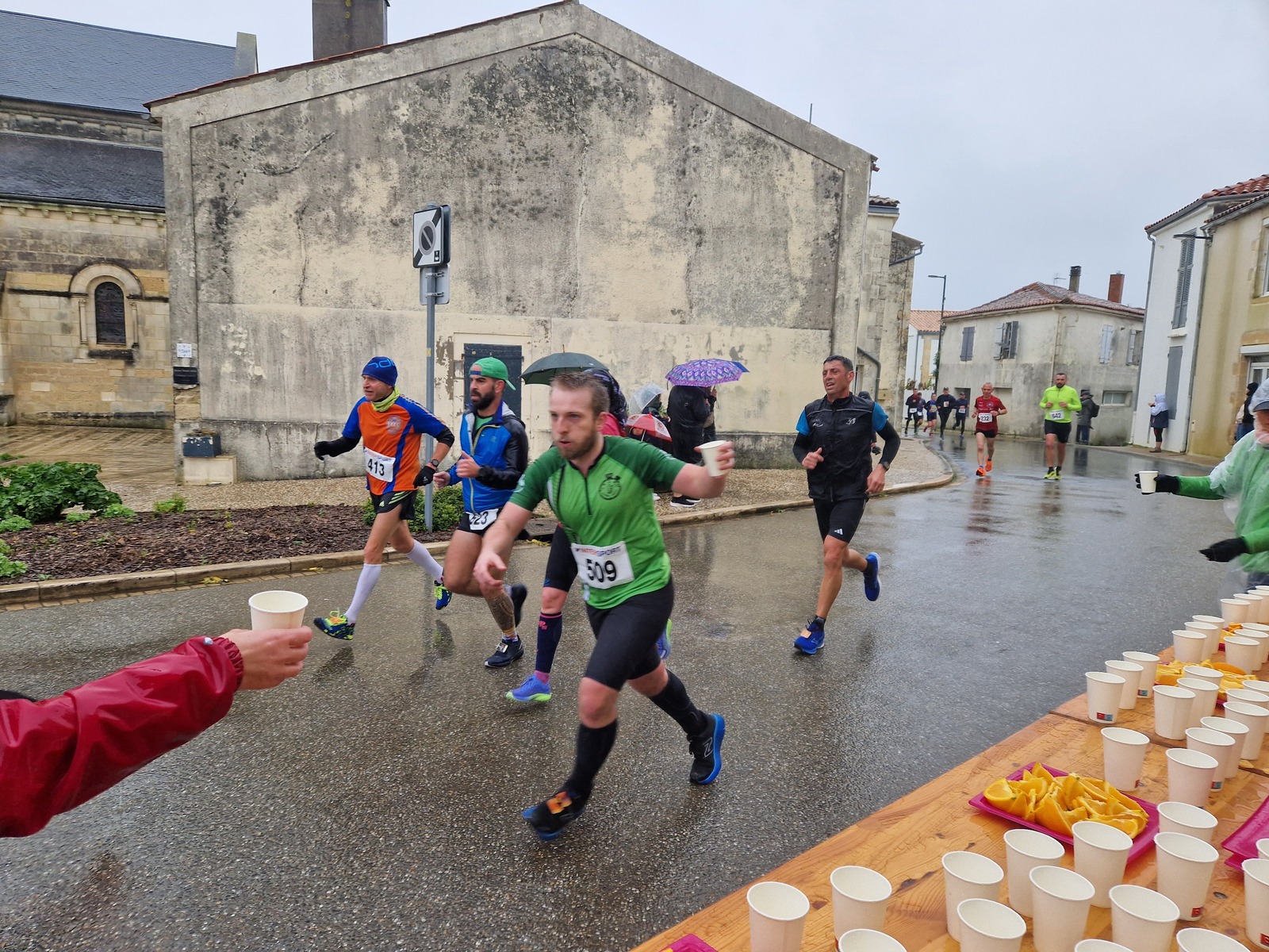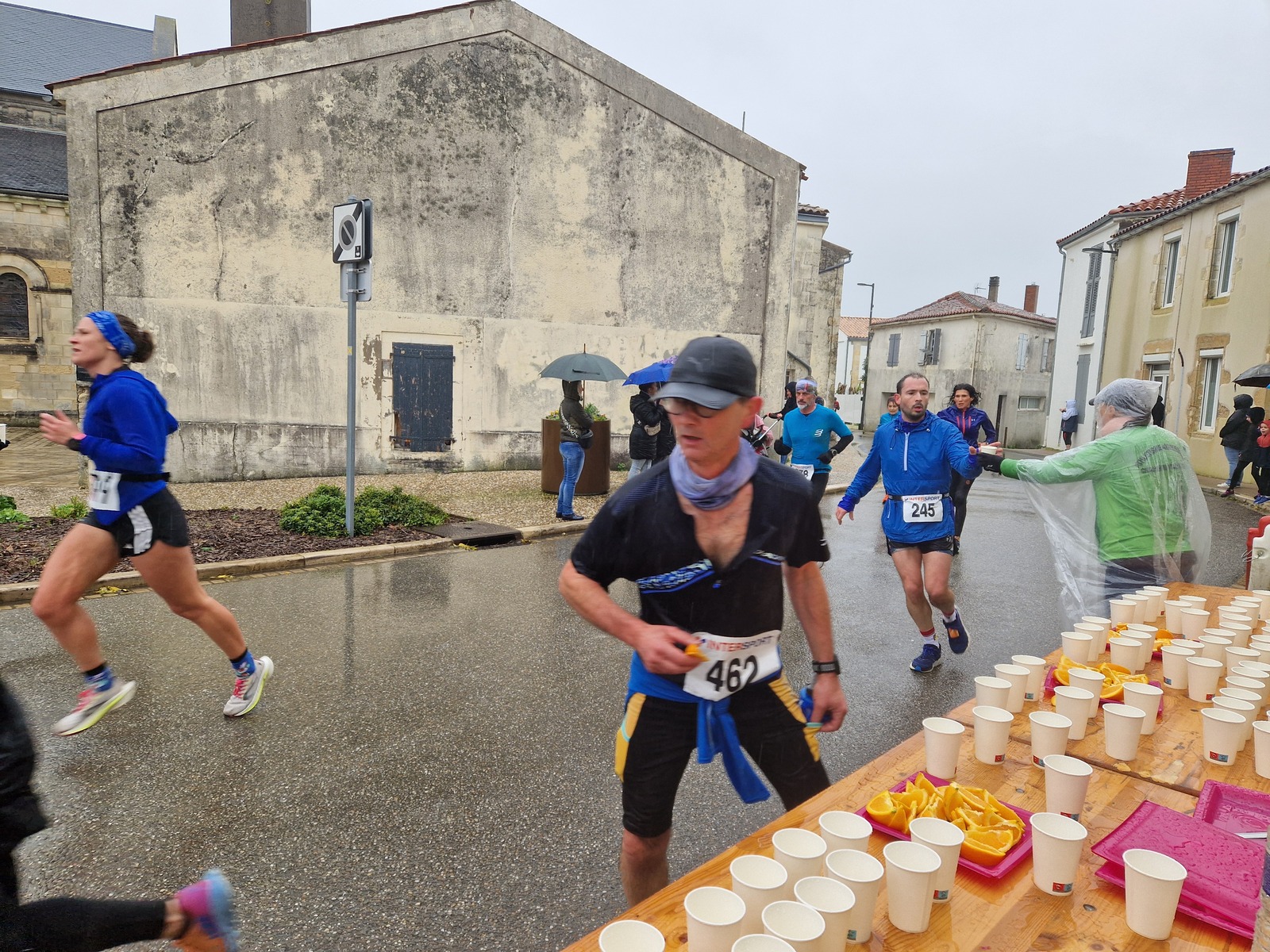 "Merci pour cette belle course. La météo n’était pas au rdv mais vos sourires et votre sympathie nous ont réchauffé les cannes. J’ai été impressionné par le nombre de supporters malgré cette pluie."