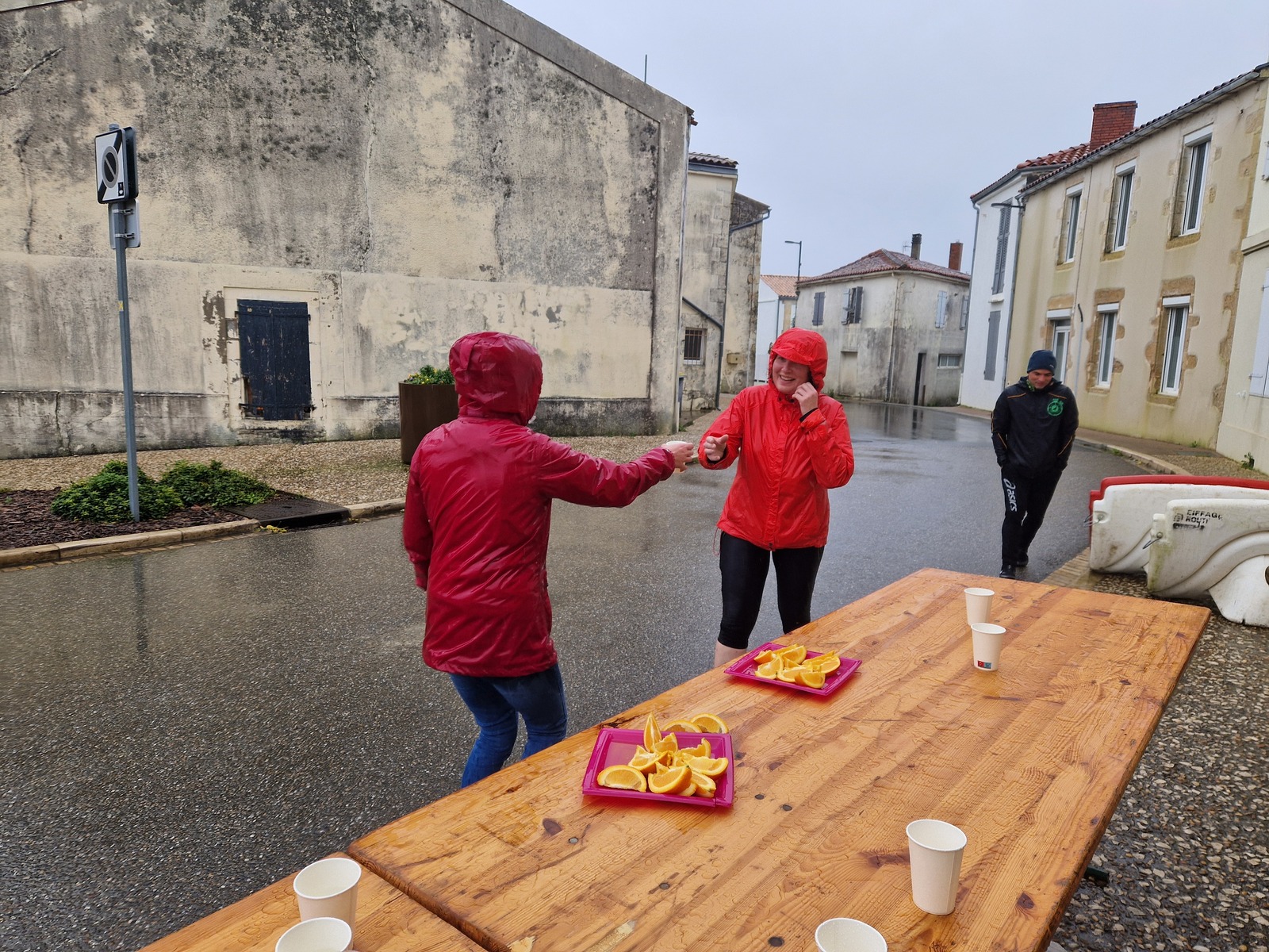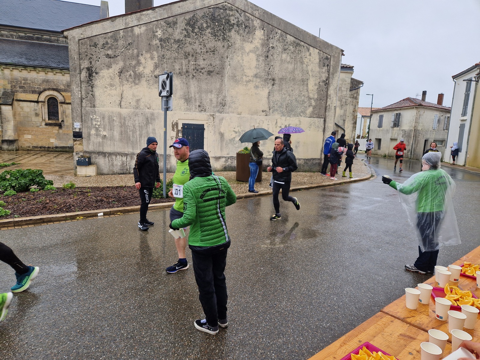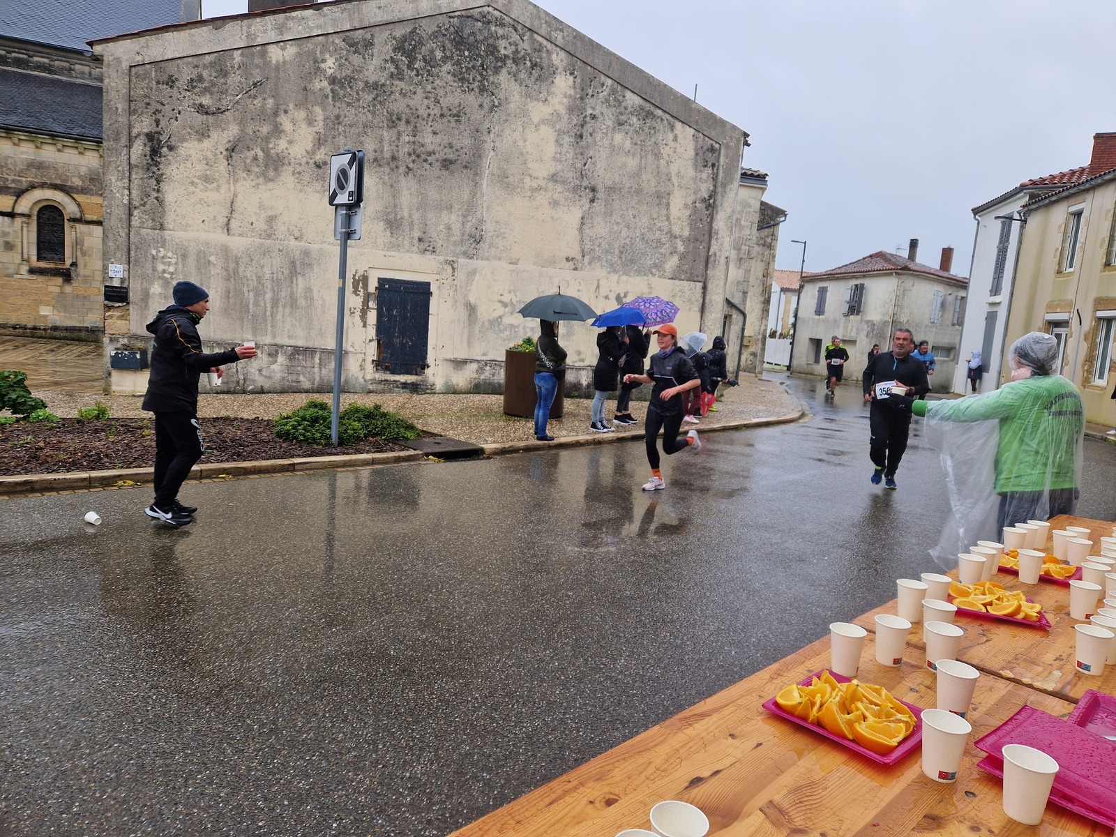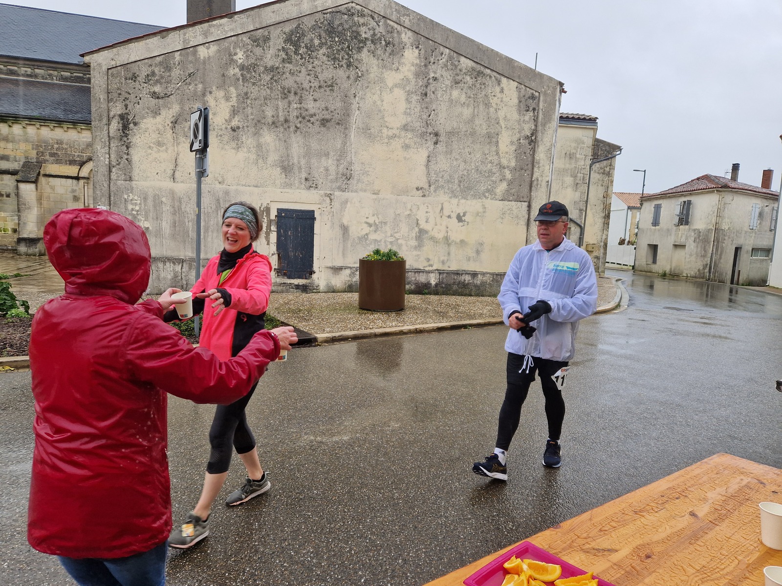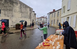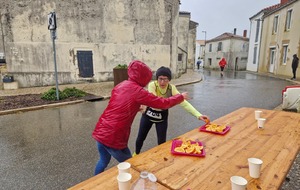 "Merci aux bénévoles d'avoir bravé la pluie, et merci pour le fromage/pain/boules NRJ: tout est super bon! Quelle bonne idée!"