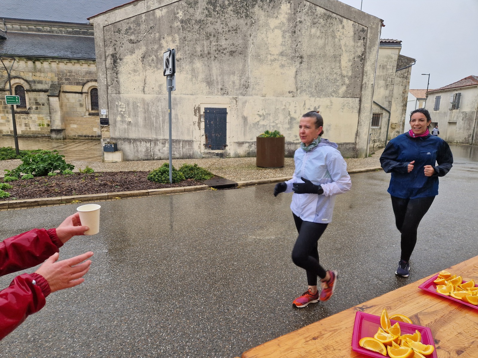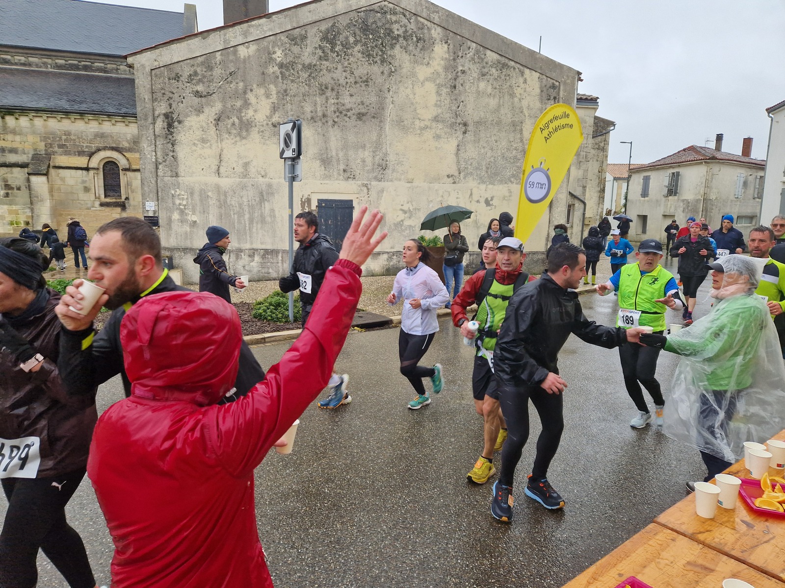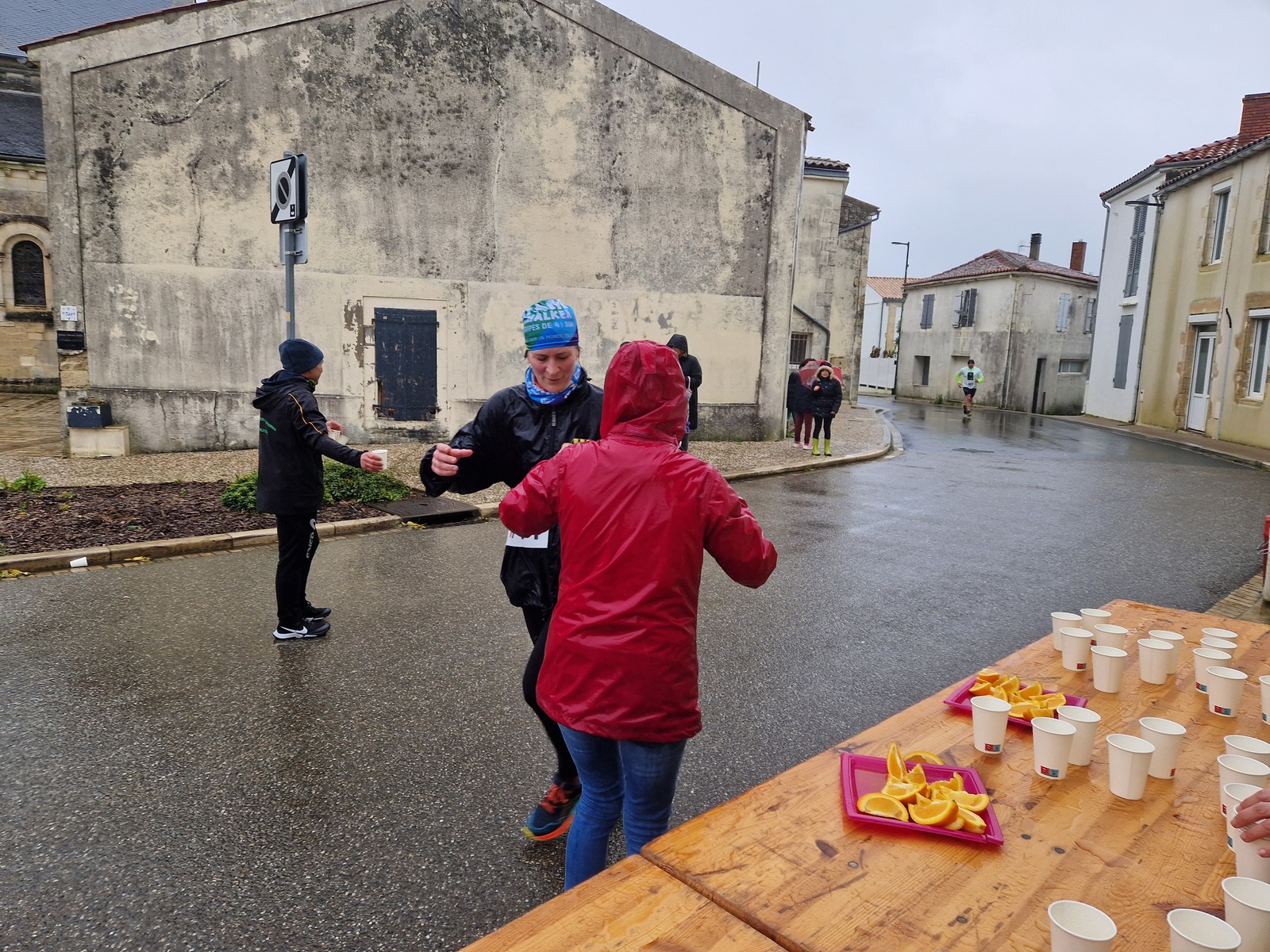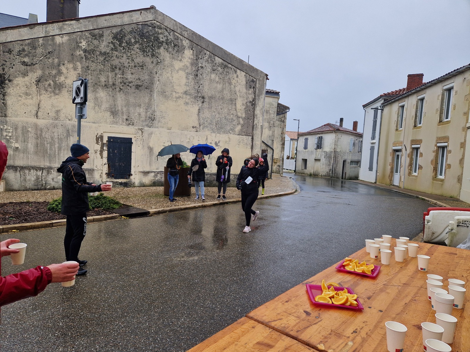 "Merci aux bénévoles d'avoir bravé la pluie, et merci pour le fromage/pain/boules NRJ: tout est super bon! Quelle bonne idée!"
