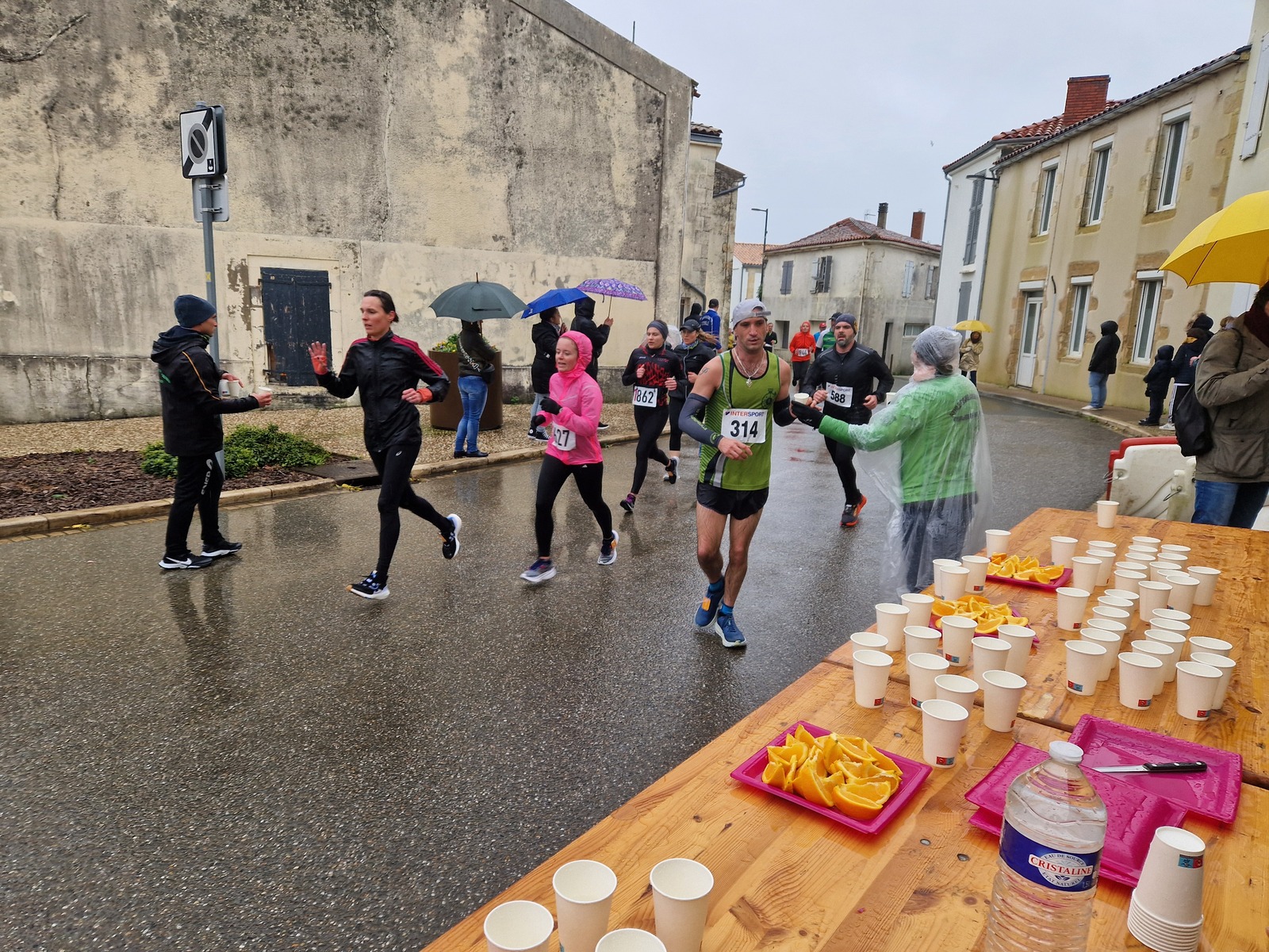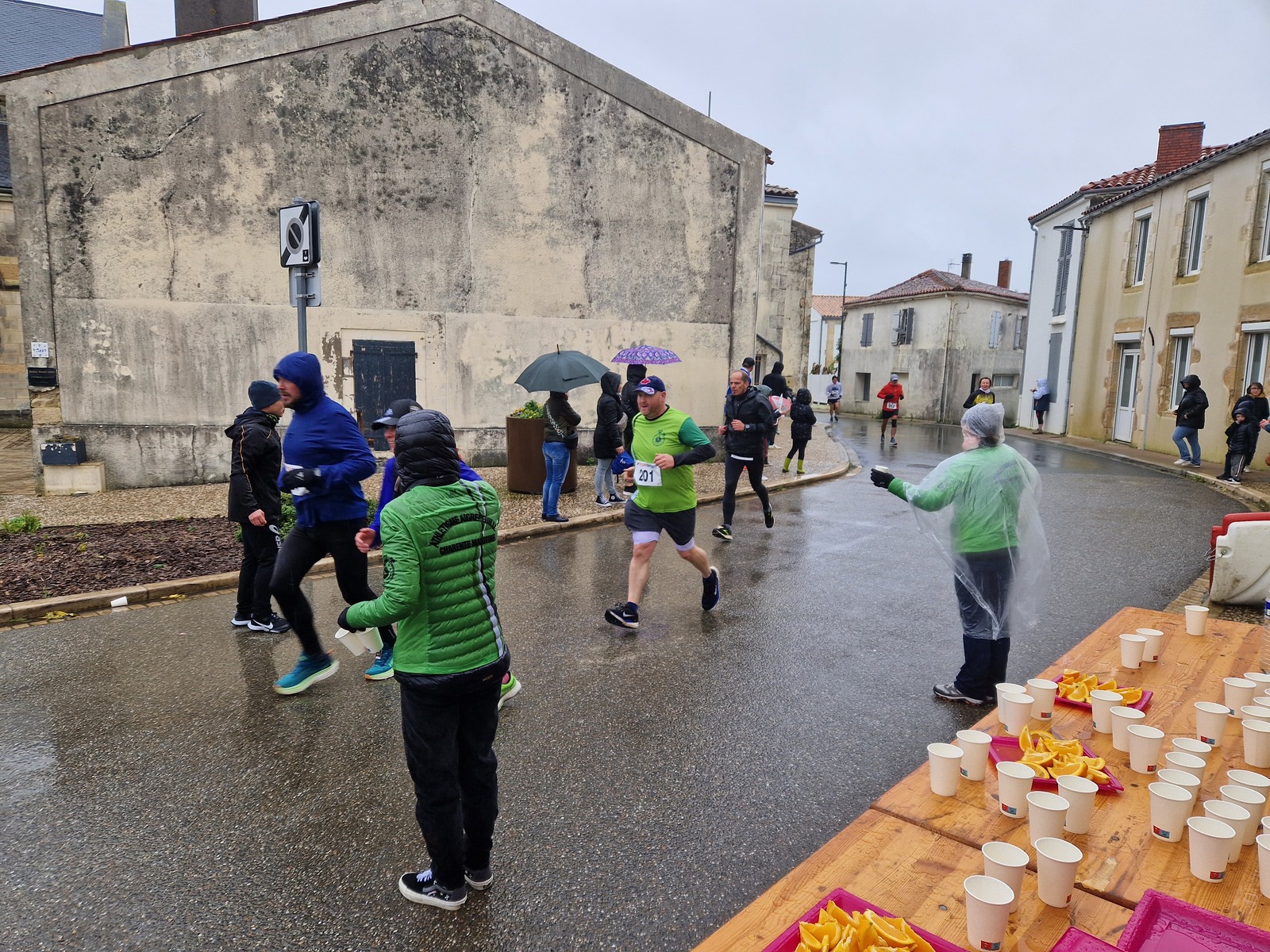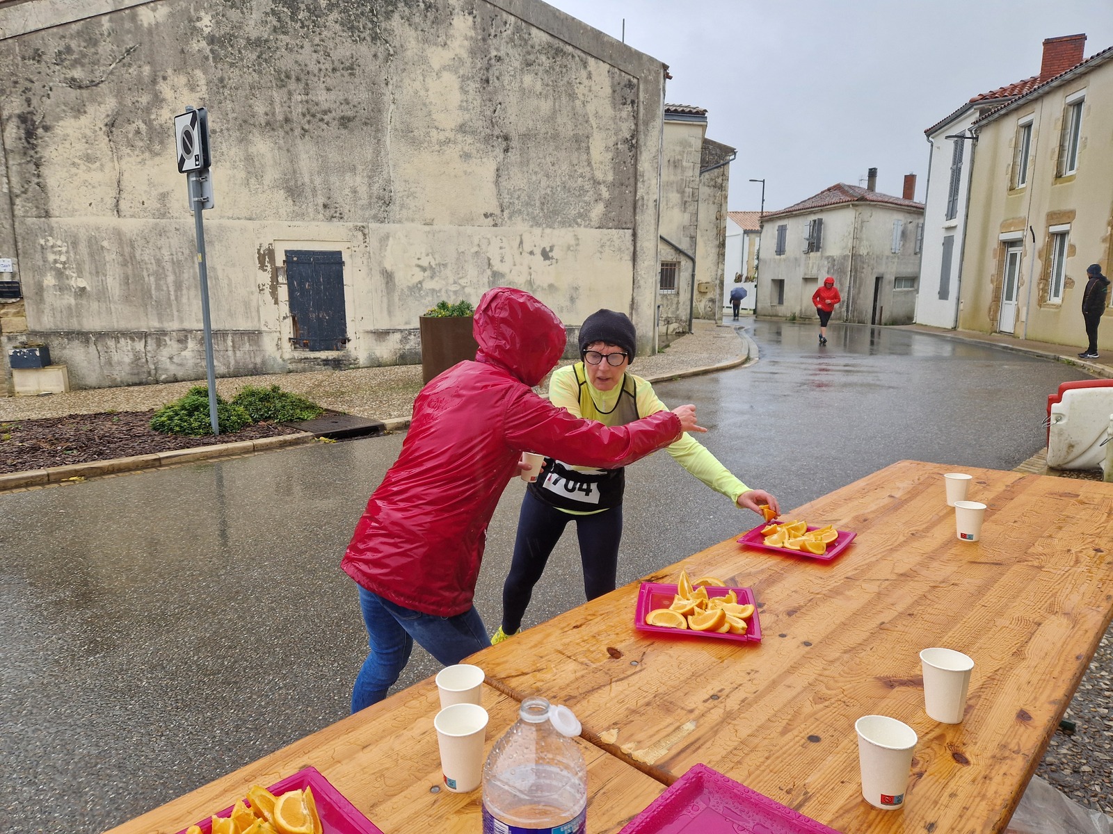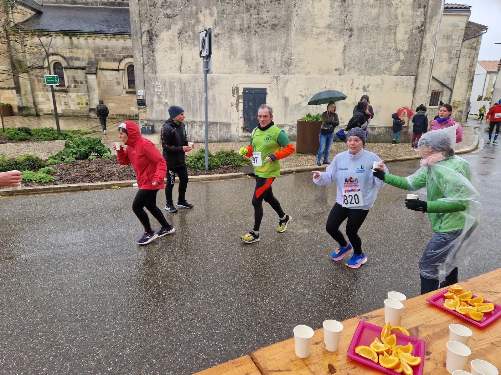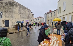"Merci aux bénévoles d'avoir bravé la pluie, et merci pour le fromage/pain/boules NRJ: tout est super bon! Quelle bonne idée!"