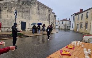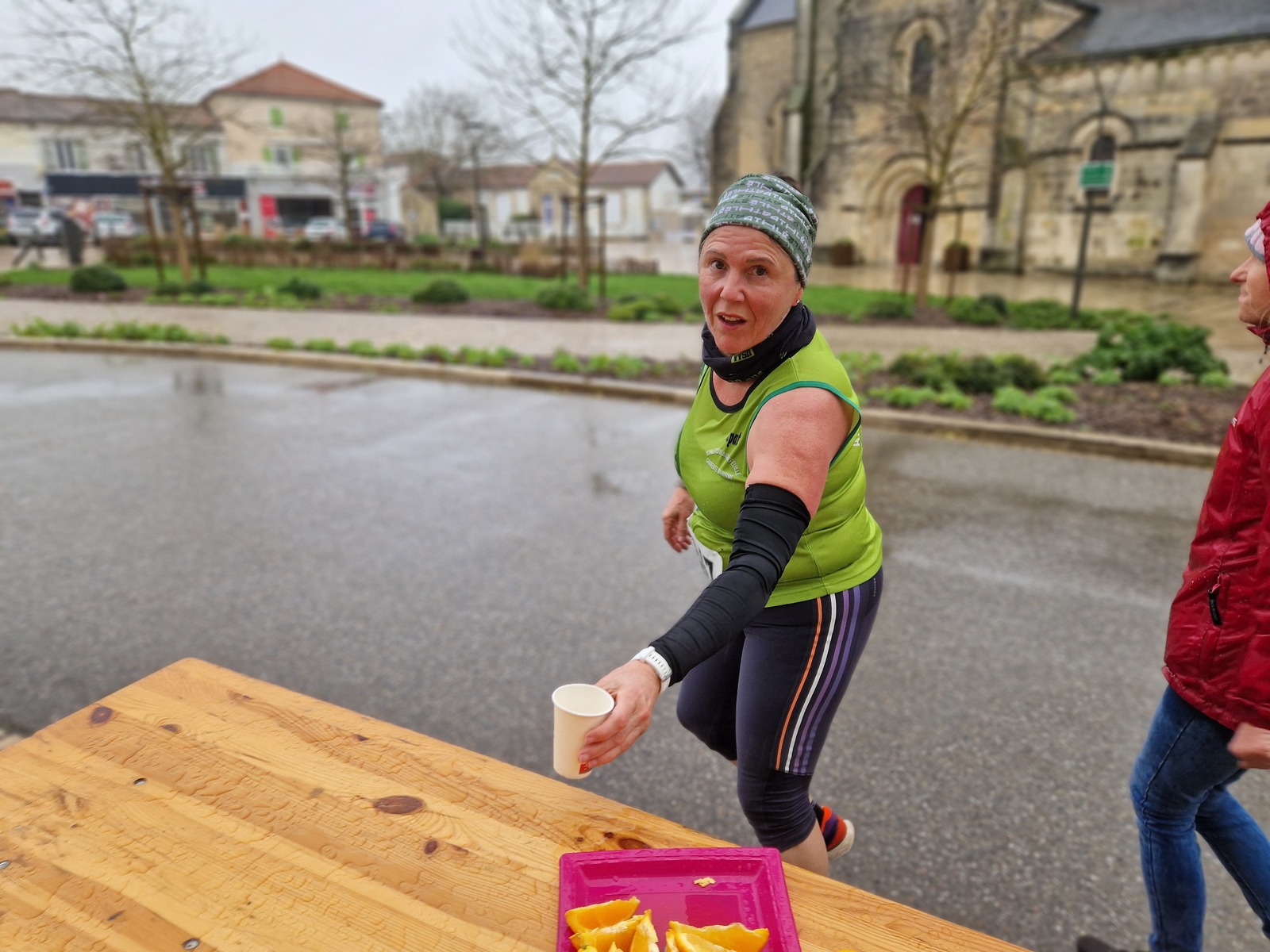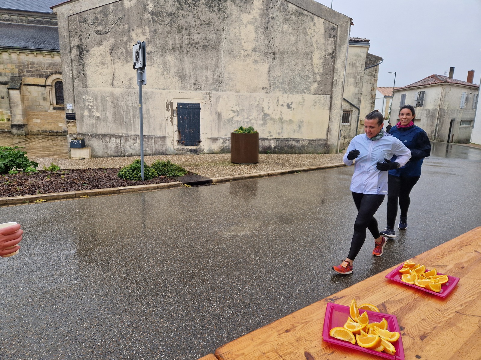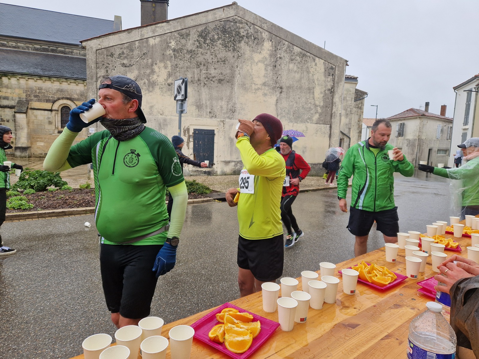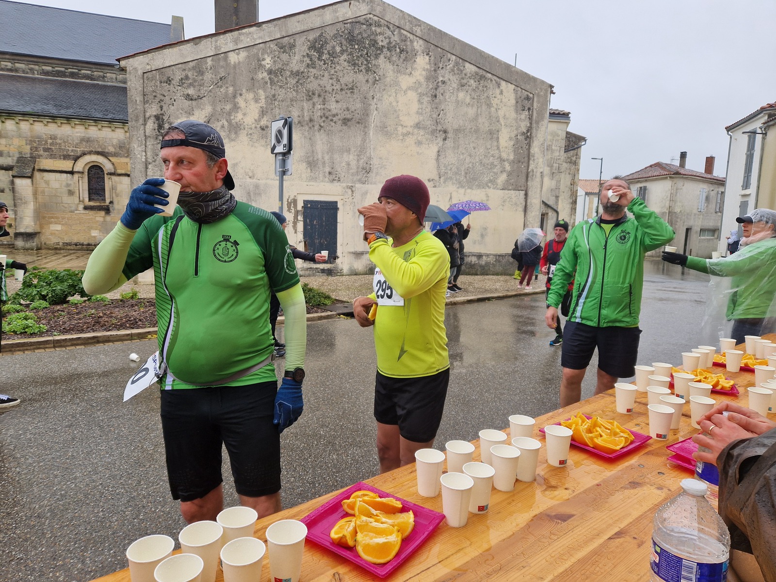 "Merci aux bénévoles d'avoir bravé la pluie, et merci pour le fromage/pain/boules NRJ: tout est super bon! Quelle bonne idée!"